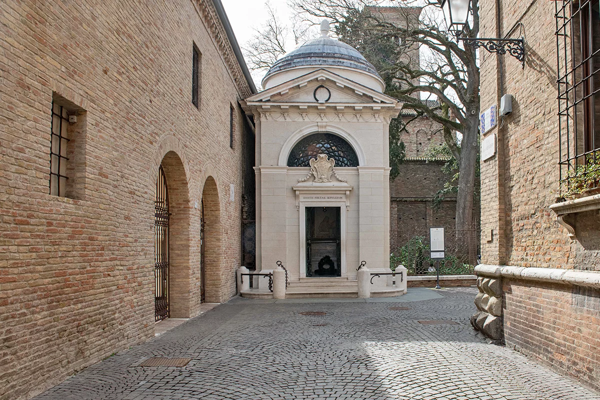 Τρεις φορές πρωτεύουσα – της Δυτικής Ρωμαϊκής Αυτοκρατορίας, του Βασίλειου των Οστρογότθων και του Βυζαντινού Εξαρχάτου της Ραβέννας, και με το κέντρο της να αποτελεί μνημείο παγκόσμιας πολιτιστικής κληρονομιάς, η Ραβέννα είναι μια πόλη που ξεχωρίζει για την ιστορία και τα εκπληκτικά μνημεία της. Διάσπαρτη με εντυπωσιακές βυζαντινές εκκλησίες και βασιλικές, είναι διεθνώς γνωστή για τα θαυμάσια βυζαντινά ψηφιδωτά που σώζονται σε πολλές από αυτές. Όπως η Basilica San Vitale, ένα αριστούργημα βυζαντινής τέχνης του 6ου αιώνα, ή τα ανυπέρβλητα μωσαϊκά που καλύπτουν εξ΄ολοκλήρου το Μαυσωλείο της Galla Placidia, κόρης του αυτοκράτορα Θεοδοσίου. Με τόσα λαμπρά μνημεία συμπεραίνει κανείς ότι ο τότε άρχοντας της πόλης, Guido da Polenta, δεν θα δυσκολεύτηκε πολύ να πείσει το σπουδαίο ποιητή να επισκεφθεί ξανά τη Ραβέννα το 1318, βρίσκοντας εδώ μια όαση γαλήνης και ηρεμίας μετά τις περιπλανήσεις του μακριά από τη Φλωρεντία. Η πόλη όντως γοήτευσε τον Δάντη, ο οποίος ολοκλήρωσε εκεί τη Θεία Κωμωδία, αλλά και παρέμεινε ως το θάνατό του, τρία χρόνια μετά. Σήμερα η πόλη τιμά τη μνήμη του κορυφαίου ποιητή, που εκτός των άλλων διαμόρφωσε την ιταλική γλώσσα συνθέτοντας τα λατινικά με την καθομιλουμένη, με το μουσείο Museo Dante, που άνοιξε το 1921 στην επέτειο των 600 χρόνων από το θάνατό του, στον πρώτο όροφο ενός πρώην Φραγκισκανικού μοναστηριού, αποτελώντας ένα συγκινητικό ιστορικό ταξίδι στη ζωή και το έργο του. Άλλο ορόσημο της πόλης, το σπίτι όπου έζησε ο Δάντης, η Casa Dante, αποτελεί ένα αρχοντικό του 14ου αιώνα, με εκθέματα που σχετίζονται με τη ζωή του στη Ραβέννα, τη συλλογή της βιβλιοθήκης του αλλά και έργα δανεισμένα από το Uffizi, που έχουν άμεση σύνδεση με την ακτινοβολία και την επιρροή του. Πίσω από το σπίτι, στο τέλος του δρόμου που φέρει το όνομά του, μπορεί κανείς να επισκεφθεί και την τελευταία κατοικία του, ένα σχετικά λιτό, νεοκλασικό μαυσωλείο που στεγάζει τη μαρμάρινη σαρκοφάγο με την ανάγλυφη μορφή του λαμπρού ποιητή.