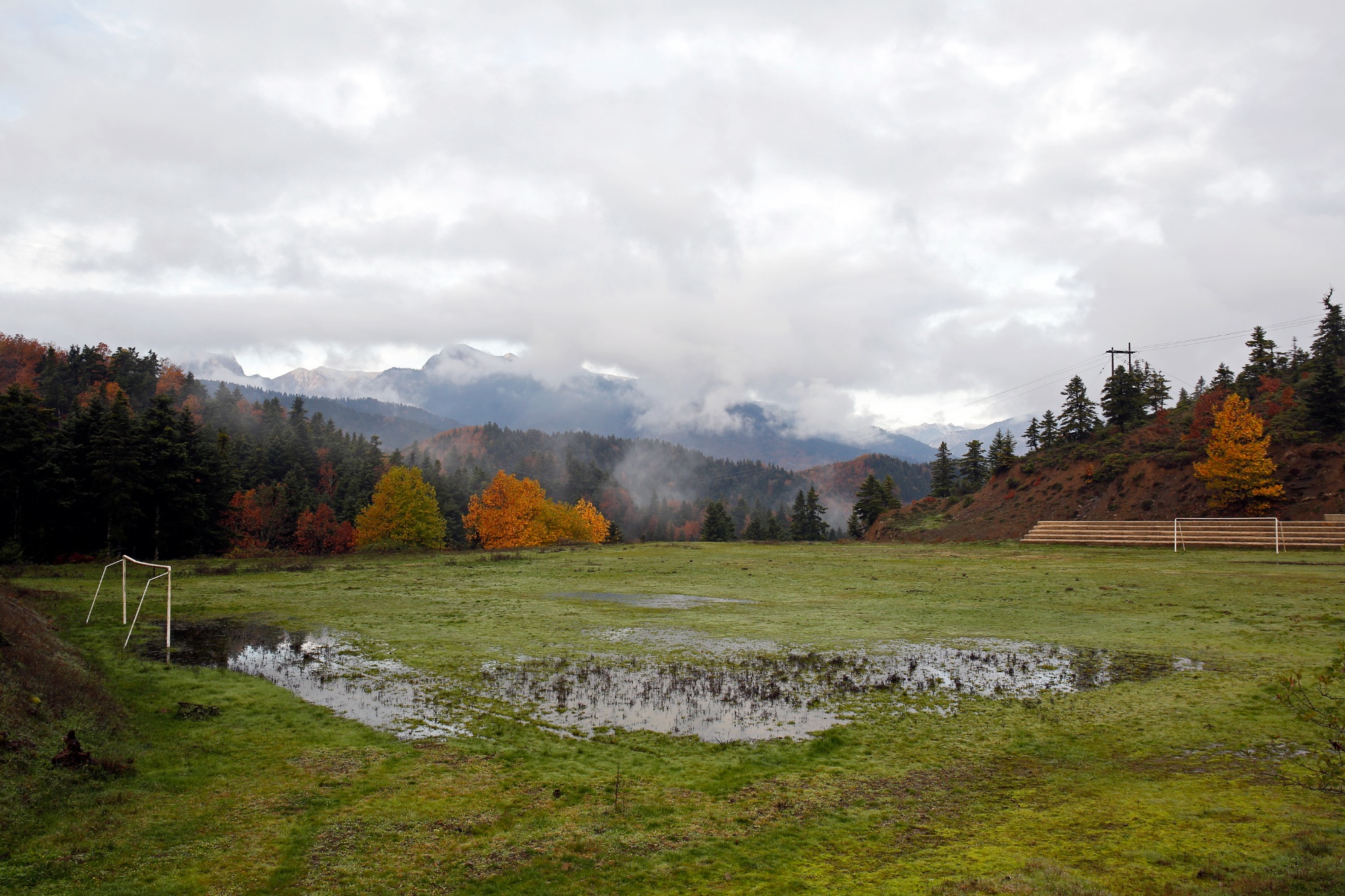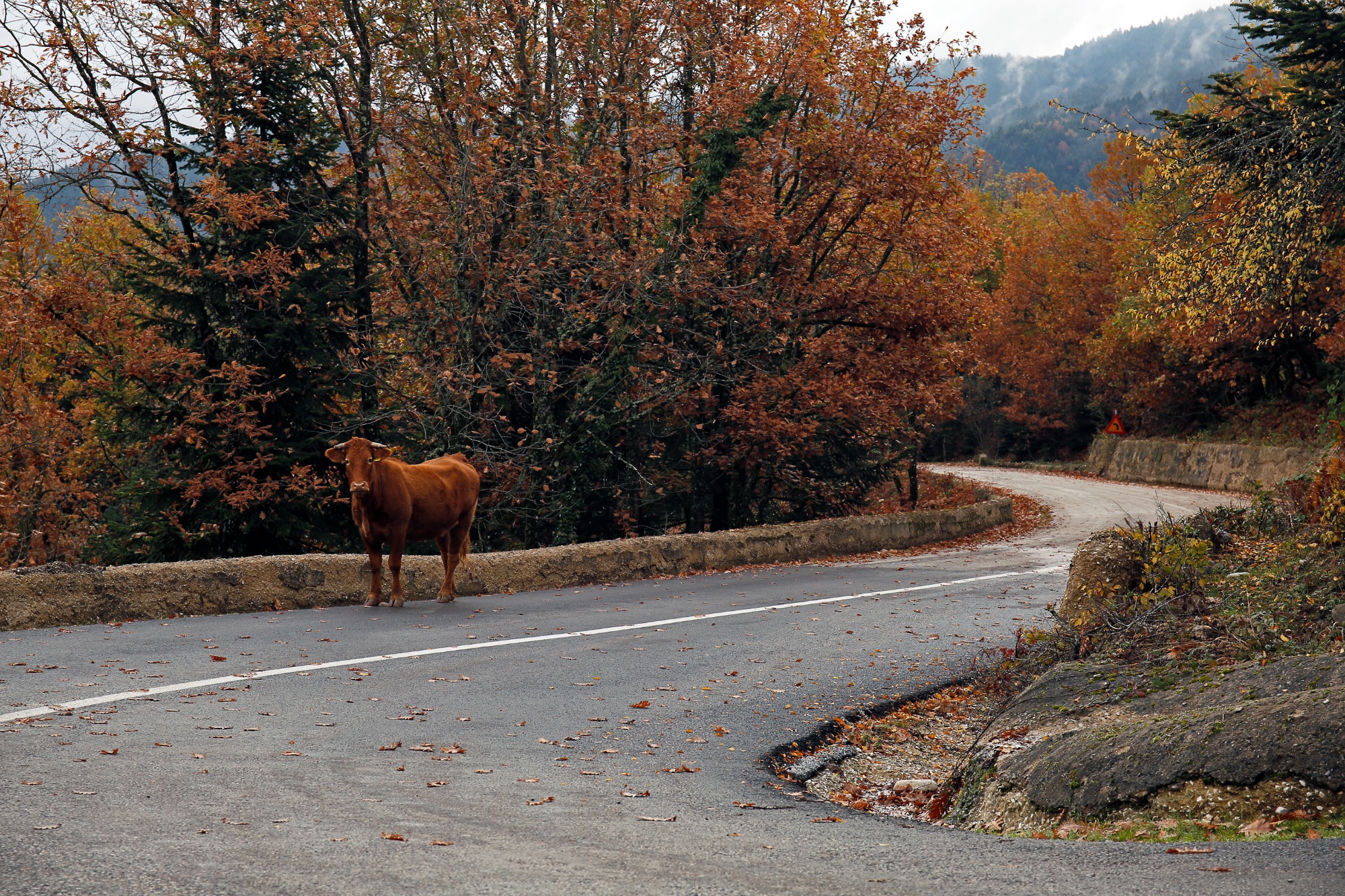 Τα κοπάδια με τα πρόβατα βρίσκονται καταμεσής του οδοστρώματος. Ο ήχος από αλυσοπρίονο, οι διάφοροι καλόγουστοι ξενώνες, οι μυρωδιές από τις κουζίνες, επαγγελματικές και μη, φανερώνουν και τις ασχολίες τους. Στα δεξιά μου, διάφορα ανοίγματα ανάμεσα στα δέντρα, αποκαλύπτουν και κάποια άλλη άποψη της λίμνης, αμέτρητα φυσικά «μπαλκόνια με θέα». Καθώς περνά η ώρα, τα ταξιδιάρικα χαμηλά σύννεφα που έγλυφαν τις κορφές τριγύρω, αρχίζουν να διαλύονται δίνοντας τη θέση τους σε έναν καταγάλανο ουρανό με λαμπρό ήλιο. Καφετιές αγελάδες μοιάζουν σαν να βάφτηκαν με τα χρώματα της εποχής, σαν χαμαιλέοντες του Νοέμβρη, περπατούν αμέριμνες στη μέση του δρόμου, αγνοώντας τον ανυποψίαστο ταξιδιώτη. Οι σωροί από φύλλα στο οδόστρωμα κρύβουν επιμελώς τις μικρότερες αλλά και μεγαλύτερες λακκούβες, καμουφλαρισμένες «νάρκες» οι οποίες ταλαιπωρούν τις αναρτήσεις και τα ελαστικά του κάθε απρόσεκτου ή βιαστικού οδηγού.