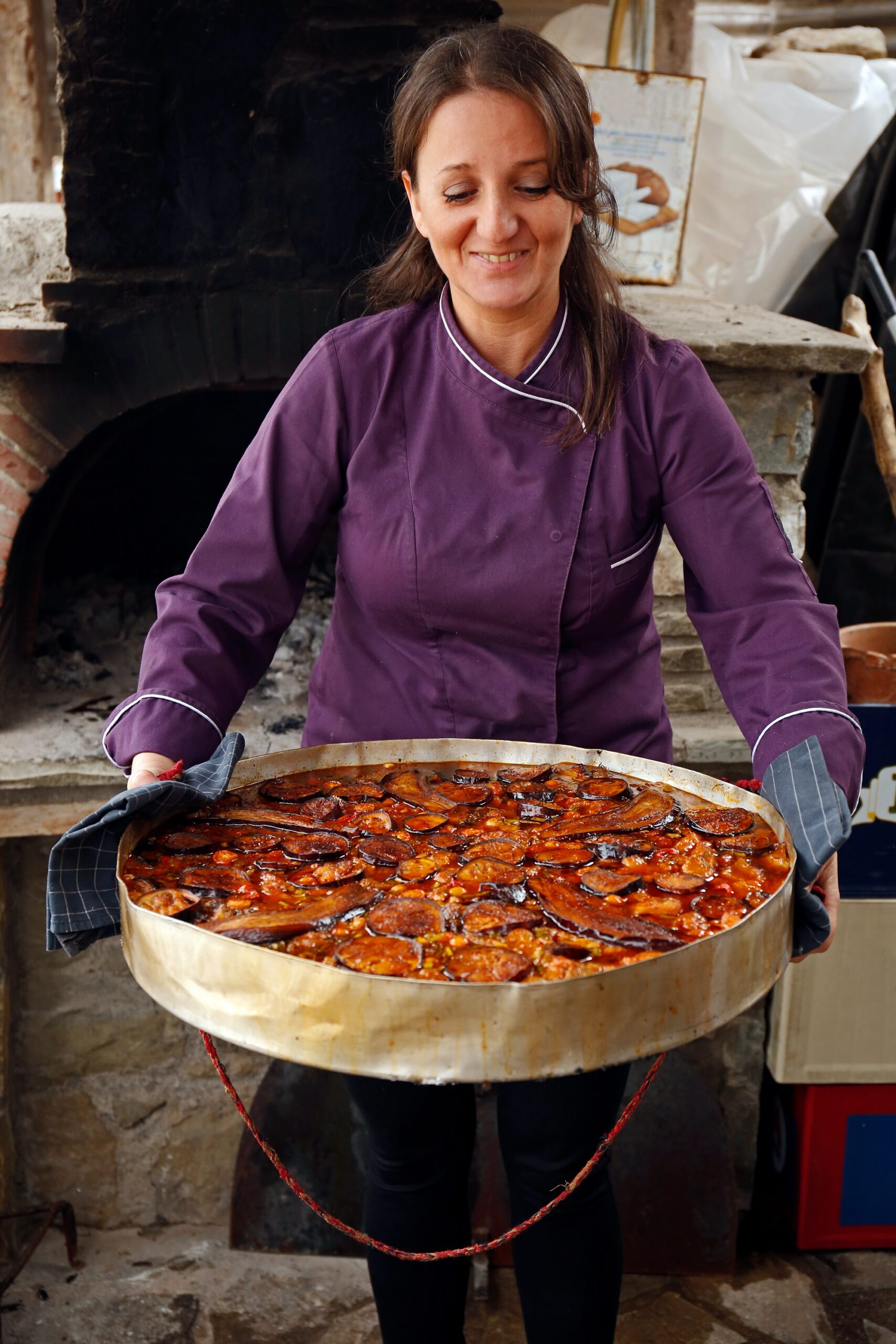 Ρεβύθια με μελιτζάνες στον ξυλόφουρνο φτάνουν στο τραπέζι μου μαζί με το σπιτικό τουρσί, το κατσικίσιο τυρί, ένα γενναίο κομμάτι «πλαστού», της τοπικής χορτόπιτας με καλαμποκάλευρο και, δυστυχώς, λόγω του ταξιδιού που ακολουθεί, ενός μόνο ποτηριού κόκκινου κρασιού. Παράδεισος.