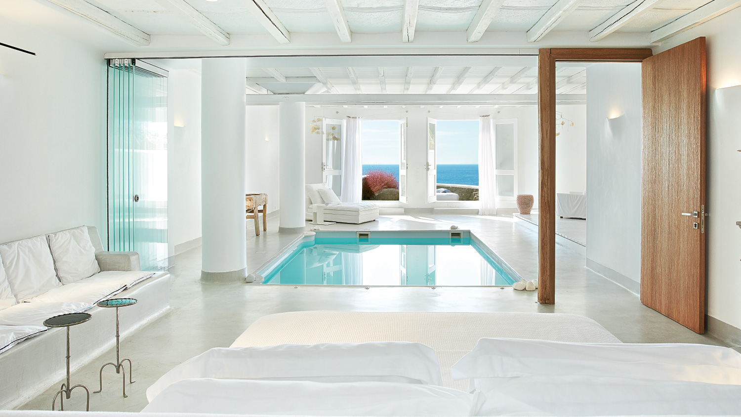 Την ίδια στιγμή, το Mykonos Blu παρέχει στα «πόδια» της Ψαρρού μια σειρά από παροχές που αγκαλιάζουν τις ανάγκες των επισκεπτών του: από πισίνες στα χρώματα του γαλαζοπράσινου ωκεανού, όπου μπορείτε σε ένα πιο προσωπικό κλίμα να απολαύσετε τις βουτιές σας, μέχρι υπηρεσίες σωματικής αναζωογόνησης και μια γαστρονομική σκηνή με τοπική βάση και παράλληλα, διεθνή εμβέλεια.