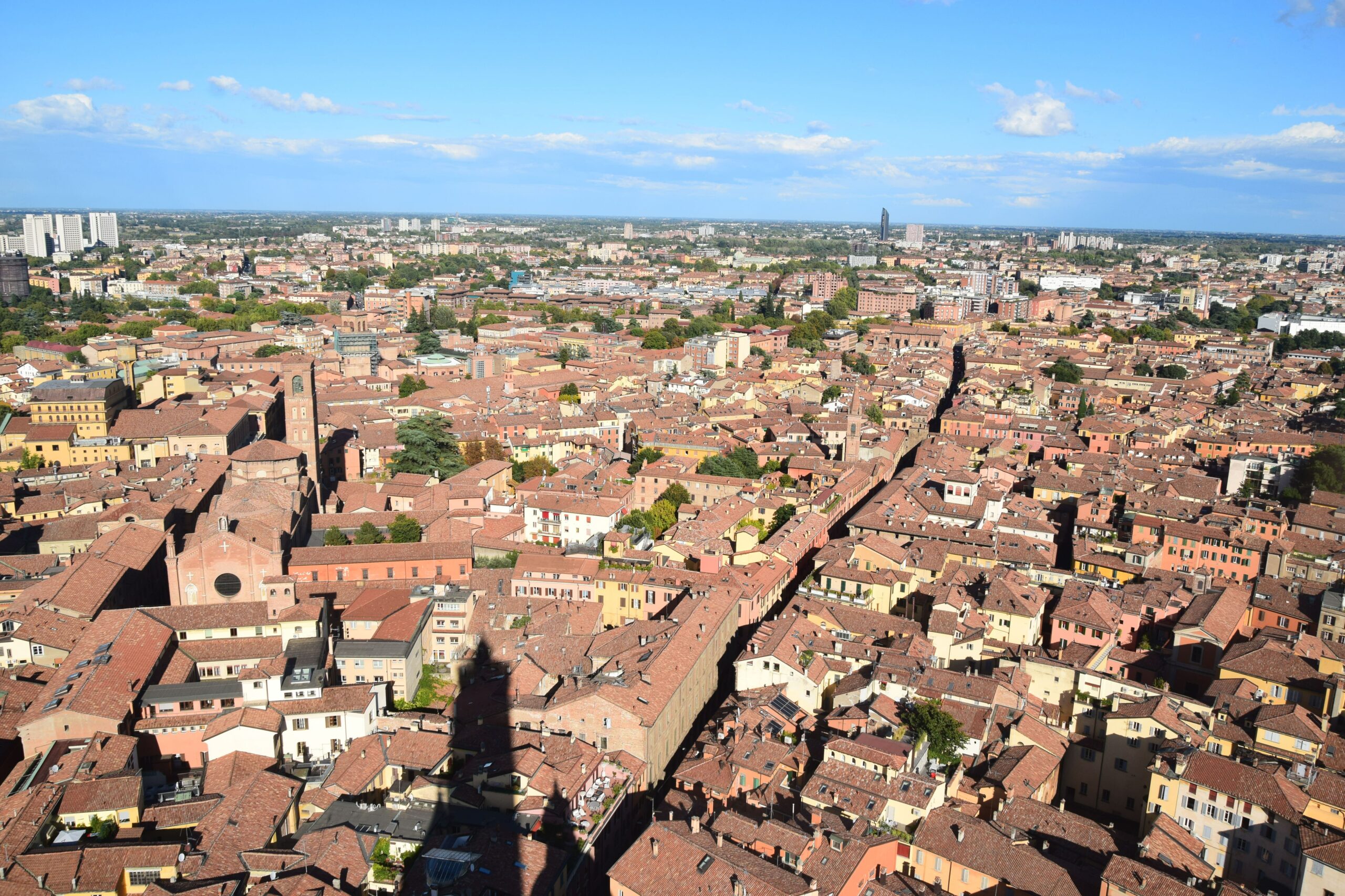 Κοντά στην Piazza Verdi βρίσκονται οι «Δύο Πύργοι», ένα από τα πιο χαρακτηριστικά αξιοθέατα της πόλης. Χτίστηκαν μεταξύ του 1109 και του 1119 από την οικογένεια Asinelli και έχουν ύψος 97 και 47 μέτρα αντίστοιχα. Πάρτε βαθιά ανάσα και ανεβείτε τα 498 απότομα ξύλινα σκαλιά που οδηγούν στην κορυφή του ψηλότερου – η θέα στις κόκκινες σκεπές της πόλης θα σας αποζημιώσει (Piazza di Porta Ravegnana, καθημερινά 10.00-16.30, εισιτήριο 5 ευρώ, ηλεκτρονική αγορά στο www.duetorribologna.com).