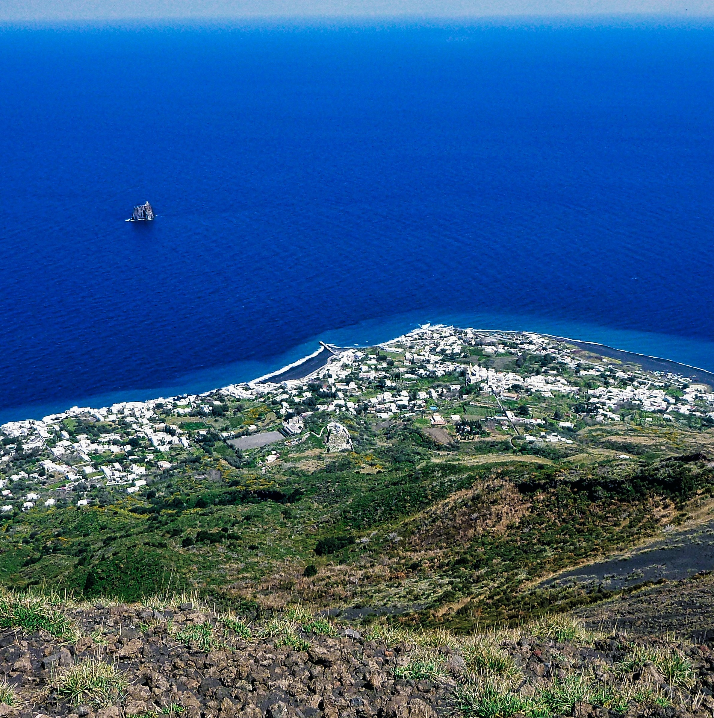Από την άλλη μεριά, τώρα βρίσκονται οι οικισμοί Stromboli, Piscita και San Vincenzo με λευκά κυβικά σπιτάκια που έρχονται σε αντίθεση με τις μαύρες βοτσαλωτές παραλίες που βρίσκονται μπροστά τους. Όμορφα γραφικά στενάκια, βουκαμβίλιες, γεράνια, φραγκοσυκιές και κληματαριές συνθέτουν ένα υπέροχο μεσογειακό τοπίο. Το πιο ενδιαφέρον σημείο του νησιού είναι φυσικά το ηφαίστειο που πολλές φορές η λάβα που σκάει από το στόμιό του είναι σαν να ανάβουν πυροτεχνήματα, ένα εντυπωσιακό θέαμα ιδίως το βράδυ. Μπορείτε να κάνετε πεζοπορίες στις πλαγιές του ηφαιστείου να γυρίσετε το νησί με σκάφος και να χαλαρώσετε στις λίγες αλλά μοναδικής, σχεδόν απόκοσμης ομορφιάς παραλίες του. Ουσιαστικά, εδώ, δεν κυκλοφορούν αυτοκίνητα παρά μόνο σκούτερ, αυτοκίνητα τύπου γκολφ αλλά και κάτι μικρά μονοθέσια φορτηγάκια. Σημείο συνάντησης είναι η κεντρική εκκλησία San Vincenzo στο προαύλιο της οποίας συγκεντρώνονται το απόγευμα όλοι οι πεζοπόροι που ετοιμάζονται να ανέβουν στο ηφαίστειο για να απολαύσουν ένα μοναδικό ηλιοβασίλεμα.
