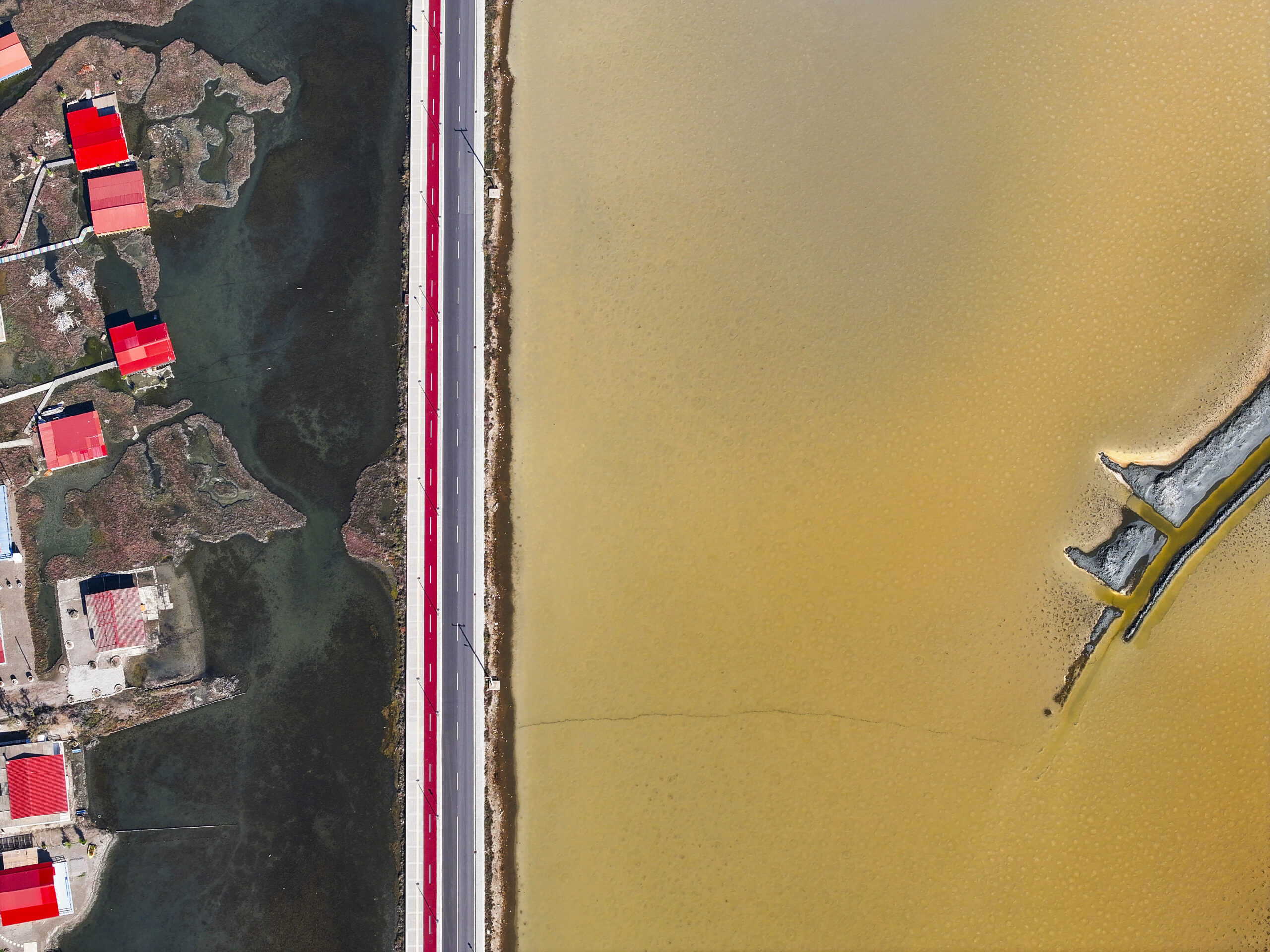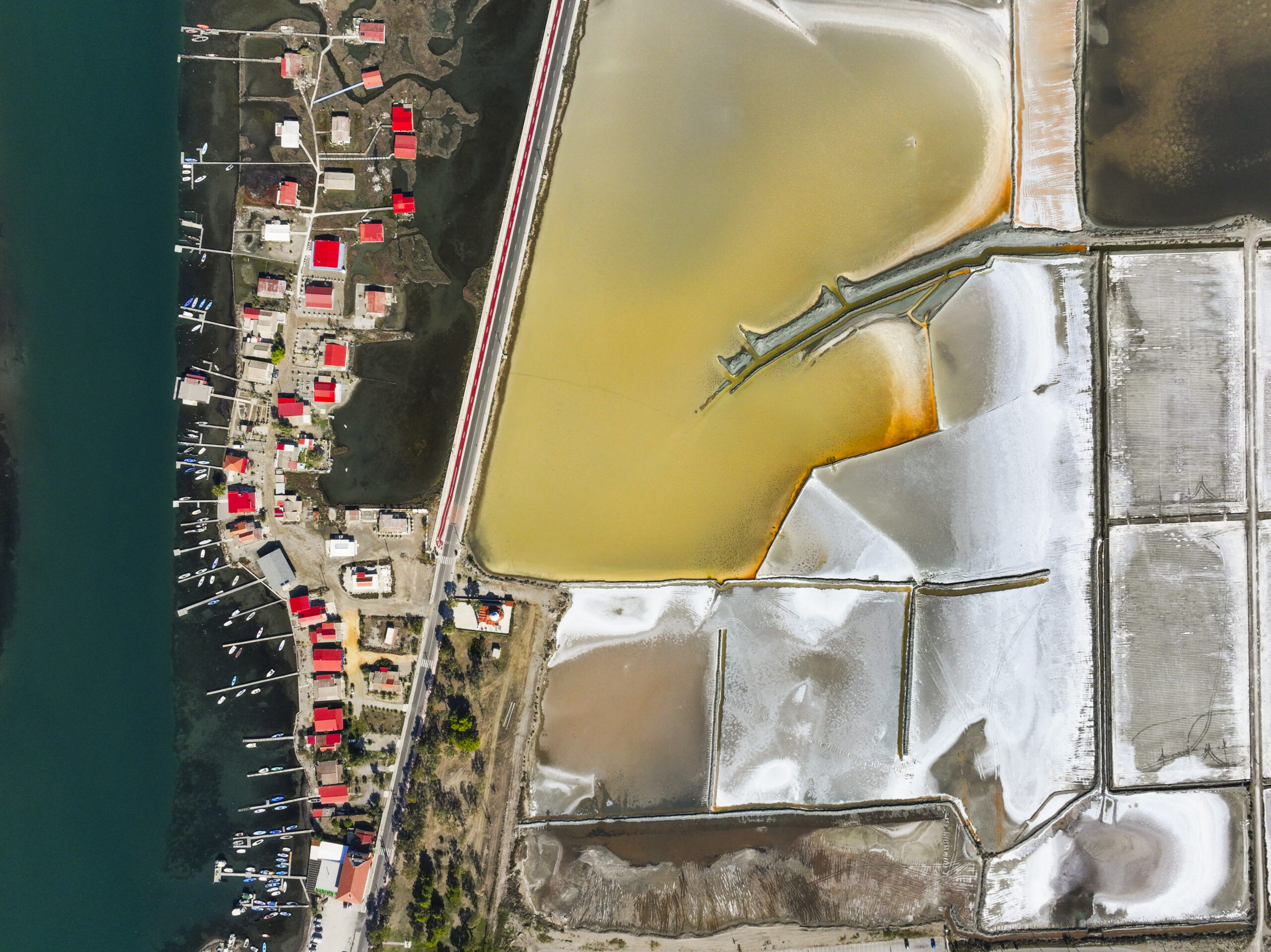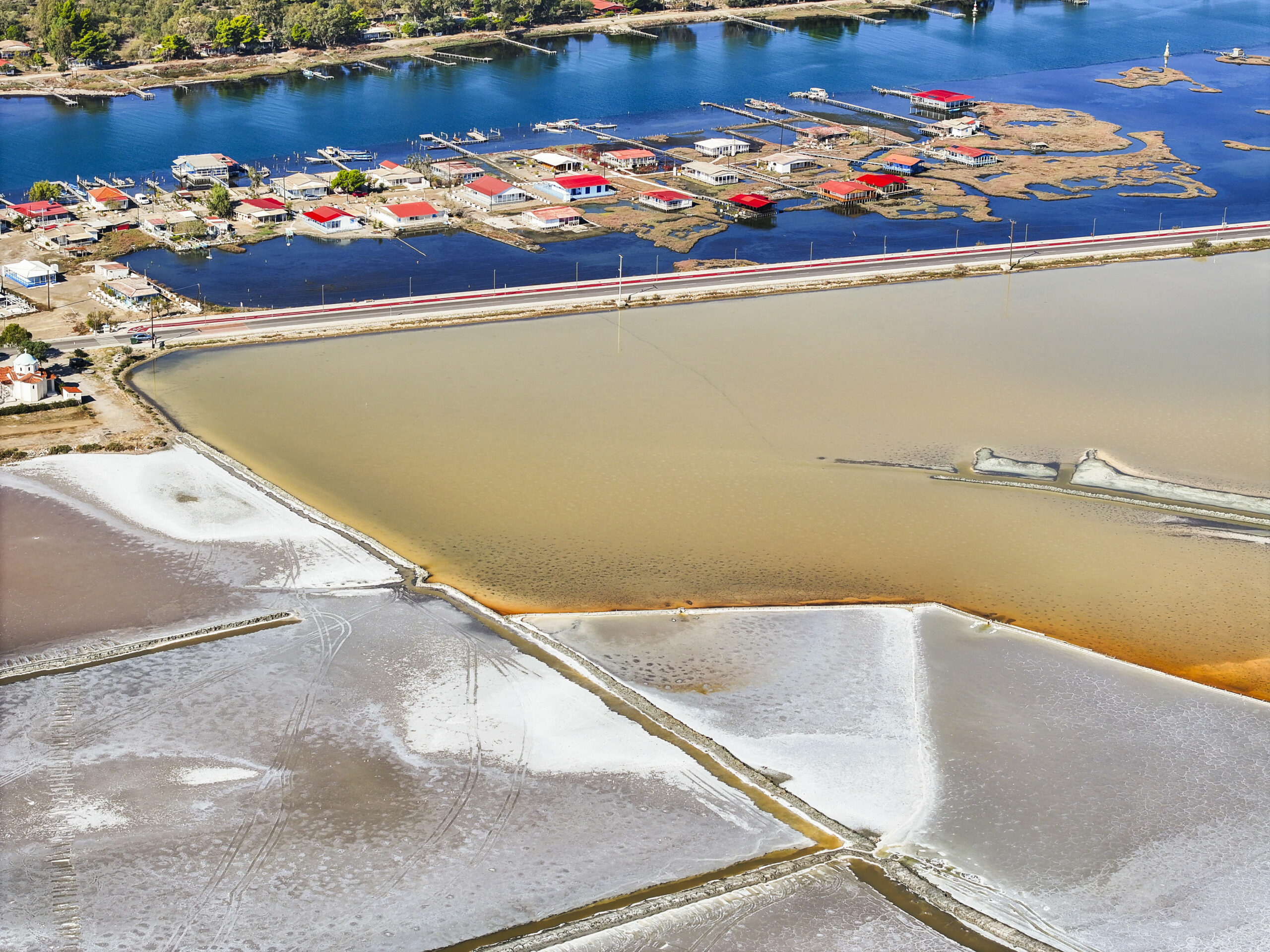 Από ψηλά, οι αλυκές του Μεσολογγίου μοιάζουν με έναν γιγάντιο αφηρημένο πίνακα ζωγραφικής που μεταμορφώνεται με κάθε αλλαγή του φωτός. Η εναέρια θέα αποκαλύπτει ένα μαγευτικό καλειδοσκόπιο χρωμάτων: τα τυρκουάζ νερά της λιμνοθάλασσας συναντούν το χρυσαφένιο των αλυκών, ενώ οι λευκοί κρύσταλλοι του αλατιού δημιουργούν μια εκθαμβωτική αντίθεση με τα βαθιά πράσινα της παράκτιας βλάστησης.