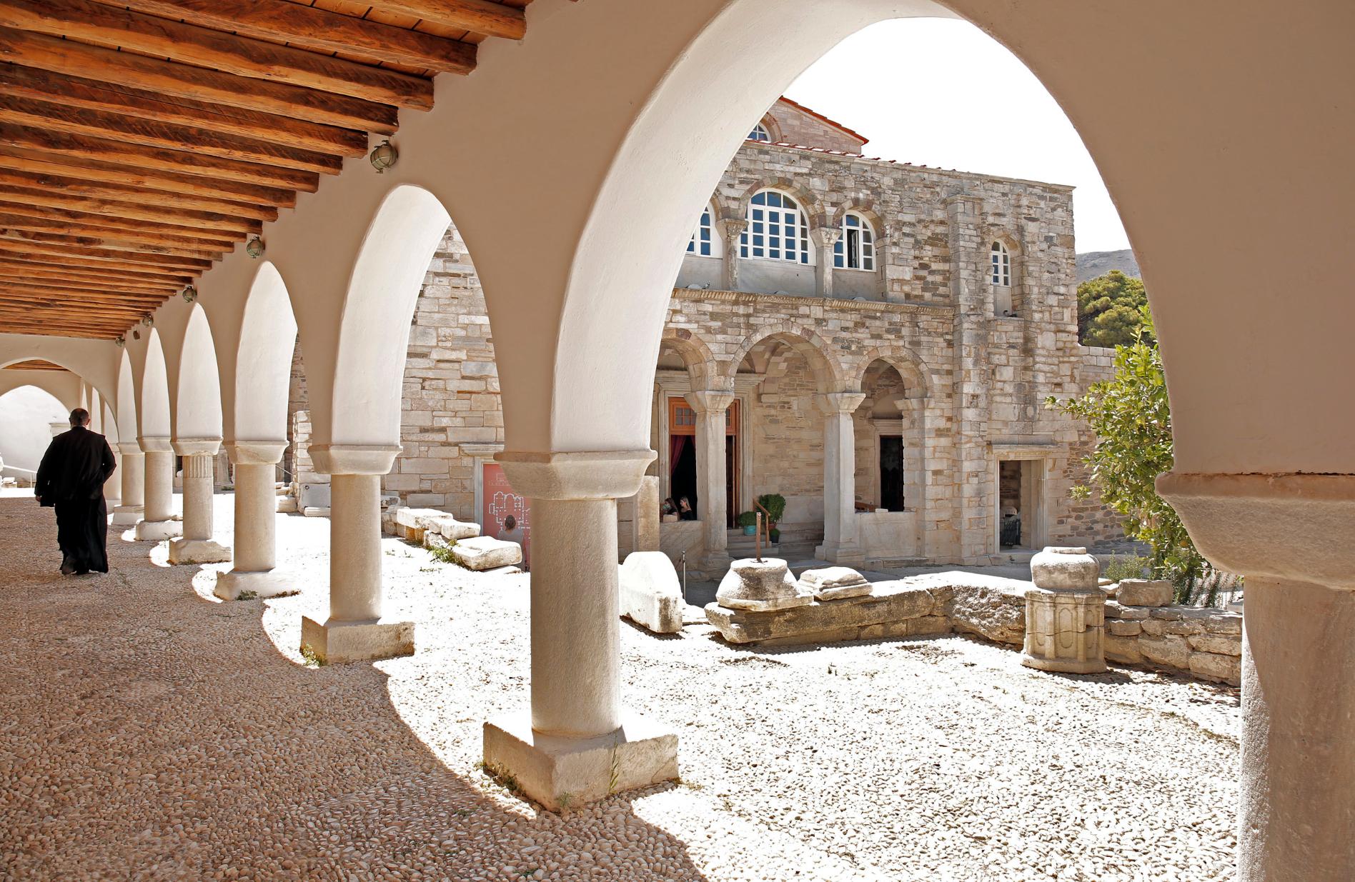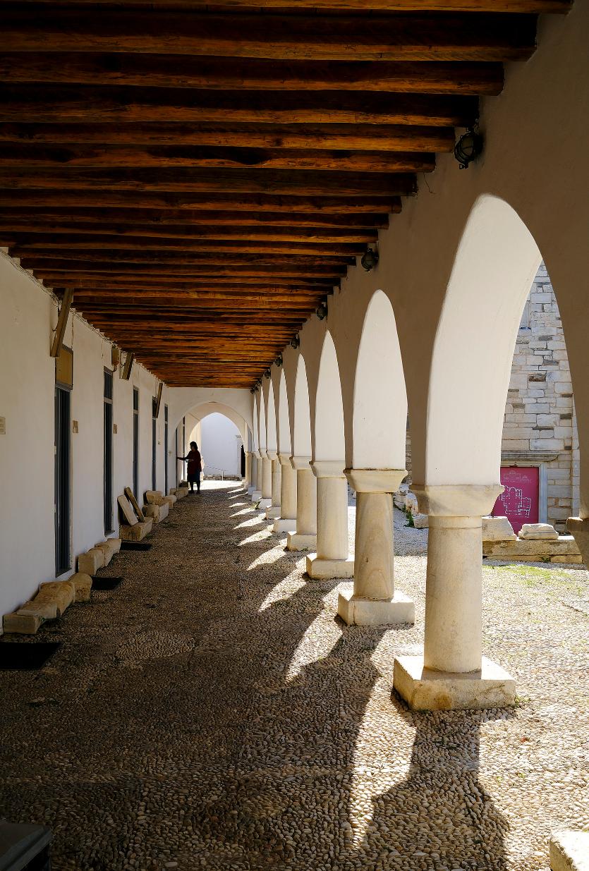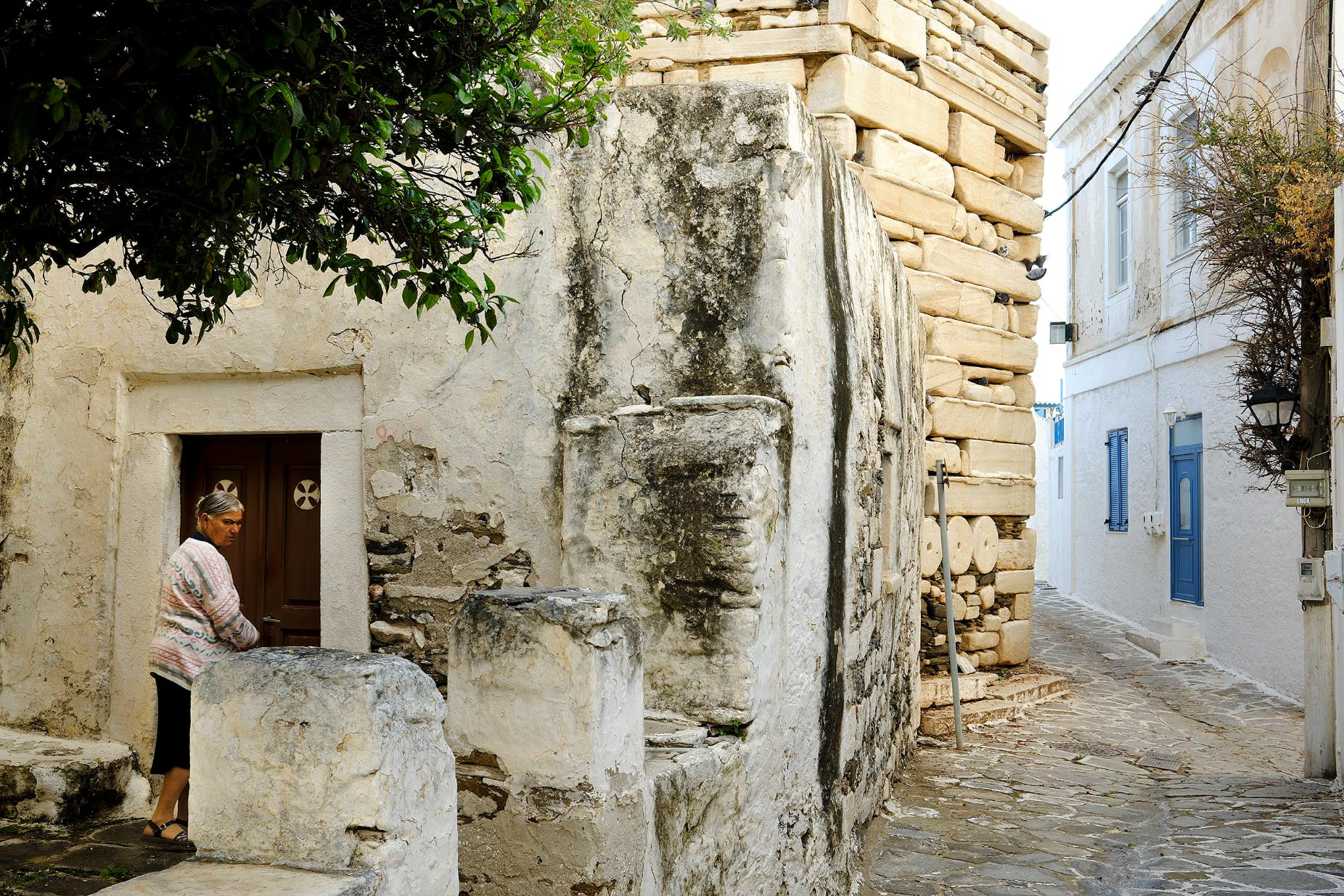 Η μικρή αυλή της Αγίας Άννας, μεσοτοιχία με το Φράγκικο Κάστρο με την ιδιαίτερη αρχιτεκτονική του, δέχεται την περιποίηση της κυρίας που έχει αναλάβει τη φροντίδα της. Μόνος ήχος, τα γουργουρητά από τα δεκάδες περιστέρια τα οποία φιλοξενούνται στα κενά ανάμεσα στις αιώνιες πέτρες του εξωτερικού του Κάστρου. Ακόμη και ο κυματισμός της θάλασσας ακούγεται μέσα στα στενά, πίσω από τον Αρχαϊκό Ναό της Αθηνάς, στον λόφο του Κάστρου.