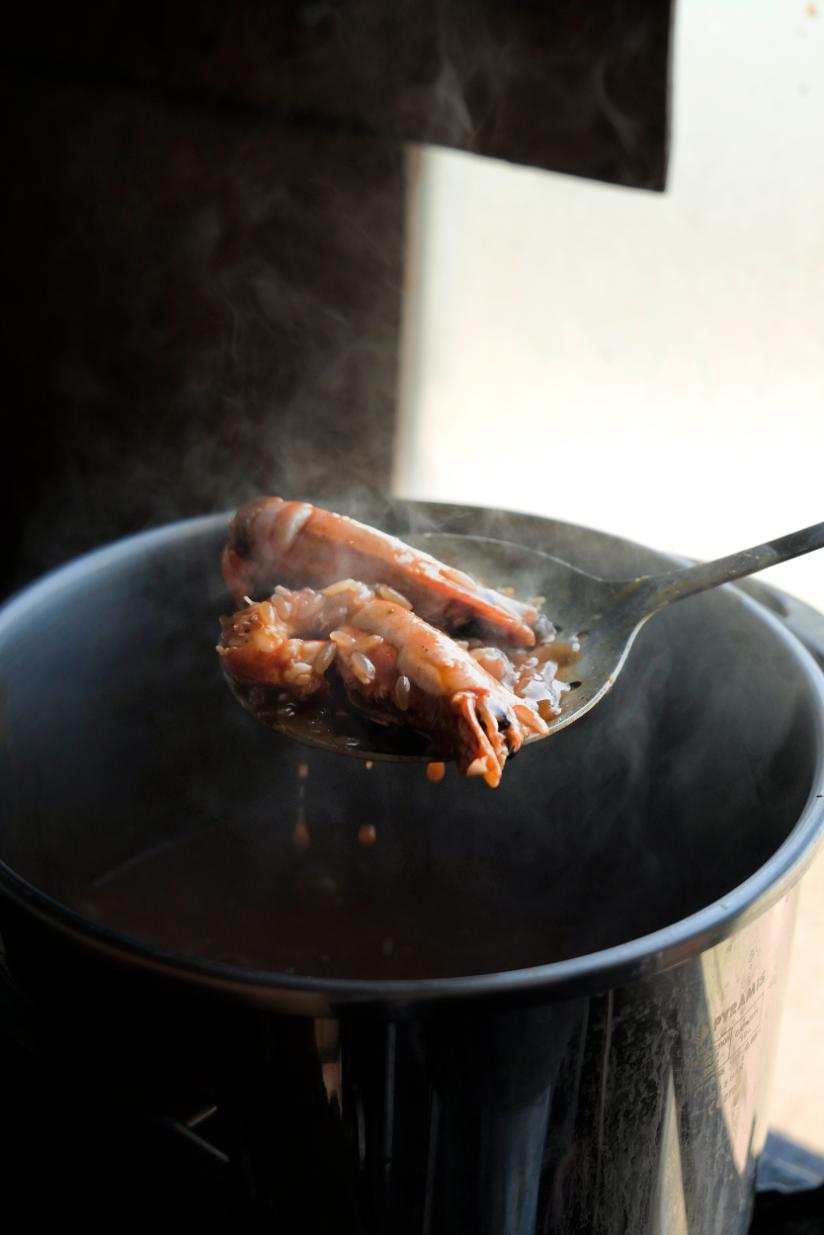 Η μέρα τελειώνει με την επίσκεψη στο καρνάγιο, απέναντι από το διάσημο ψαροχώρι της Νάουσας. Εκεί, σε ένα μικρό κουζινάκι, με παράθυρα γεμάτα αλάτι από τη θάλασσα που σκάει στα βράχια από κάτω, μαγειρεύεται για την παρέα ένα κριθαράκι με γαρίδες και σουπιές. Νηστίσιμο…