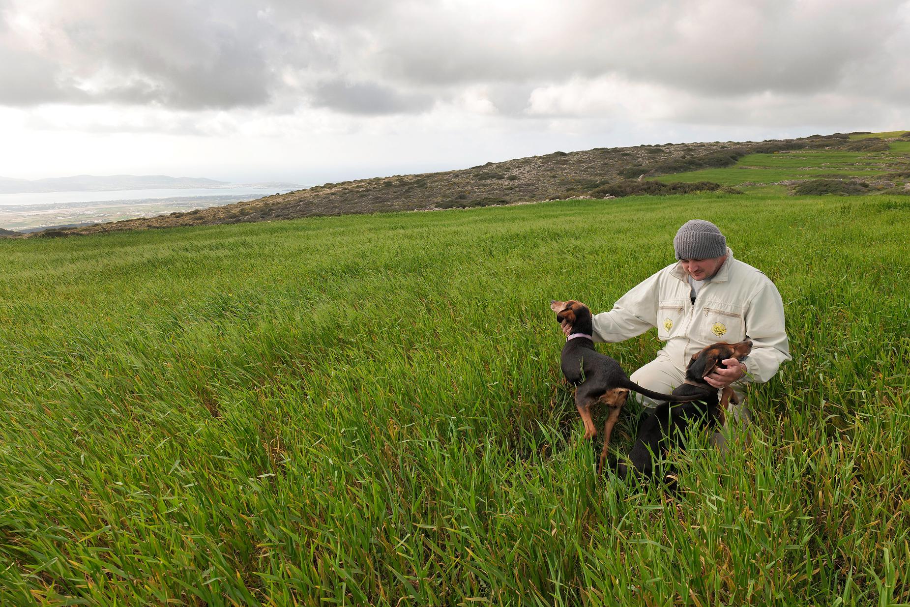 Ο δρόμος φεύγει φιδωτά προς το εσωτερικό του νησιού, προς το Καμάρι, στο νότιο τμήμα της Πάρου. Εκεί με περιμένουν η Μάρω Βούλγαρη με το σύζυγό της Γιάννη Λουκή ή «Φουντούκη» όπως είναι γνωστός με το παρατσούκλι του και το γιο τους, Αργύρη. Μετά από λίγα χιλιόμετρα χωματόδρομου, φτάνουμε στο κτήμα τους, την Αλησφακοπή, ψηλά, στα 450 μέτρα περίπου.