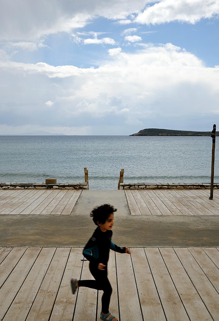 Οι πρώτοι, τολμηροί με τη θάλασσα, τουρίστες έχουν αφήσει τα παιδιά τους να τρέχουν και να παίζουν στα, ανέτοιμα ακόμη, ντεκ κάποιων τουριστικών επιχειρήσεων στη Χρυσή Ακτή. Η απουσία κόσμου αλλά και των, απαιτητών πια από τους επισκέπτες, ομπρελών στην παραλία, αποκαλύπτει τη σπάνια ομορφιά του Παριανού τοπίου, αυτής της θάλασσας και αυτών των παραλιών τα οποία έκαναν αυτό το νησί διάσημο στο παρελθόν.