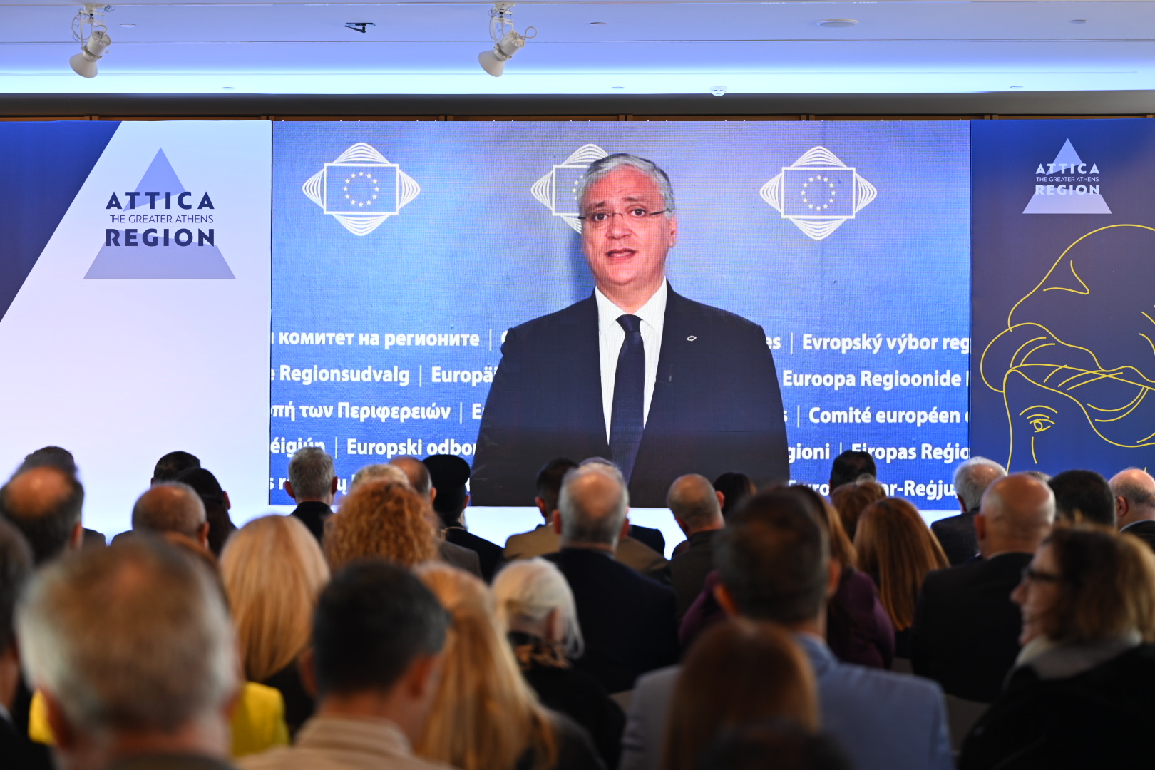 Η Ευρωπαϊκή Πράσινη Συμφωνία, όπως ανέφερε, «είναι το σχέδιό μας για την αντιμετώπιση αυτής της κρίσης, αντιμετωπίζοντας περιβαλλοντικές και οικονομικές προκλήσεις μαζί». Εξήγησε ότι «το 70% του μετριασμού της κλιματικής αλλαγής και το 90% των μέτρων προσαρμογής υλοποιούνται σε τοπικό και περιφερειακό επίπεδο», γεγονός που καθιστά τις τοπικές και περιφερειακές αρχές καθοριστικούς παράγοντες για την επιτυχία αυτής της μετάβασης. Τόνισε ότι «η σωστή χρηματοδότηση της πράσινης μετάβασης σε τοπικό και περιφερειακό επίπεδο είναι απαραίτητη». Αναφέρθηκε στις επενδύσεις που απαιτούνται, σημειώνοντας ότι «μόνο η πολιτική συνοχής παρέχει 92 δισεκατομμύρια ευρώ στις περιφέρειες και τις πόλεις κατά την τρέχουσα προγραμματική περίοδο για τη στήριξη της Πράσινης Συμφωνίας». Υπογράμμισε τον θετικό αντίκτυπο αυτής της πολιτικής «παντού στην Ευρώπη και στην Αττική».