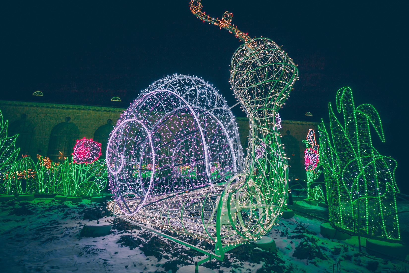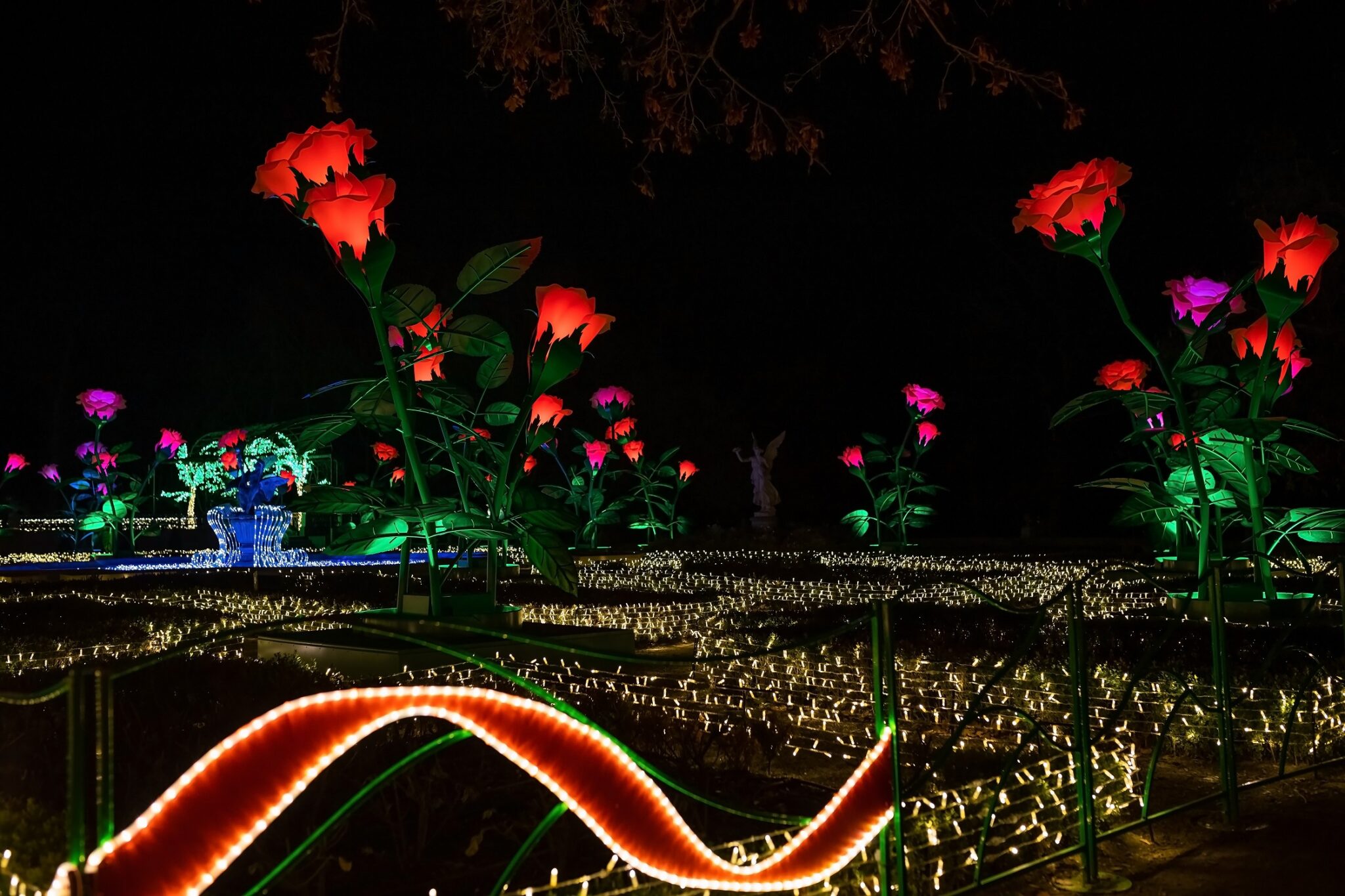 Γιγάντια λουλούδια λάμπουν μέσα στη νύχτα, δίπλα στα τεράστια σαλιγκάρια κατασκευασμένα από φωτάκια LED. Τα πάντα αναβοσβήνουν στους ρυθμούς της μουσικής, ενώ ο κόσμος ποζάρει κάτω από την επιβλητική στοά φωτός που ξεχωρίζει στην καρδιά των βασιλικών κήπων. Κάθε χρόνο εδώ υπάρχει και κάτι εντελώς νέο για να δείτε, με τον φωτισμό να ακολουθεί ακολουθεί κάθε Χριστούγεννα διαφορετικό «κόνσεπτ», παραμένοντας πάντοτε εξίσου καθηλωτικός και εντυπωσιακός.