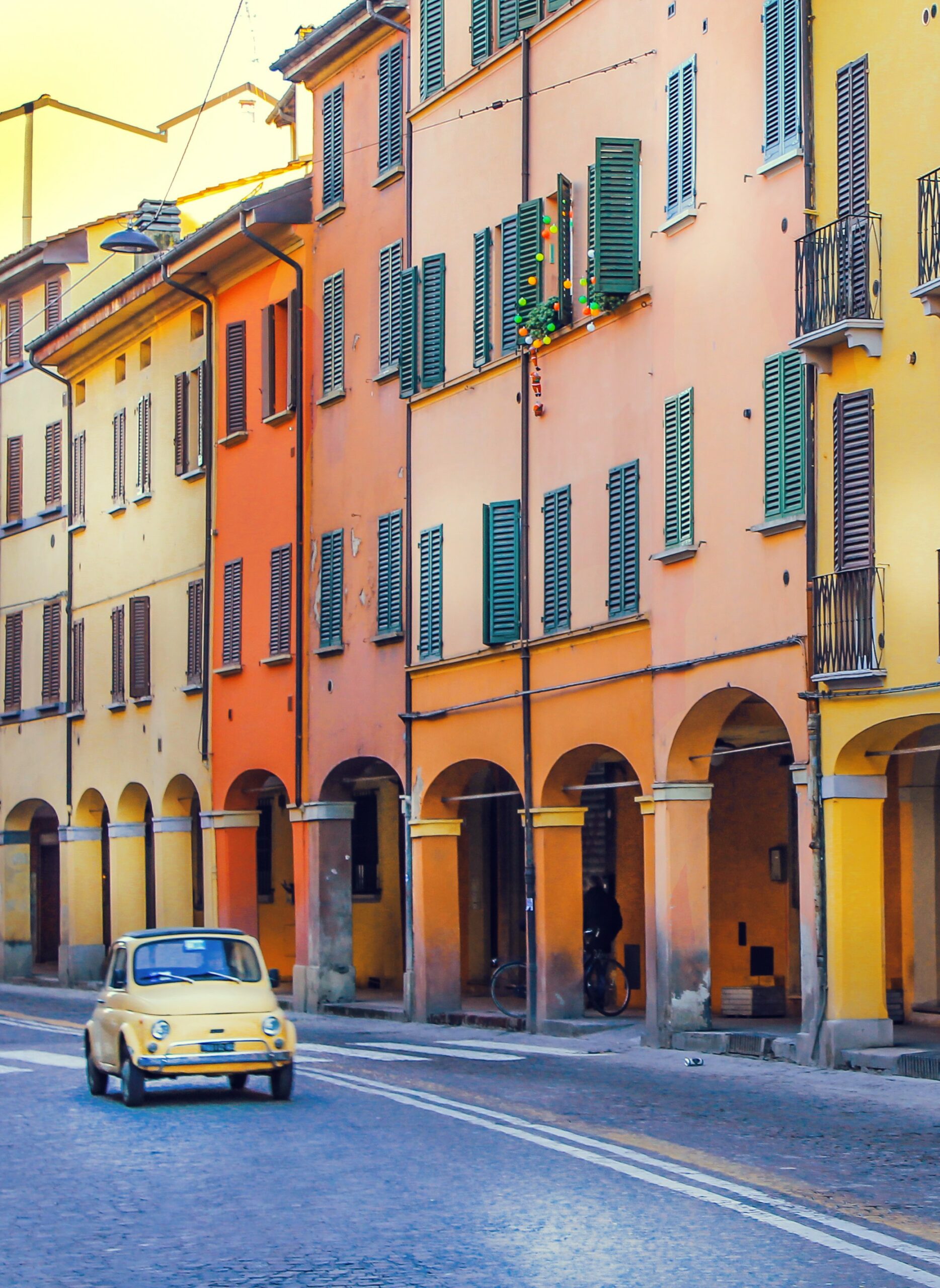 Η Μπολόνια είναι γνωστή για την καλοδιατηρημένη μεσαιωνική αρχιτεκτονική της, που της χάρισε το παρατσούκλι “La Rossa” (Η Κόκκινη) λόγω των κόκκινων στεγών των κτιρίων της. Το ιστορικό κέντρο της πόλης είναι μνημείο παγκόσμιας κληρονομιάς της UNESCO και φιλοξενεί υπέροχα αξιοθέατα όπως οι Δύο Πύργοι, η Βασιλική di San Petronio και η πανέμορφη Piazza Maggiore.