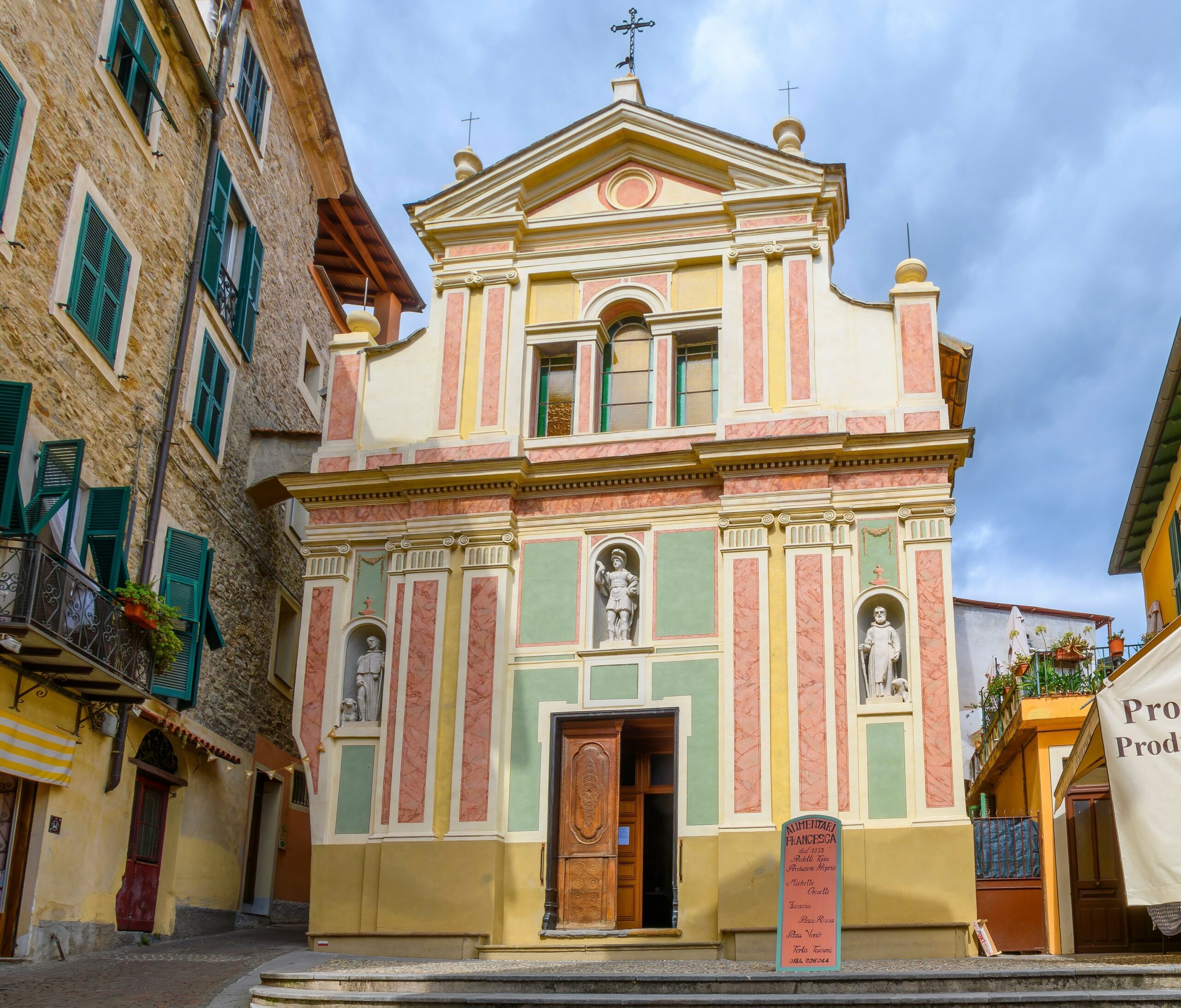 Στη μικρή πλατεία που συνορεύει με το ποτάμι ξεχωρίζει η επιβλητική, πανέμορφη εκκλησία του Saint Anthony Abbott. Ένα υπέροχο μπαρόκ κτίριο το εσωτερικό του οποίου στολίζει το όμορφο πολύπτυχο Santa Devota του 1515 φιλοτεχνημένο από τον Ιταλό ζωγράφο της Αναγέννησης Ludovico Brea. Μην την προσπεράσετε λοιπόν, ανοίξτε την πόρτα περπατήστε στον κεντρικό διάδρομο και θαυμάστε τον εσωτερικό της διάκοσμο.