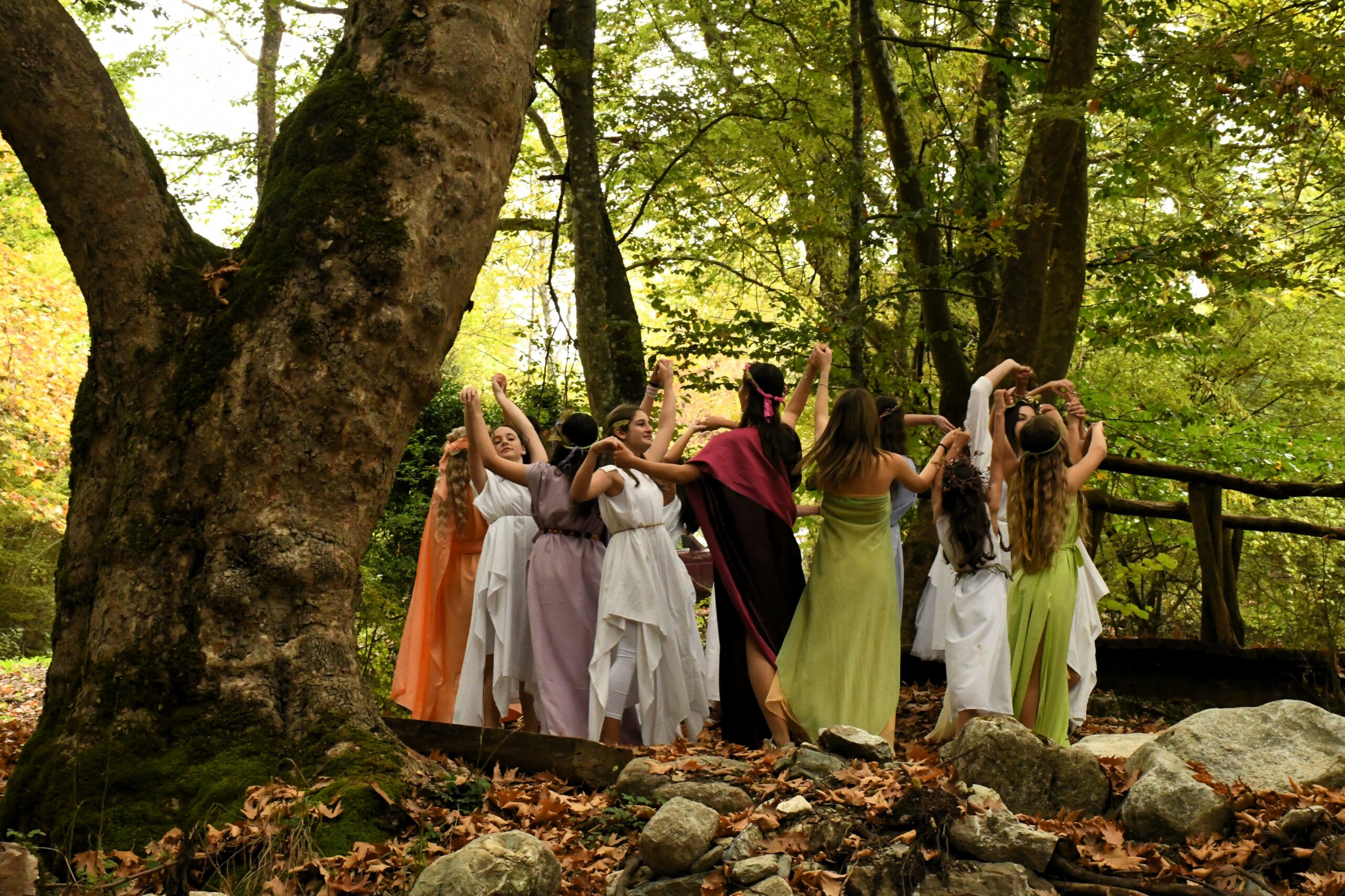 Το σκηνικό ήταν συγκλονιστικό: το θρόισμα των φύλλων, ο ήχος του νερού που κυλούσε αδιάκοπα, και το δάσος να αγκαλιάζει τη στιγμή, έκαναν την εμπειρία ακόμα πιο μαγευτική. Η φύση, με την ομορφιά και την γαλήνη της, έγινε το τέλειο πλαίσιο για το καλλιτεχνικό δρώμενο, γεμίζοντας μας με συναισθήματα θαυμασμού και νοσταλγίας για τους αρχαίους ελληνικούς μύθους. Μέσα από το δρώμενο, το παρελθόν ενώθηκε με το παρόν, προσφέροντας μια αξέχαστη εμπειρία γεμάτη τέχνη και φυσική ομορφιά.