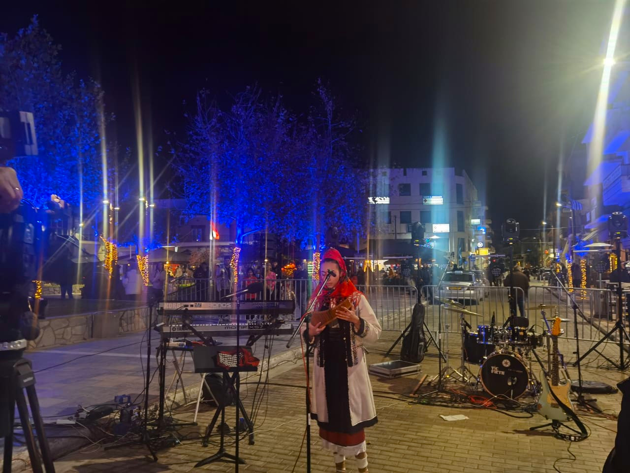 Το παγοδρόμιο που στήθηκε στην πλατεία είχε την τιμητική του, ενώ λίγο πριν ανάψουν τα χιλιάδες λαμπιόνια του δέντρου, ρουμανικά κάλαντα γέμισαν την ατμόσφαιρα με τρυφερούς ήχους.