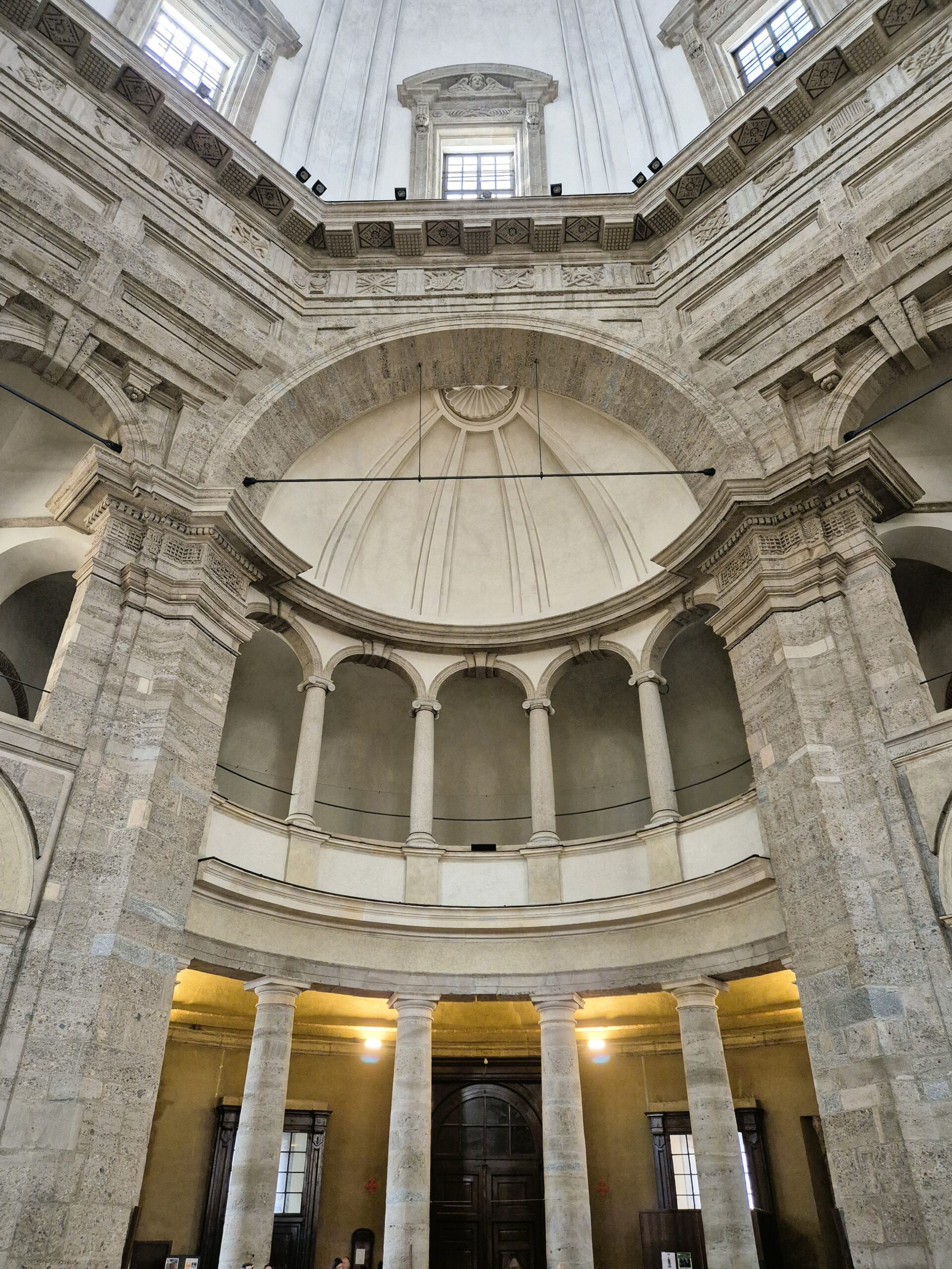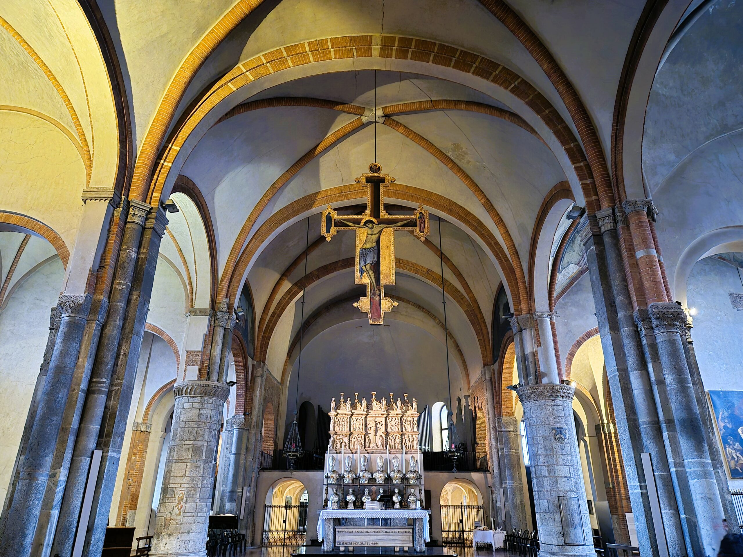 Μπορεί ο εντυπωσιακής κλίμακας ναός που χτίστηκε μεταξύ 355 και 357 σε ρυθμό βασιλικής και αφιερώθηκε στον μάρτυρα Λαυρέντιο, να υπέστη πολλαπλές τροποποιήσεις κατά τον Μεσαίωνα, ωστόσο δεν έχασε το χαρακτηριστικό οκταγωνικό σχήμα και τον υποβλητικό κυκλικό του πυρήνα. Η ύπαρξη ενός matroneum – εξώστη γυναικών – μαρτυρά ότι πρόκειται για μια από τις πρωτοχριστιανικές εκκλησίες του Μιλάνου, το ίδιο και οι παλαιοχριστιανικές τοξωτές στοές και οι ογκώδεις καμάρες της, ενώ τα παρεκκλήσια, κάποια από τα οποία προστέθηκαν μεταγενέστερα, συνθέτουν μια ιστορική αφήγηση που εκτείνεται από τη ρωμαϊκή εποχή έως το μπαρόκ, δημιουργώντας μια αίσθηση διαχρονικότητας, σαν να περπατά κανείς μέσα σε διαφορετικές εποχές ταυτόχρονα.