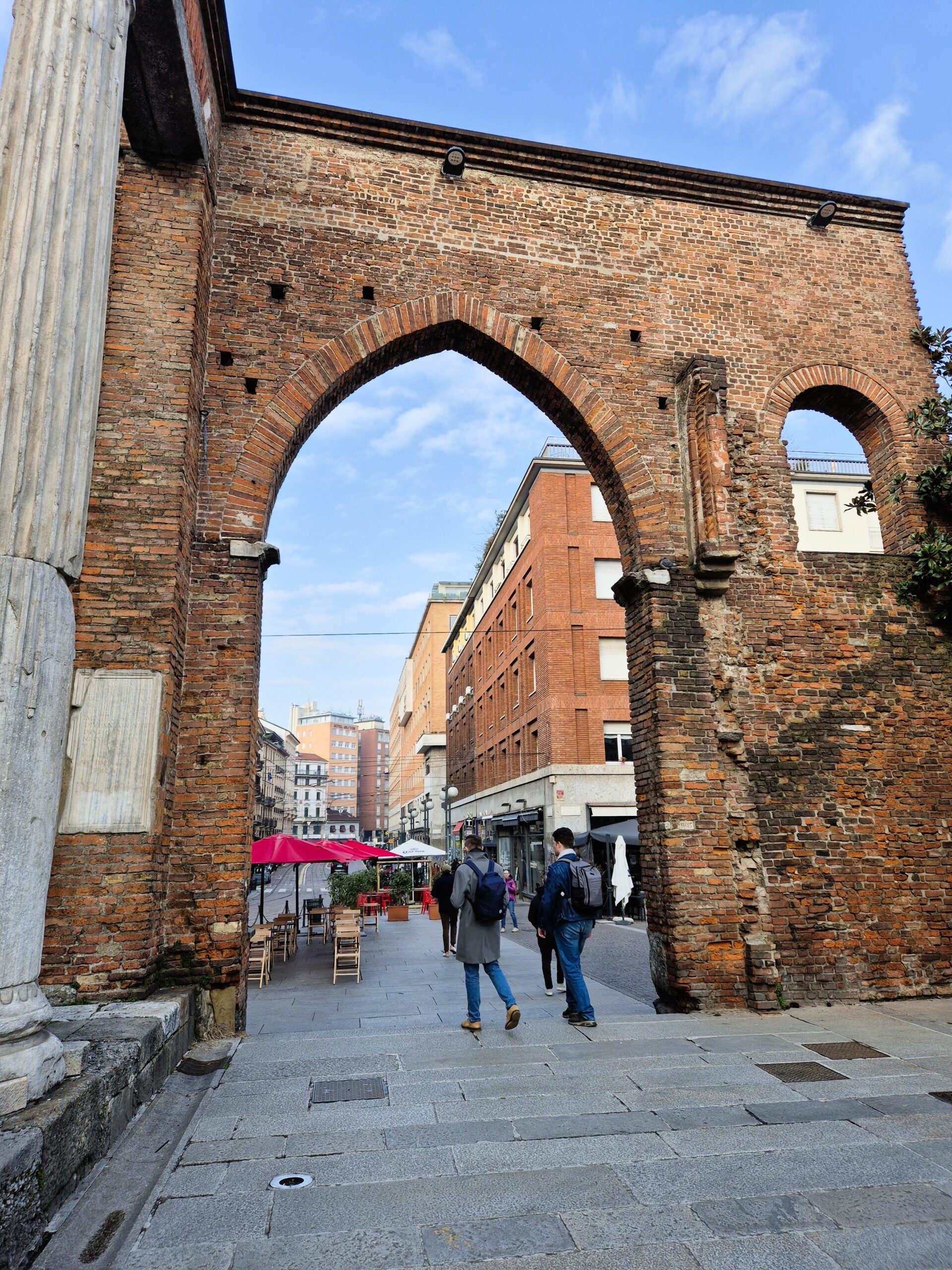 Σαν ένας ήσυχος μάρτυρας της καθημερινότητας προσκυνητών, εμπόρων και ταξιδιωτών, η Porta Ticinese ένα ακόμη σημαντικό ορόσημο στο τοπίο της περιοχής, προσθέτει έναν μεσαιωνικό τόνο ανάμεσα στη ρωμαϊκή κληρονομιά και τη θρησκευτική μεγαλοπρέπεια της γειτονιάς, υπενθυμίζοντας ότι το Μιλάνο υπήρξε πάντα μια κομβική πόλη περασμάτων. Η αρχική πύλη του 12ου αιώνα σηματοδοτούσε το άνοιγμα προς τον νότο, το σημείο μετάβασης από την εντός των τειχών πόλη προς τη Λομβαρδία, τον ποταμό Τιτσίνο και τα εμπορικά δίκτυα που τροφοδότησαν την οικονομική και πολιτιστική ζωή του Μιλάνου, ενώ η ανασκευασμένη πύλη του 1861 που βλέπουμε σήμερα, γίνεται ένα ιδανικό φωτογραφικό κάδρο καθώς από κάτω της διέρχονται τα χαρακτηριστικά κίτρινα τραμ. Συμβολίζοντας το πέρασμα από την αρχαιότητα στον Μεσαίωνα, οδηγεί το βλέμμα και τα βήματά μας προς τη Basilica di Sant’Eustorgio, εκεί όπου η ιστορία του Μιλάνου αποκτά πνευματικό βάθος και διεθνή ακτινοβολία.