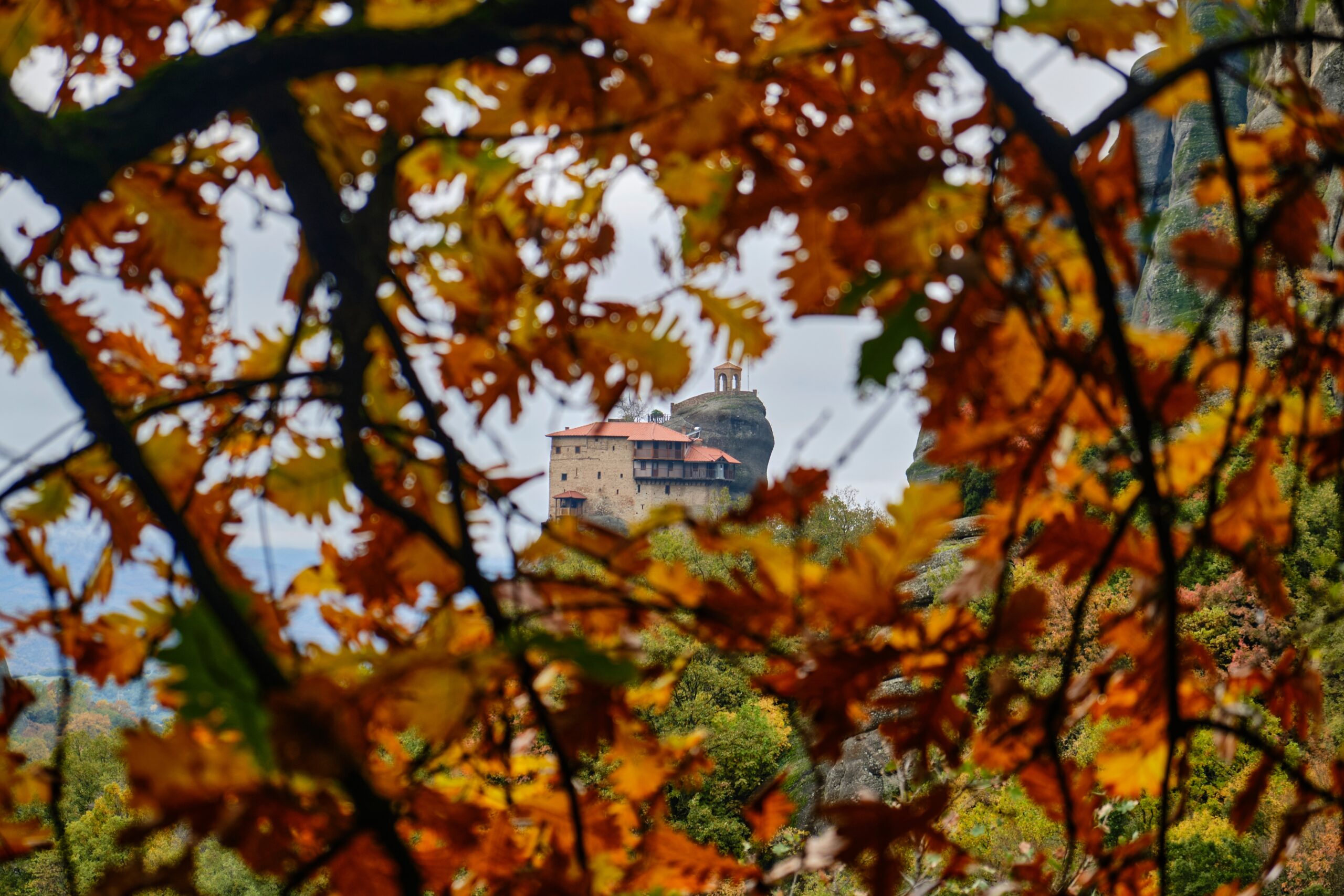 Το φθινόπωρο, γεμάτο αποχρώσεις και φως, ταιριάζει όσο καμία άλλη εποχή στα Μετέωρα. Με φόντο τις πλαγιές του Κόζιακα, που αυτή την περίοδο ντύνονται με κάθε λογής χρώματα, οι βράχοι μοιάζουν να περικυκλώνονται από απέραντες εκτάσεις, δημιουργώντας ένα σκηνικό φθινοπωρινής αρμονίας που δύσκολα συναντά κανείς αλλού στην Ελλάδα.