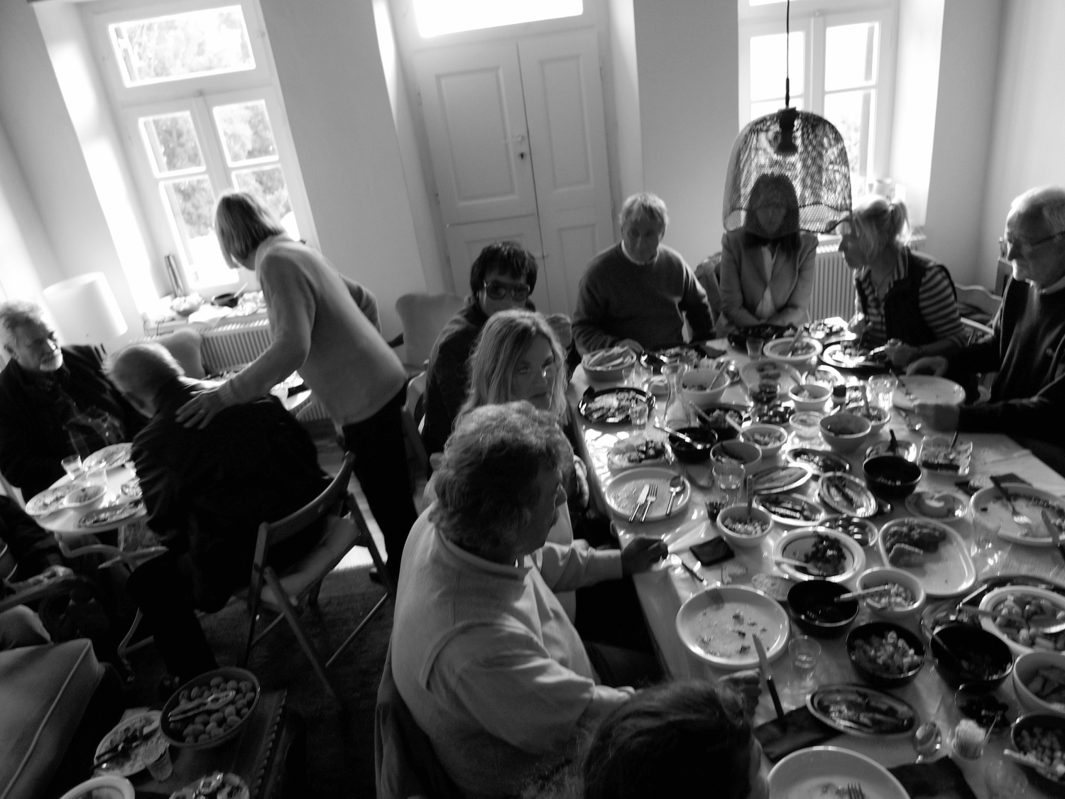 Το τελετουργικό τραπέζι αρχίζει από το πρωί με το ζωμό του κρέατος και συνεχίζεται το μεσημέρι με κοκκινιστό μοσχάρι – που φροντίζουν να φάνε και τη γλώσσα ως αντίδοτο στη γλωσσοφαγιά – και ντολμάδες. Το ψωμί περιφέρεται από συνδαιτυμόνα σε συνδαιτυμόνα και εκείνος το τσιμπά ένα ψίχουλο, όπως συμβαίνει στις τράπεζες των μοναστηριών του Αγίου Όρους. Δεν τσουγκρίζουν ποτήρια, αλλά τάσια, και αυτή είναι μια καλή ευκαιρία να συζητήσουν και να εξομαλύνουν τις διαφορές τους μέσα σε οικογενειακό κλίμα. Γύρω από ένα στρωμένο τραπέζι όλα μπορούν να συμβούν.
