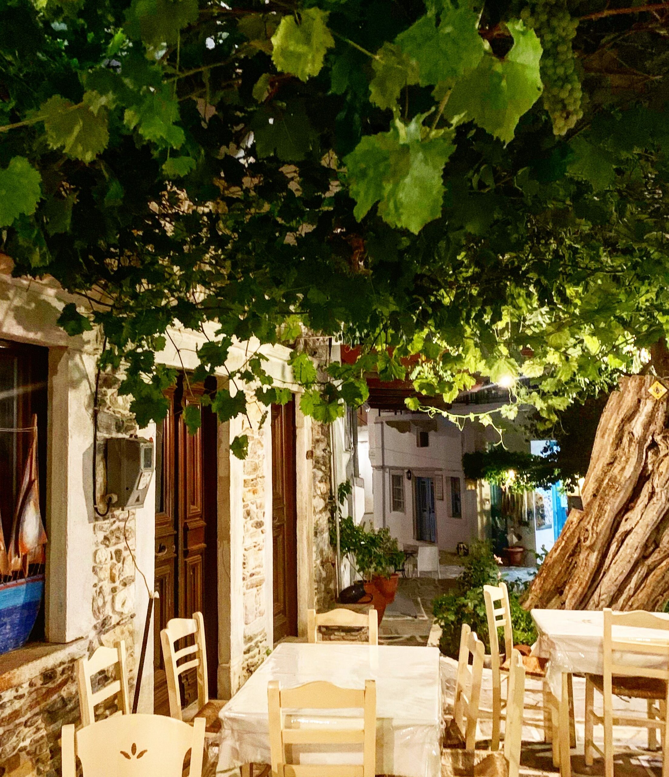 Δεσπόζουν εδώ τα ειδικά ψυγεία ξηρής ωρίμανσης όπου ο ιδιοκτήτης σιτεύει τα κρέατα και αν τον ρωτήσετε μπορεί να αποκαλύψει όλα τα μυστικά του. Το κοντοσούβλι του είναι επικό, τα γαρδούμια (όπως αποκαλούν οι Ναξιώτες τα γαρδούμπια) είναι εξαίσια ενώ τα παϊδάκια του πάντα ιδανικά ψημένα και οι πατάτες με τριμμένο τυρί τρώγονται ακόμα και ως επιδόρπιο. Μην ξεχάσεις να ζητήσεις ακόμα και μετά το κυρίως γεύμα, κάποια από τα δικά του τυριά όπως το ξινότυρο. Όλο αυτό το πανδαιμόνιο κρεατοφαγίας συνοδεύεται απαραιτήτως από κολοκυθοκεφτέδες και σαλάτα με ντόπιες γλυκοντομάτες.