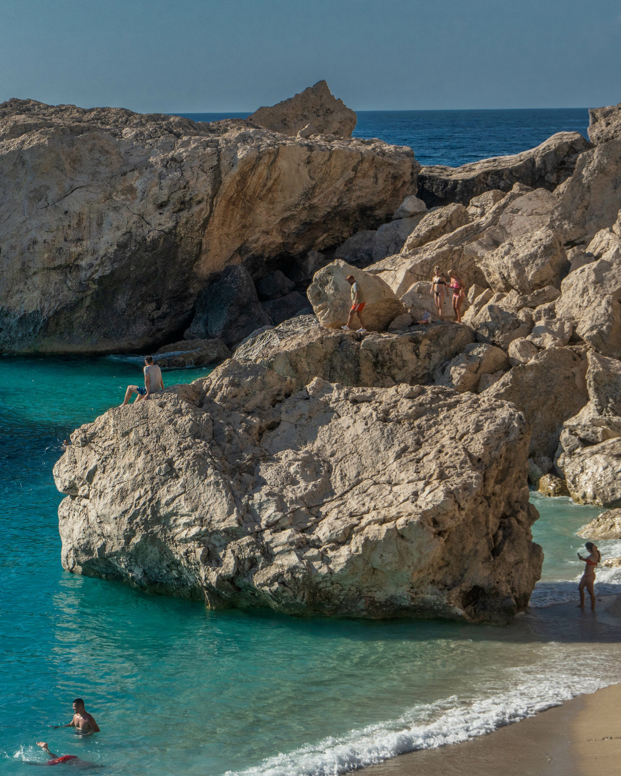 Πόρτο Κατσίκι: Τα εξωτικά, διάφανα νερά της σε συνδυασμό με τους απόκρημνους, κάθετους βράχους που την πλαισιώνουν, την έχουν κάνει διάσημη σε όλο τον κόσμο. Συνήθως είναι κατάμεστη από κόσμο, όλες τις ώρες της ημέρας. Και σε αυτήν την παραλία θα χρειαστεί να κατέβετε αρκετά σκαλοπάτια μέχρι να πατήσετε στην άμμο. Στην κορυφή των βράχων υπάρχουν πάρκινγκ, τα οποία όμως γεμίζουν γρήγορα, ενώ η παραλία είναι προσβάσιμη και μέσω μικρών τουριστικών σκαφών που αποβιβάζουν πληθώρα τουριστών. Η παραλία δεν είναι οργανωμένη, οπότε θα πρέπει να έχετε μαζί σας όλα όσα χρειάζεστε πριν ξεκινήσετε.