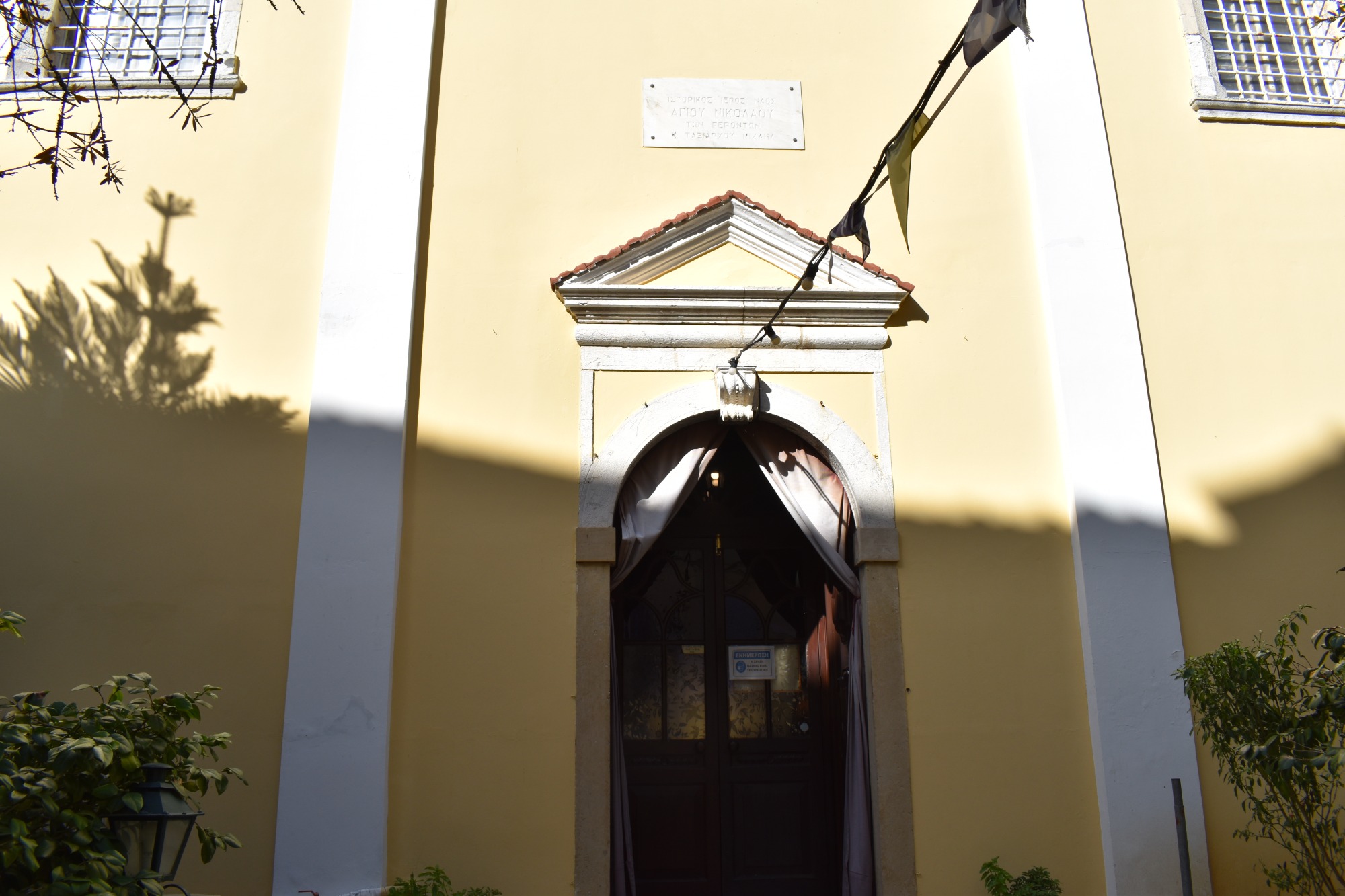 Μέσα από τις αρχοντικές αυλές του Καμπιέλο, με την κερκυραίικη χρωματική παλέτα να μας εντυπωσιάζει σε κάθε βήμα, τα μπλεγμένα σοκάκια καταλήγουν σε μια από τις σημαντικότερες εκκλησίες της περιοχής, τον Ιερό Ναό του Αγίου Νικολάου των Γερόντων, San Nicolo dei Vecchi. Πρόκειται για την εκκλησία όπου βαφτίστηκε ο Ιωάννης Καποδίστριας, μια μονόκλιτη βασιλική με ξύλινη κεραμοσκεπή και εξωνάρθηκα, που χτίστηκε στις αρχές του 16ου αιώνα. Υπήρξε ο καθεδρικός ναός των Μεγάλων Πρωτοπαπάδων μέχρι το έτος 1712 και χρωστά το όνομά του είτε στο ότι ήταν ο παλιότερος ναός Αγίου Νικολάου της συνοικίας, είτε γιατί συνεδρίαζε εκεί η Γεροντία. Στο εσωτερικό του, σώζεται ένα από τα παλαιότερα, σκαλιστά πέτρινα τέμπλα, όπως και η αγιογραφία της Αγίας Κέρκυρας, έργο του Εμμανουήλ Μπιουναλή Τζάννε.