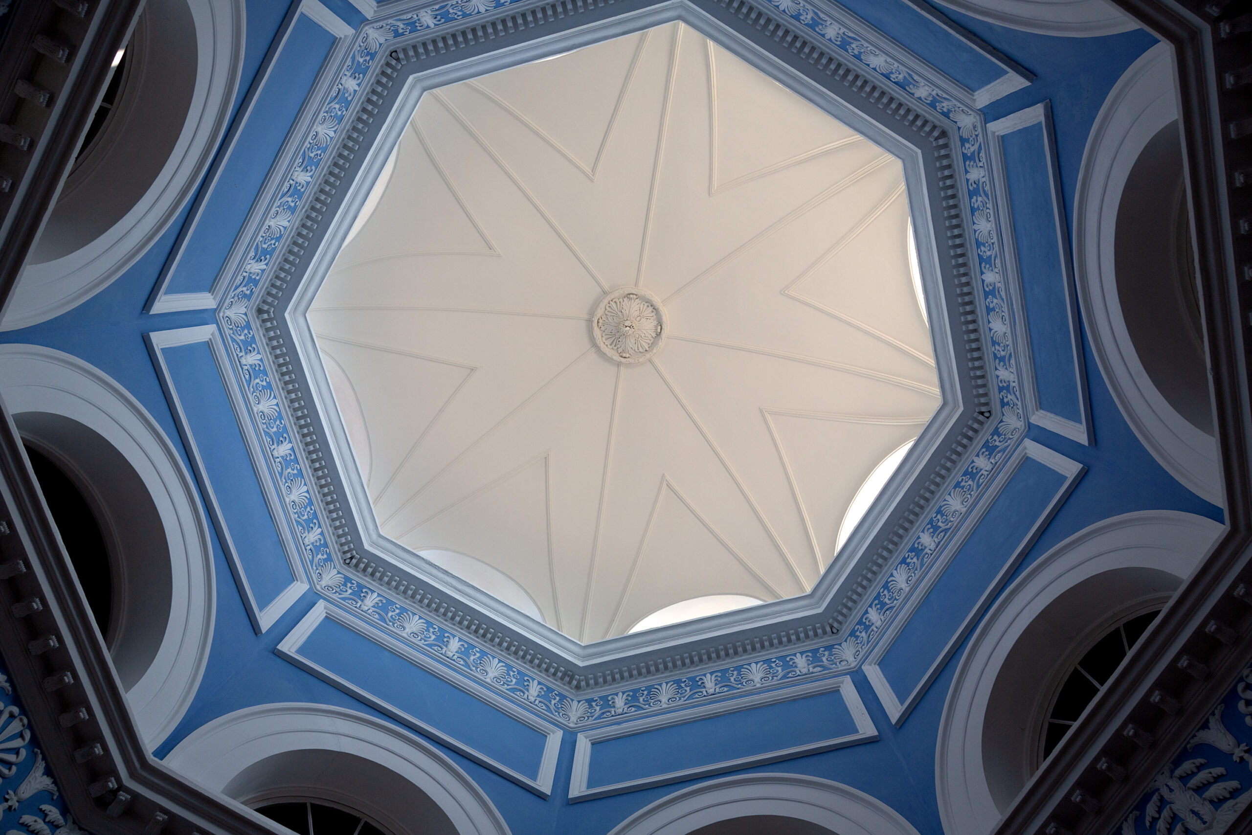 Στο ισόγειο κάποια από τα ευρύχωρα δωμάτια με την άπλετη θέα στους καταπράσινους κήπους αναβιώνουν το στυλ διακόσμησης της εποχής του Adam. Το γαλάζιο καθιστικό με τα πορτρέτα στους τοίχους και η φωτεινή, κίτρινη τραπεζαρία με την ξύλινη ροτόντα και το μαρμάρινο τζάκι, μας βοηθούν να σχηματίσουμε μια εικόνα της καθημερινότητας των ενοίκων του.
