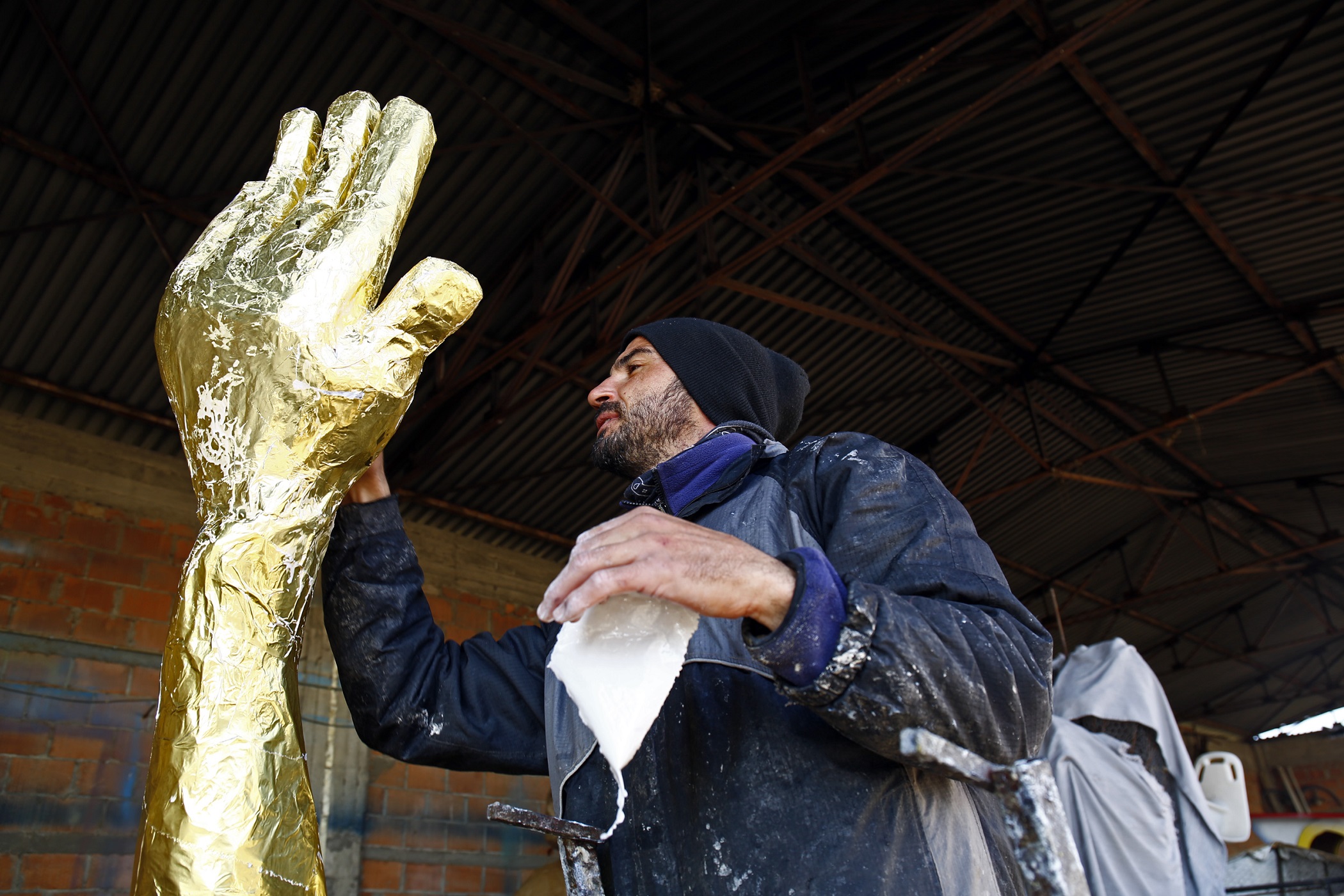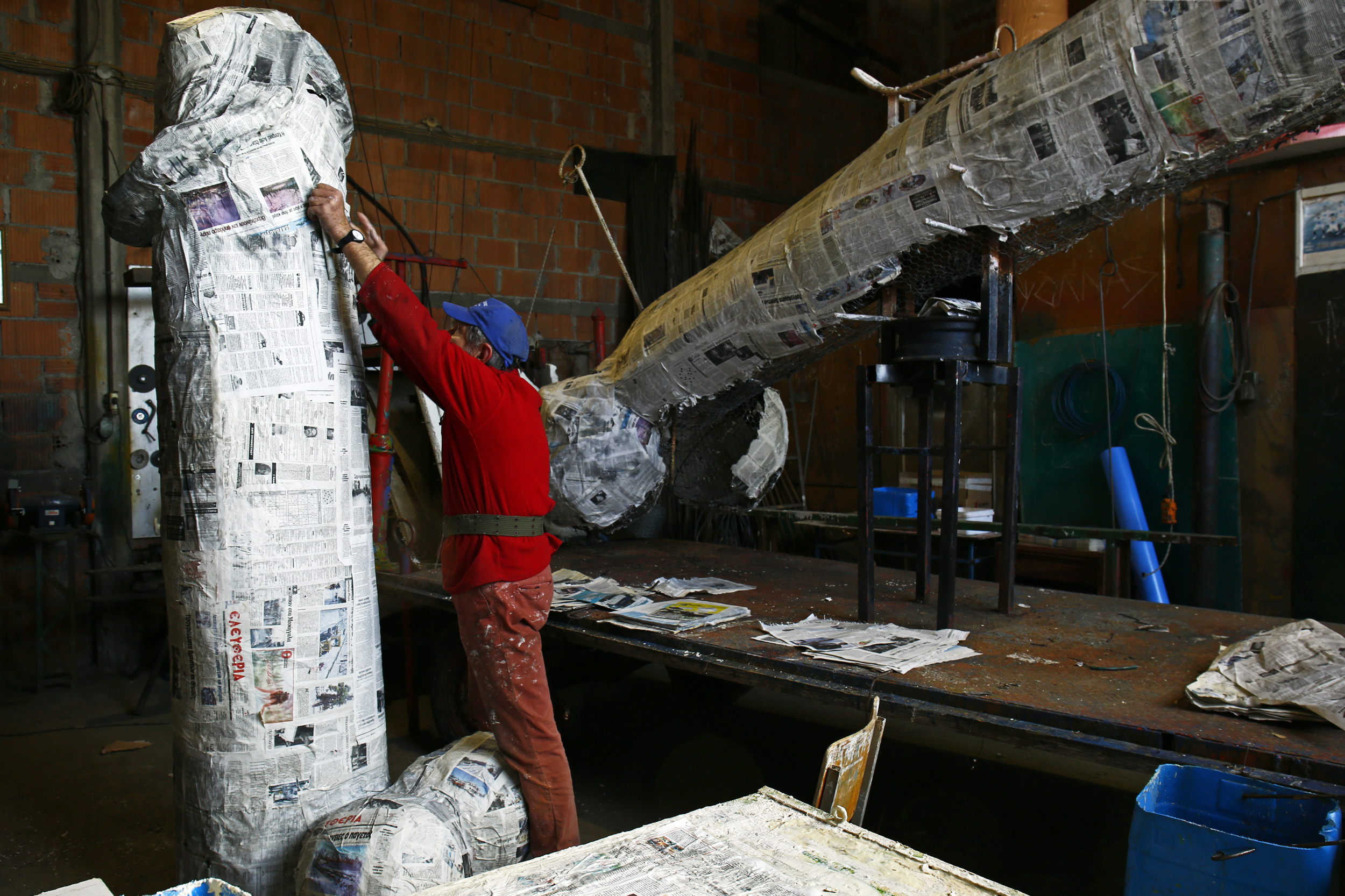 Ξεκινάει τη δουλειά από το τέλος του Νοέμβρη, για να την ολοκληρώσει το Φεβρουάριο. «Δίνει ο Δήμαρχος το θέμα κι εγώ σκέφτομαι τις ιδέες. Κάποιες φορές λένε κι άλλοι τι να κάνουμε, αλλά τα περισσότερα τα σκέφτομαι μόνος μου πια», δηλώνει. Σχεδιάζει πρώτα τις φιγούρες σε χαρτί; «Όχι, μόνο παλιά έκανα κάτι σε χαρτί. Τώρα τα σχεδιάζω στο μυαλό μου και τα φτιάχνω κατευθείαν». Οι δήμαρχοι του δίνουν ιδέες; «Μπάααα…», απαντά χαρακτηριστικά, «εγώ κομμώτρια, εγώ κουρέας, εγώ κατασκευαστής, εγώ τα πάντα. Όταν μου ανέθεσαν αυτό το έργο είχα αμφιβολίες. Μετά, σιγά-σιγά, με την πείρα, είδα ότι μπορούσα».