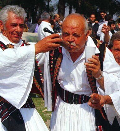Αυτονόητο είναι πως η μεταλαβιά με το μπουρανί συνοδεύεται με τόνους από τσίπουρο, ούζο και κρασί. Στο πέρα πέρα, στον Τύρναβο γίνεται η γιορτή, οπότε «φέρτε ούζο του Τυρνάβου». Ταυτόχρονα στήνεται και το γαϊτανάκι, που κι αυτό αποτελεί φαλλικό σύμβολο από μόνο του. Έχει 12 κορδέλες που συμβολίζουν τους 12 μήνες του χρόνου, οι οποίες μπλέκονται και ξεμπλέκονται στη διάρκεια της αέναης κίνησης της Γης γύρω από τον Ήλιο. Όσο μαγειρεύεται και καταναλώνεται το μπουρανί, αλλά και όσο στήνεται και χορεύεται το γαϊτανάκι, υπάρχει ζωντανή ορχήστρα (κλαρίνο, βιολί, κιθάρα, ντέφι), η οποία συνοδεύει το όλο γλέντι με τοπικούς σκοπούς.