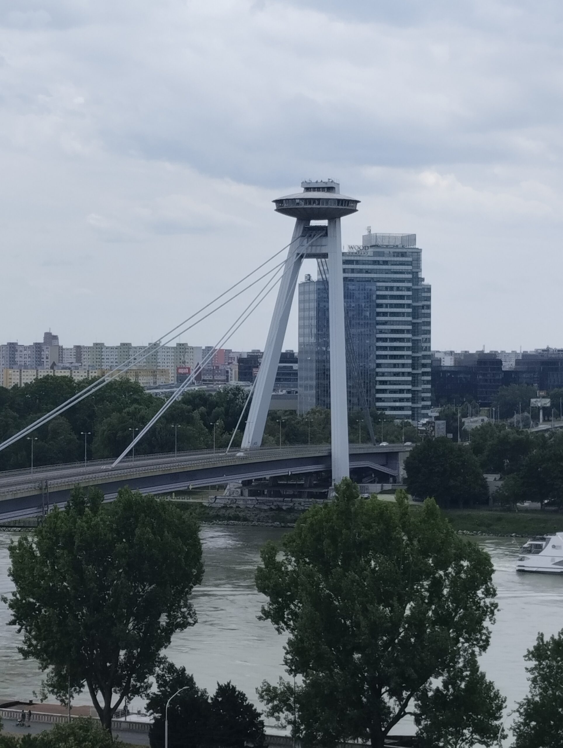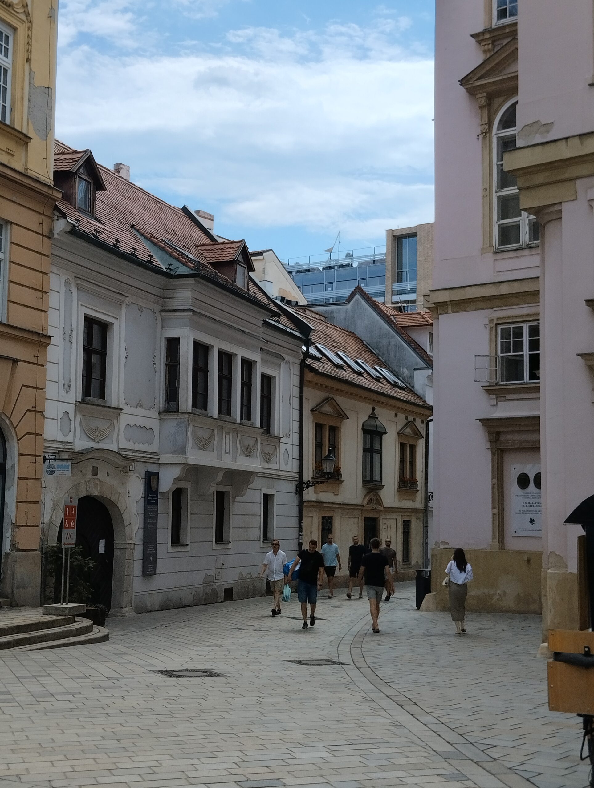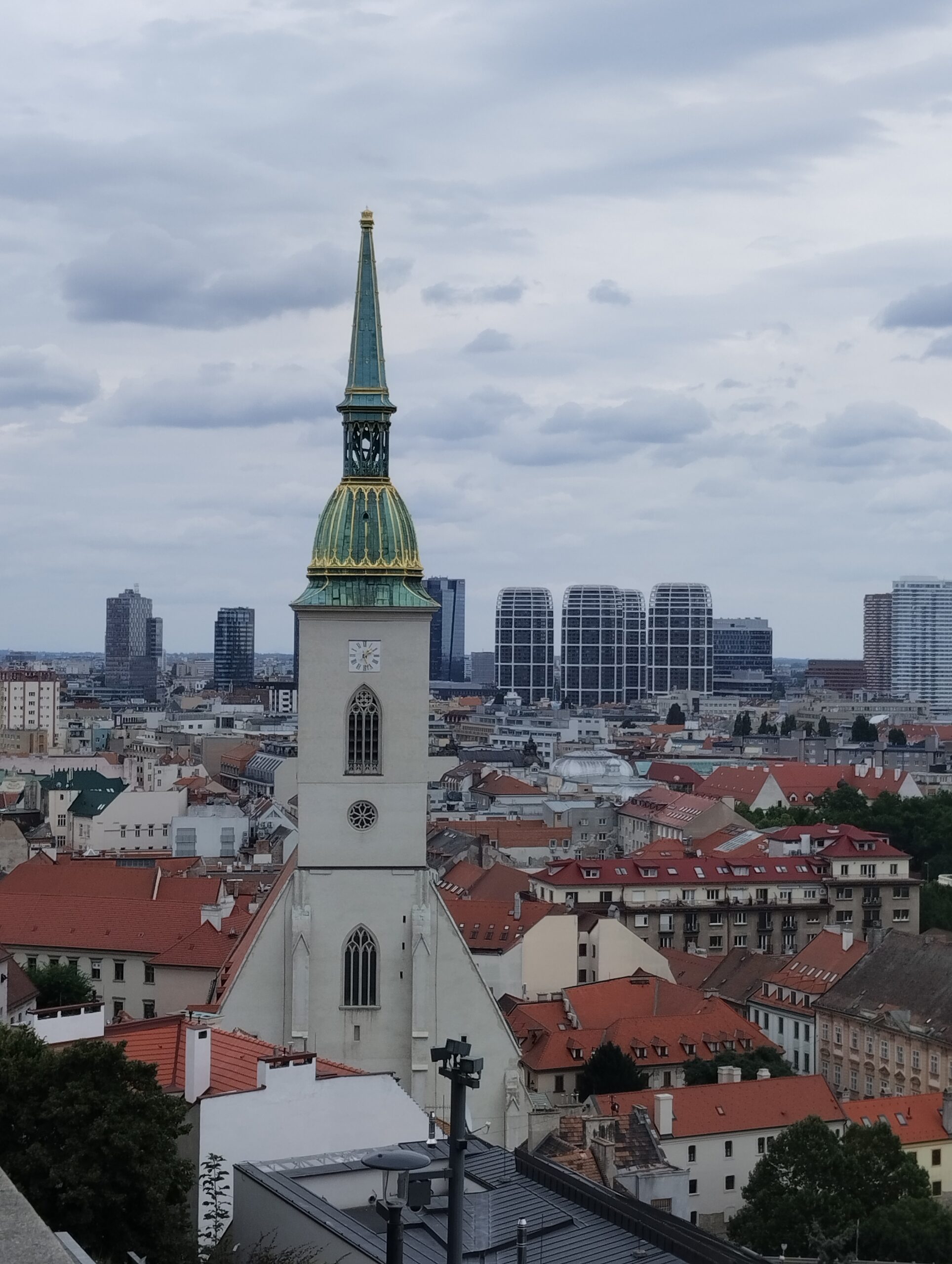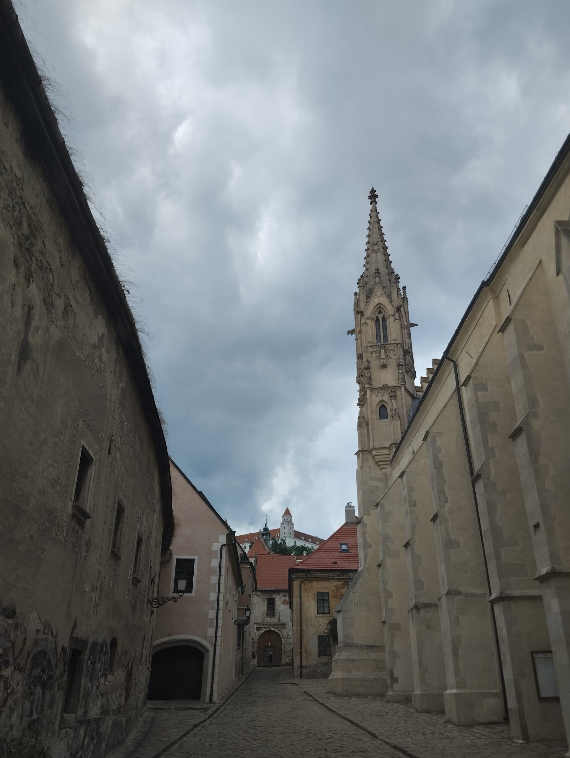 Η διαδρομή προς το ιστορικό κέντρο, αν και σύντομη, έχει ενδιαφέρον. Κατά μήκος του δρόμου, τα κυβόσχημα κτίρια της κομμουνιστικής περιόδου στέκουν δίπλα σε νεότερες κατασκευές, ενώ στο βάθος διακρίνεται η μεγάλη λεωφόρος που οδηγεί στη διάσημη γέφυρα με το εμβληματικό UFO Tower. Από εκεί, η θέα προς την παλιά πόλη είναι εντυπωσιακή, καθώς το ιστορικό της κομμάτι απλώνεται κάτω από το κάστρο, ενώ η σύγχρονη πλευρά της Μπρατισλάβα εκτείνεται στην απέναντι όχθη του Δούναβη, με τα χαρακτηριστικά χρωματιστά μπλοκ κατοικιών και τη φουτουριστική γέφυρα να κυριαρχούν στο τοπίο.