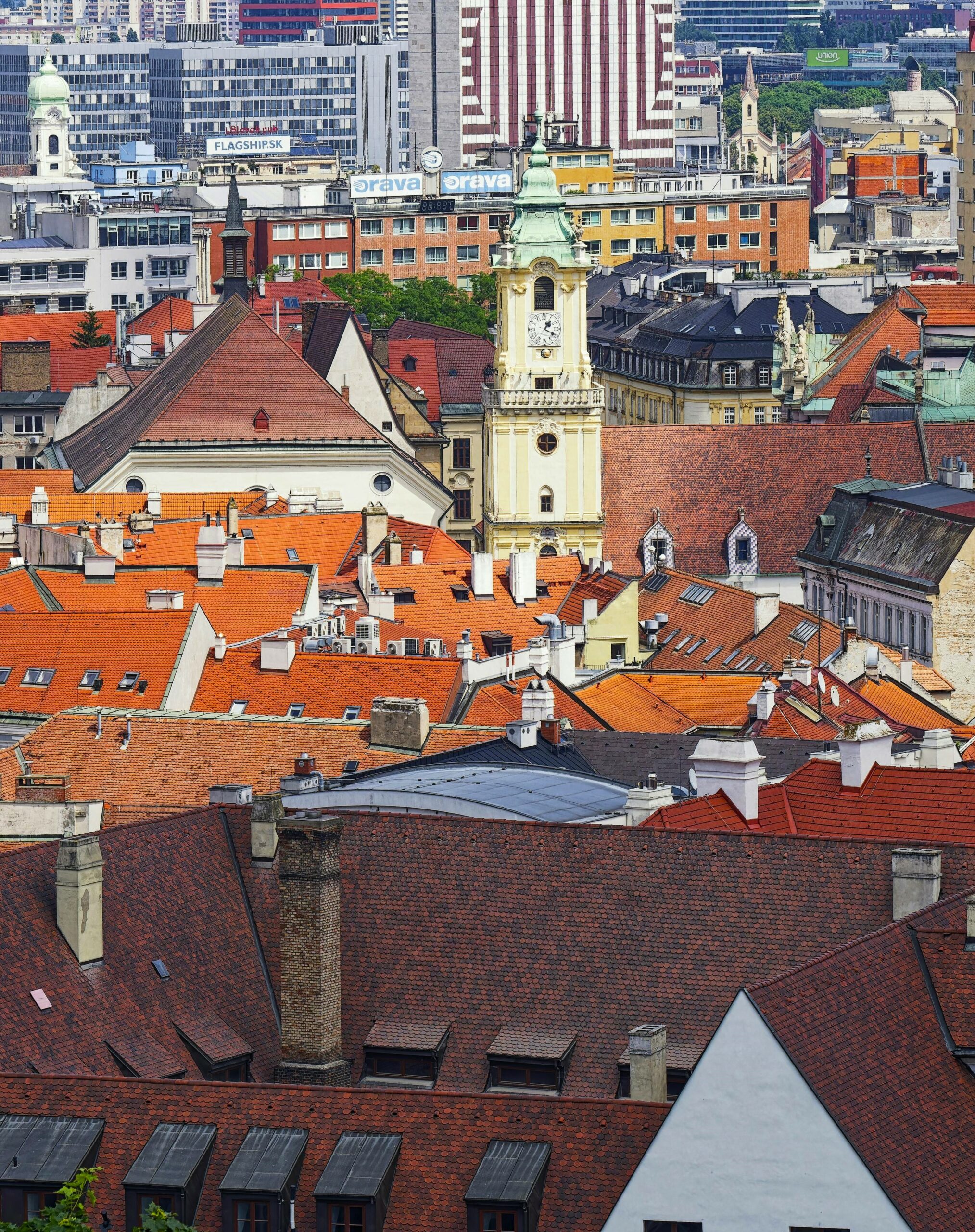 Μια ανάσα από τη Βιέννη και ίσως η μόνη ευρωπαϊκή πρωτεύουσα τόσο κοντά σε σύνορα, η Μπρατισλάβα αποτελεί αναμφίβολα μια πόλη με ξεχωριστή ταυτότητα. Στις τουριστικές καμπάνιες συχνά διαβάζουμε «Βιέννη και Μπρατισλάβα» ή «Βουδαπέστη και Μπρατισλάβα», χωρίς να γνωρίζουμε ότι η πρωτεύουσα της Σλοβακίας είναι ένα ιδιαίτερο αρχιτεκτονικό μωσαϊκό. Συνδυάζει τον κεντροευρωπαϊκό ρομαντισμό με τη μεταπολεμική, πιο αυστηρή αισθητική των σοσιαλιστικών κτισμάτων, δημιουργώντας ένα πρωτότυπο μείγμα που γοητεύει όσους αγαπούν την αντίθεση και την ιστορική συνέχεια.