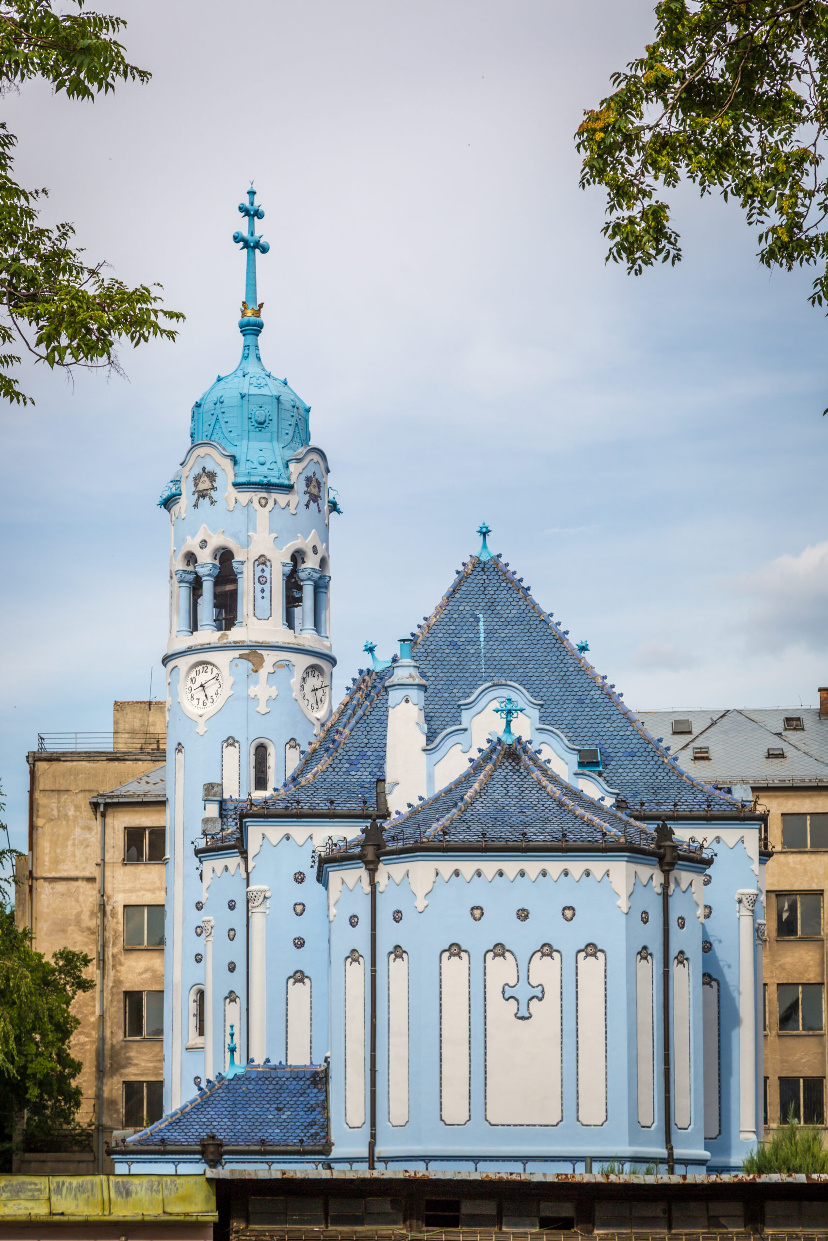Μερικά στενά πιο κάτω από το ιστορικό κέντρο της Μπρατισλάβα, ανάμεσα σε ξεθωριασμένες πολυκατοικίες της δεκαετίας του 1980, βρίσκεται η Μπλε Εκκλησία. Ίσως ένα από τα πιο ιδιόμορφα λατρευτικά κτίσματα της Ευρώπης -όχι τόσο για τον αρχιτεκτονικό της ρυθμό όσο για το χρώμα της. Μπλε παντού. Μπλε τοίχοι, μπλε καθίσματα, μπλε βιτρό, μπλε καμπαναριό. Ο ναός, που χτίστηκε το 1908 σε σχέδια του Ούγγρου αρχιτέκτονα Ödön Lechner, προοριζόταν αρχικά ως παρεκκλήσιο του σχολείου που ήταν αφιερωμένο στην Αγία Ελισάβετ της Ουγγαρίας. Το υπόλοιπο σχολικό συγκρότημα κατεδαφίστηκε αργότερα, αφήνοντας την εκκλησία να στέκει μόνη της, διατηρημένη στο ακέραιο. Το ενδιαφέρον είναι ότι ακριβώς απέναντι, τα μοντέρνα λευκά και πορτοκαλί κτίρια της δεκαετίας του 1960 και μια χαρακτηριστική γλυπτική σύνθεση της σοσιαλιστικής περιόδου δημιουργούν ένα έντονο αρχιτεκτονικό κοντράστ που κάνει το σημείο ακόμη πιο γοητευτικό.