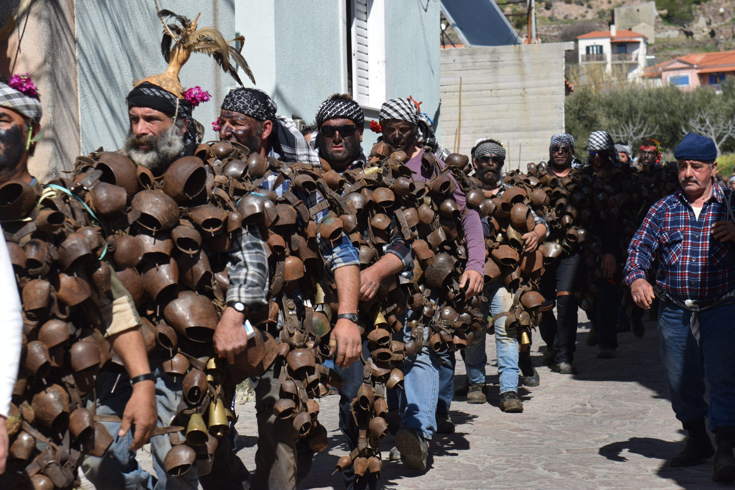 Φορώντας μαντήλια, χαϊμαλιά και χάντρες στο λαιμό, καθώς και πλουμιστές πολύχρωμες φτερωτές νεροκολοκύθες στα κεφάλια, οι «κουδουνάτοι» ξεχύνονται στα στενά σοκάκια του χωριού χτυπώντας δυνατά τα κουδούνια τους, ώστε να τους ακούσει η γη και να «ξυπνήσει», ενώ με τις «κουτσκούδες» (φαλλόμορφα ξύλα) που κρατούν στα χέρια, χτυπούν δυνατά το έδαφος για να καρπίσει.