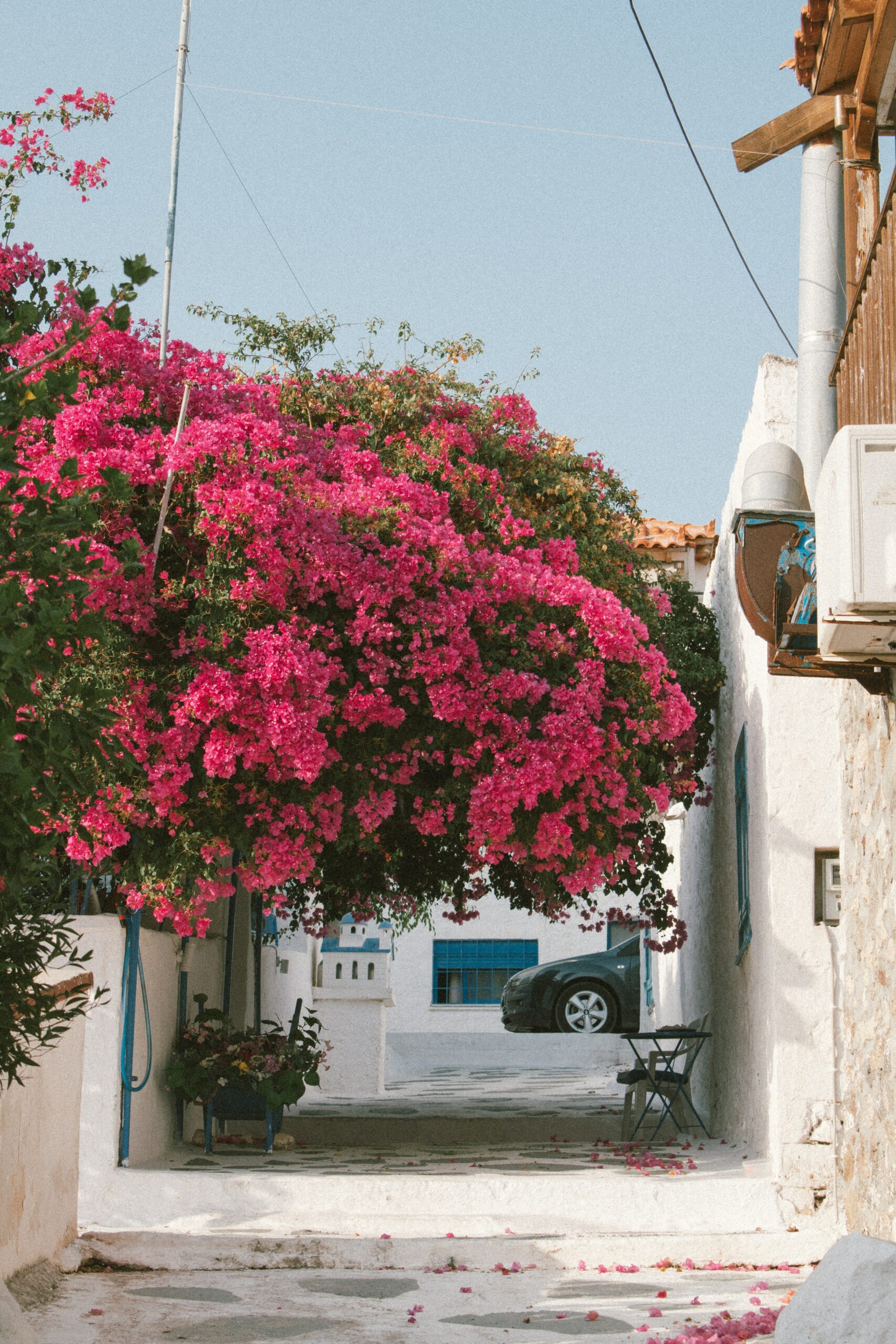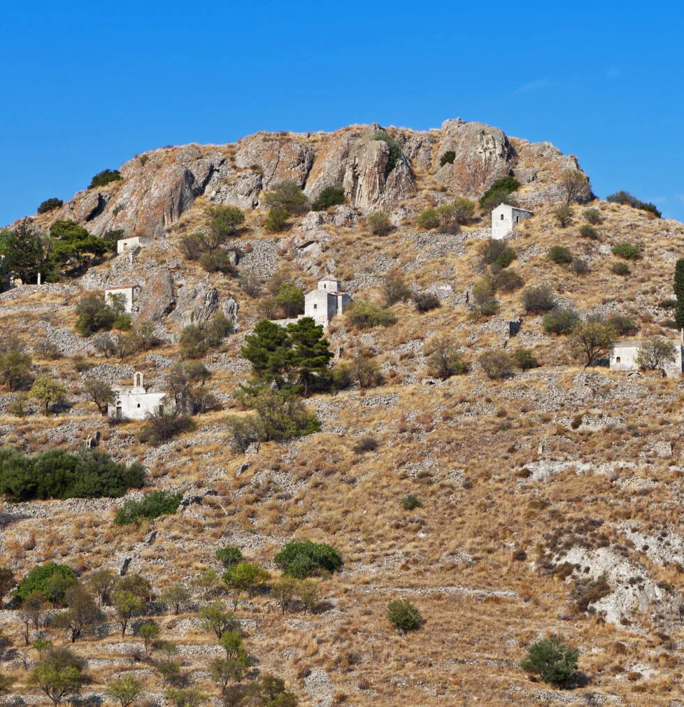 Το πρώτο που θα αντικρίσετε καθώς κατεβαίνετε από το πλοίο είναι η λευκή εκκλησία του Αγίου Νικολάου, προστάτη των θαλασσινών. Τα μόνιππα αμαξάκια με τα άλογα περιμένουν στη σειρά για μια βόλτα -που δύσκολα θα την αρνηθείτε στα παιδιά. Διαρκεί 25 λεπτά και το αμαξάκι διατρέχει τον παραλιακό και ύστερα τους δρόμους με τις φιστικιές, τους κήπους και τα παλιά αρχοντικά σπίτια.
