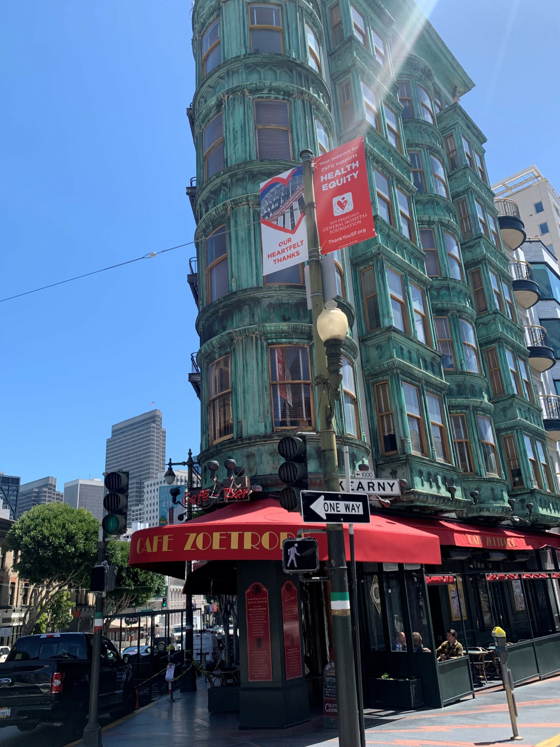 Σε αυτό το πανέμορφο πράσινο κτήριο, κεντρικό τοπόσημο της πόλης με το όνομα Sentinel, έχει βρει καταφύγιο η οικογένεια Κόπολα, που το διευθύνει, σερβίροντας πιάτα με πρώτες ύλες από τα κτήματά της σε Ιταλία και Καλιφόρνια αλλά και το ωραίο, κόκκινο της κρασί. Στις γωνιές δεσπόζουν διάφορα αντικείμενα από ιστορικές ταινίες όπως το ‘Δράκουλα’ που πλάνα του γυρίστηκαν εδώ ενώ μια γωνιά έχει μείνει κενή, κλεισμένη με σκοινί, σε περίπτωση που καταφθάσει απροειδοποίητα κάποιο μέλος από τους Κόπολα.