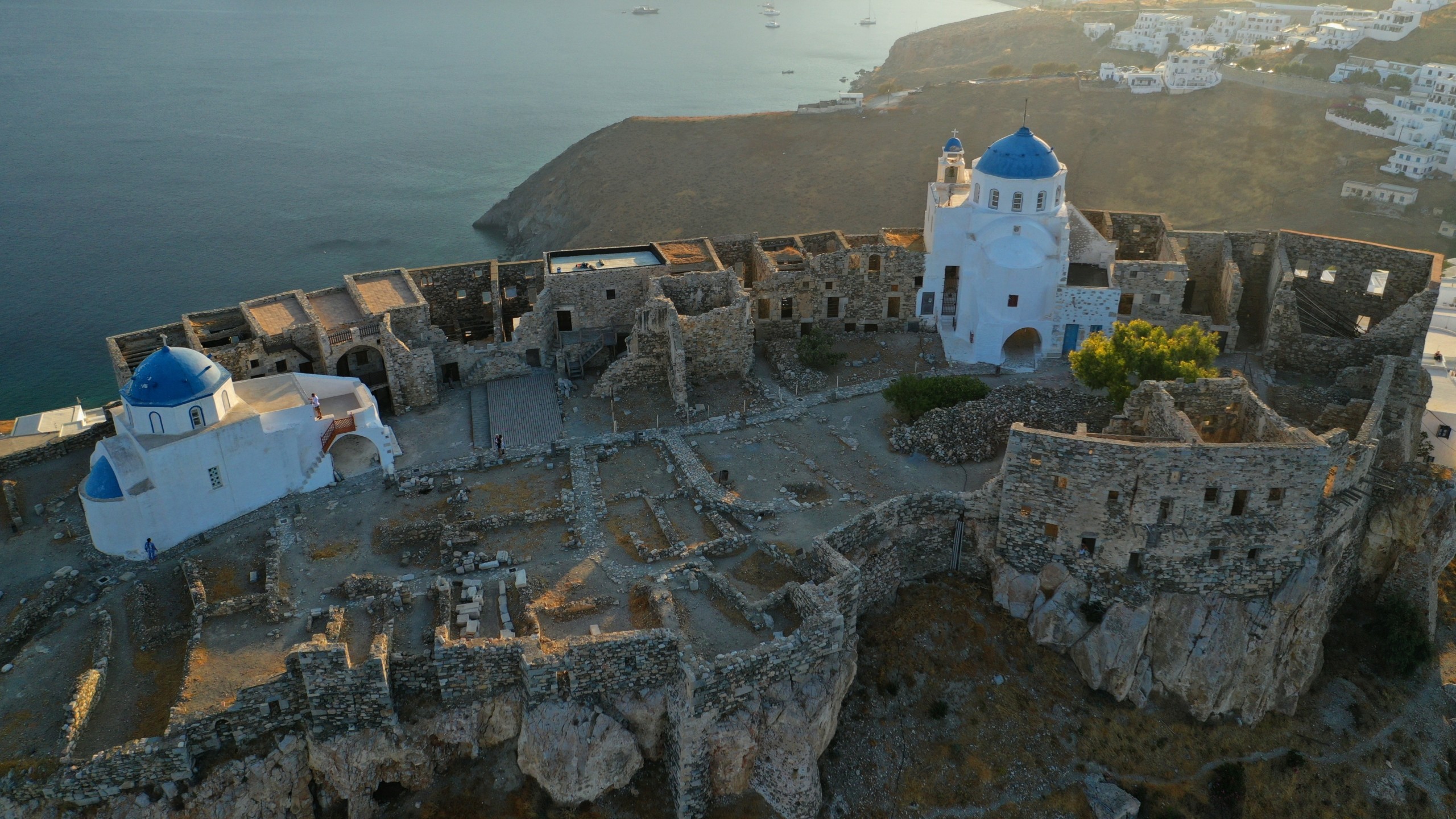 Μέχρι και το 1953, κάτοικοι έμεναν μέσα στο Κάστρο, αν και πλέον δεν υπήρχε η ανάγκη να παρατηρούν από τα μικρά παράθυρα των σπιτιών τους τη θάλασσα για το φόβο πειρατών. Η είσοδος στο Κάστρο, στο οποίο έχουν γίνει κάποιες παρεμβάσεις συντήρησης -αλλά θέλει ακόμα δουλειά- είναι ελεύθερη. Αυτό σημαίνει ότι καθ’ όλη τη διάρκεια της μέρας, θα βλέπετε Έλληνες και ξένους επισκέπτες να παίρνουν το ανηφορικό σοκάκι προς το Κάστρο. Ανάμεσα στα ερείπια και τις πέτρες του Κάστρου, ξεχωρίζουν οι δύο λευκές εκκλησίες με γαλάζιο τρούλο, ο Άγιος Γεώργιος, χτισμένος το 1790 και η Παναγιά του Κάστρου χτισμένη στα μέσα του 19ου αιώνα.