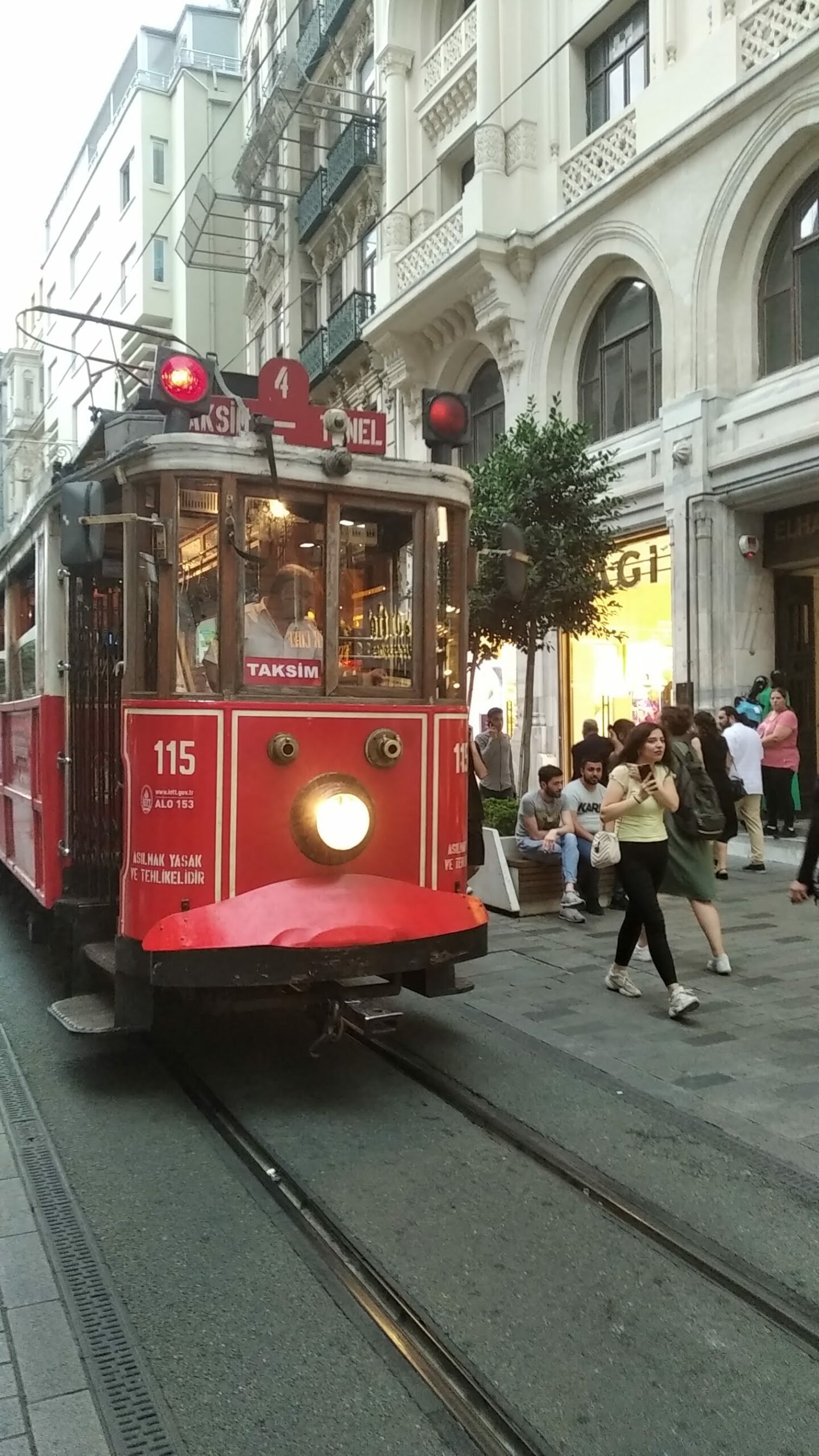 Μοναδικός συνοδοιπόρος στην βόλτα σας στο Πέρα το κόκκινο νοσταλγικό βαγονάκι που κάνει την μικρότερη διαδρομή τρένου στον κόσμο με σχεδόν ένα χιλιόμετρο. Με το που το ακούσετε να σφυρίζει, απλά κάντε στην άκρη και απολαύστε το θέαμα του μικρού βαγονιού να διασχίζει ήρεμα το πυκνό πλήθος. Αν και το σημερινό τραμ δεν έχει καμία σχέση με το ιστορικό τραμ της Κωνσταντινούπολης, αποτελεί αγαπητή (και επιτυχημένη) αναβίωση ενός ιστορικού μέσου που έχει αναβαθμίσει το τοπίο και την εικόνα του Πέρα.