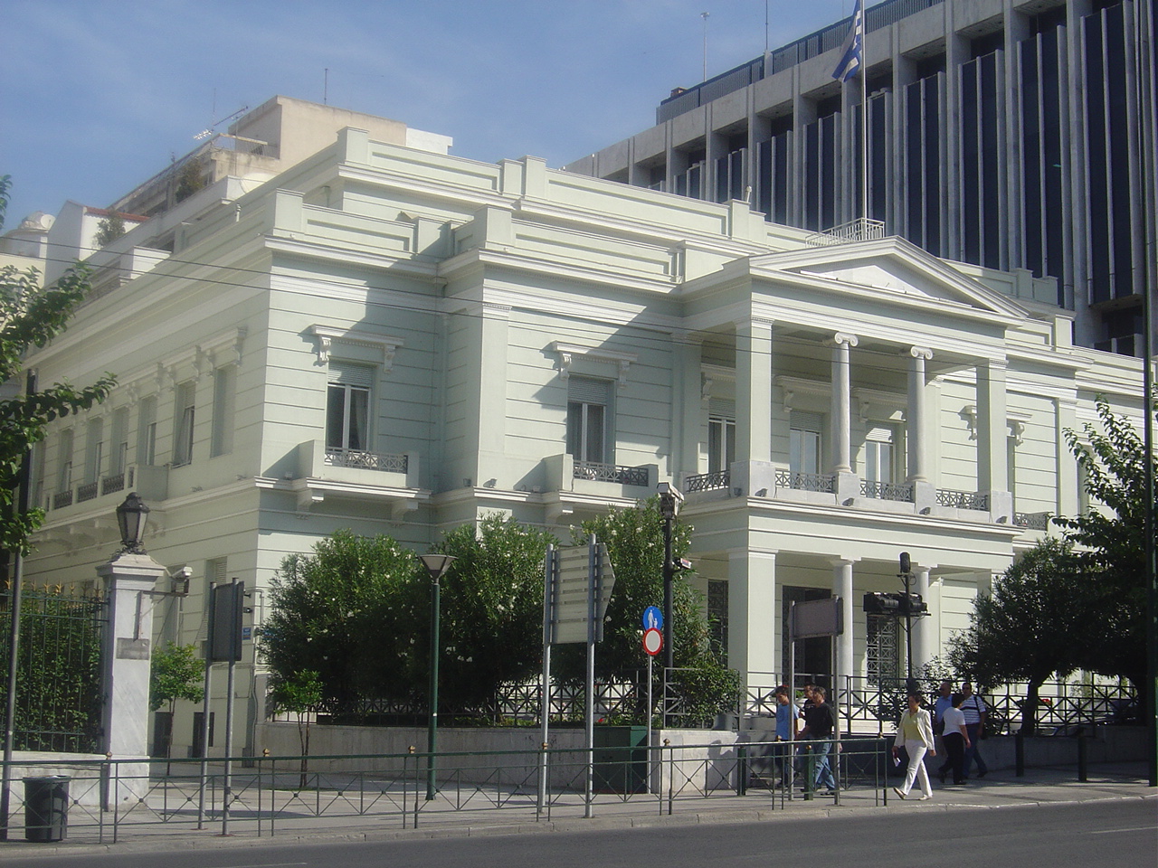 Το κτήριο στο νούμερο 1 της Βασιλίσσης Σοφίας, εκεί όπου βρίσκεται σήμερα το Υπουργείο Εξωτερικών, είχε χτιστεί για τον επιχειρηματία και ευεργέτη Ανδρέα Συγγρό μεταξύ 1872-1873. Τη μελέτη έκανε ο γνωστός αρχιτέκτονας Έρνεστ Τσίλερ. Όταν πέθανε ο Συγγρός, η χήρα του Ιφιγένεια Μαυροκορδάτου-Συγγρού το κληροδότησε στο κράτος με μυστική διαθήκη και τον όρο να το χρησιμοποιούν ως «κατάστημα του Υπουργείου Εξωτερικών». Το 1976 το κτίσμα κηρύχθηκε ως προστατευόμενο έργο τέχνης από το Υπουργείο Πολιτισμού.