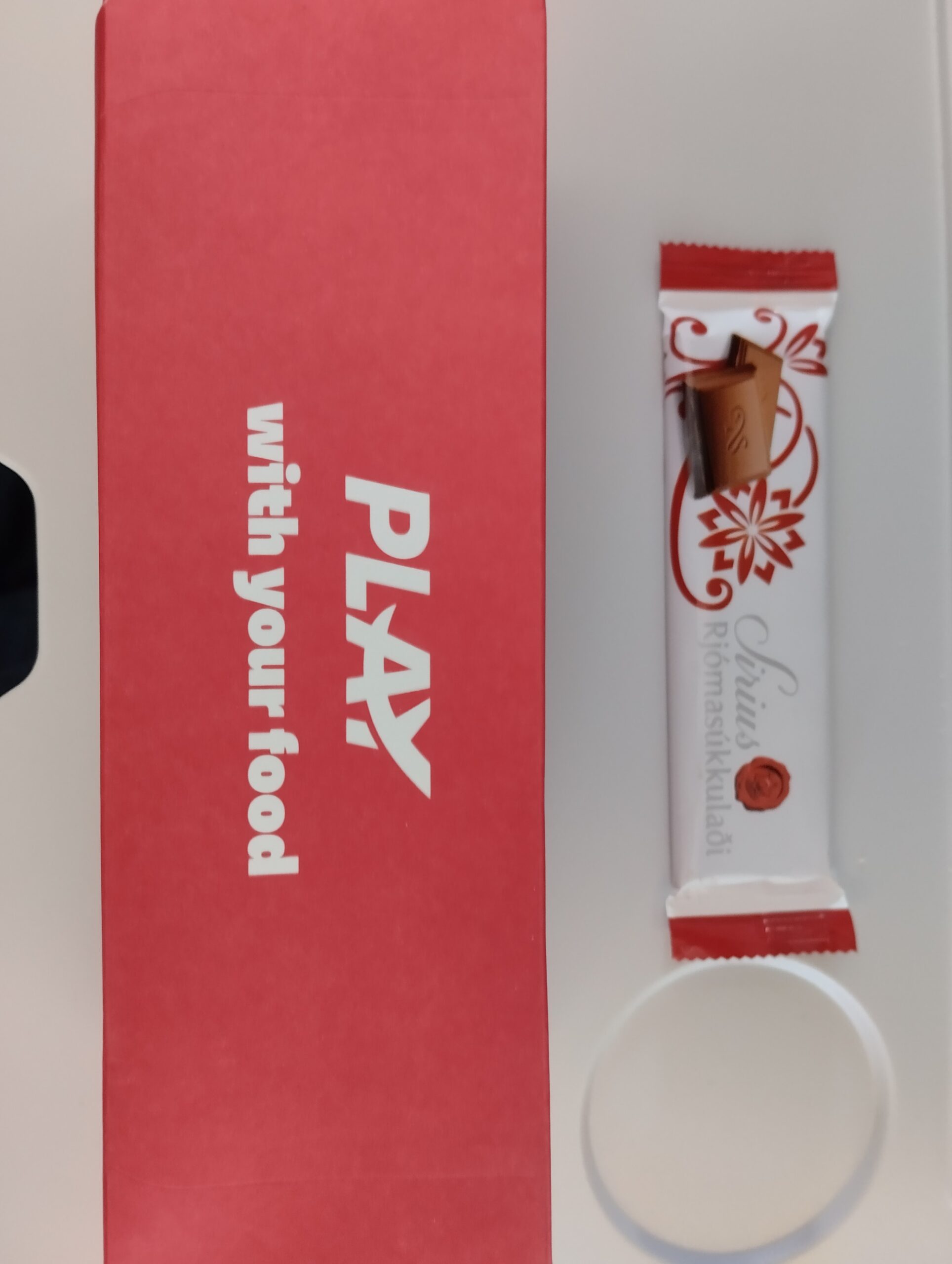Όσον αφορά τα σνακ και τα διάφορα μικρογεύματα, όπως και στις περισσότερες low cost αεροπορικές, το φαγητό στην PLAY δεν παρέχεται δωρεάν με αποτέλεσμα να πρέπει να παραγγείλετε από ξεχωριστό κατάλογο τι προτιμάτε να φάτε ή να πιείτε. Αν, βέβαια, θέλετε να πάρετε μία γρήγορη γεύση Ισλανδίας πριν ακόμα πατήσετε το πόδι σας στη χώρα, μπορείτε να ζητήσετε μια από τις διάφορες μάρκες ισλανδικής σοκολάτας που υπάρχουν διαθέσιμες στον κατάλογο και μέσα σε 10-15’ να έχετε έτοιμη μία μπαγκέτα, μια σοκολάτα και μία Pepsi ακριβώς μπροστά σας (συνολικό κόστος από 2€ έως 12€ ανάλογα με το τι προϊόντα επιλέγετε). Σε κάθε περίπτωση, το προσωπικό της PLAY με το πάτημα του ειδικού κουμπιού ακριβώς από πάνω σας είναι πρόθυμο να σας βοηθήσει.