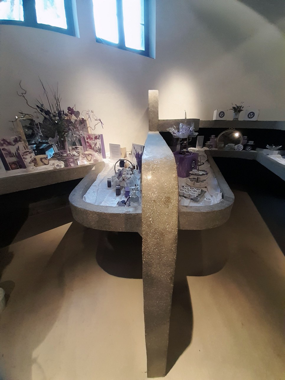 Στα μικρά πωλητήρια που λειτουργούν στο Πολιτιστικό Κέντρο «Γιώργος Σεφέρης», θα βρείτε προϊόντα από λεβάντα, που παράγουν γυναίκες του χωριού.