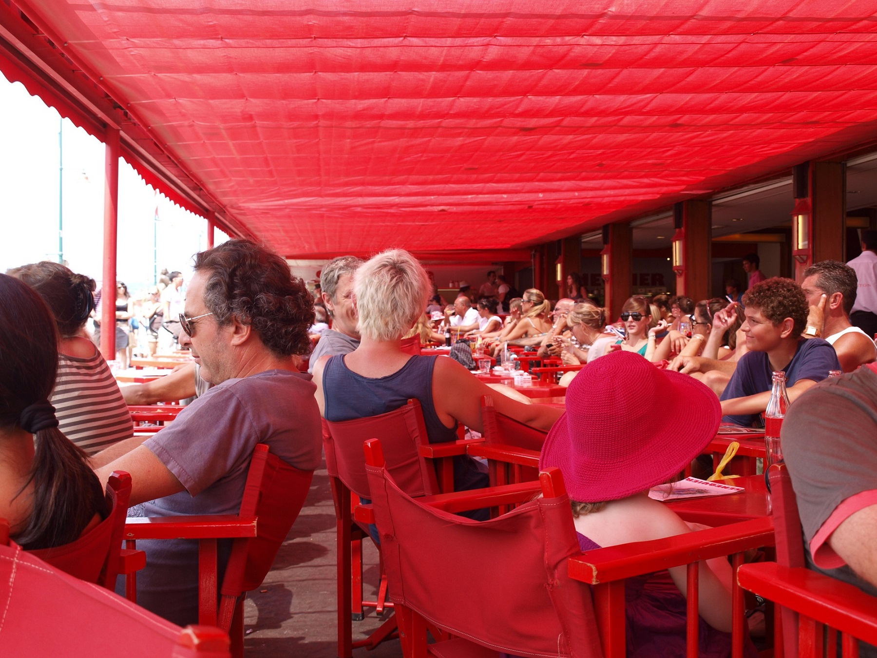 Στο πλατύ πεζοδρόμιο, στην άκρη του νερού, θα βρείτε και το διαχρονικό «Café Senequier», με τις χαρακτηριστικές τέντες και τα έντονα κόκκινα χρώματα. Μη διστάσετε να καθίσετε στα απλωμένα τραπεζάκια του και να απολαύσετε την περατζάδα στο «κέντρο του κόσμου», γευόμενοι παράλληλα τη διάσημη tropézienne: τάρτα με ιδιαίτερη κίτρινη κρέμα patisserie, η οποία συνοδεύεται προαιρετικά από βατόμουρα. Μια φανταστική γλυκιά λιχουδιά.