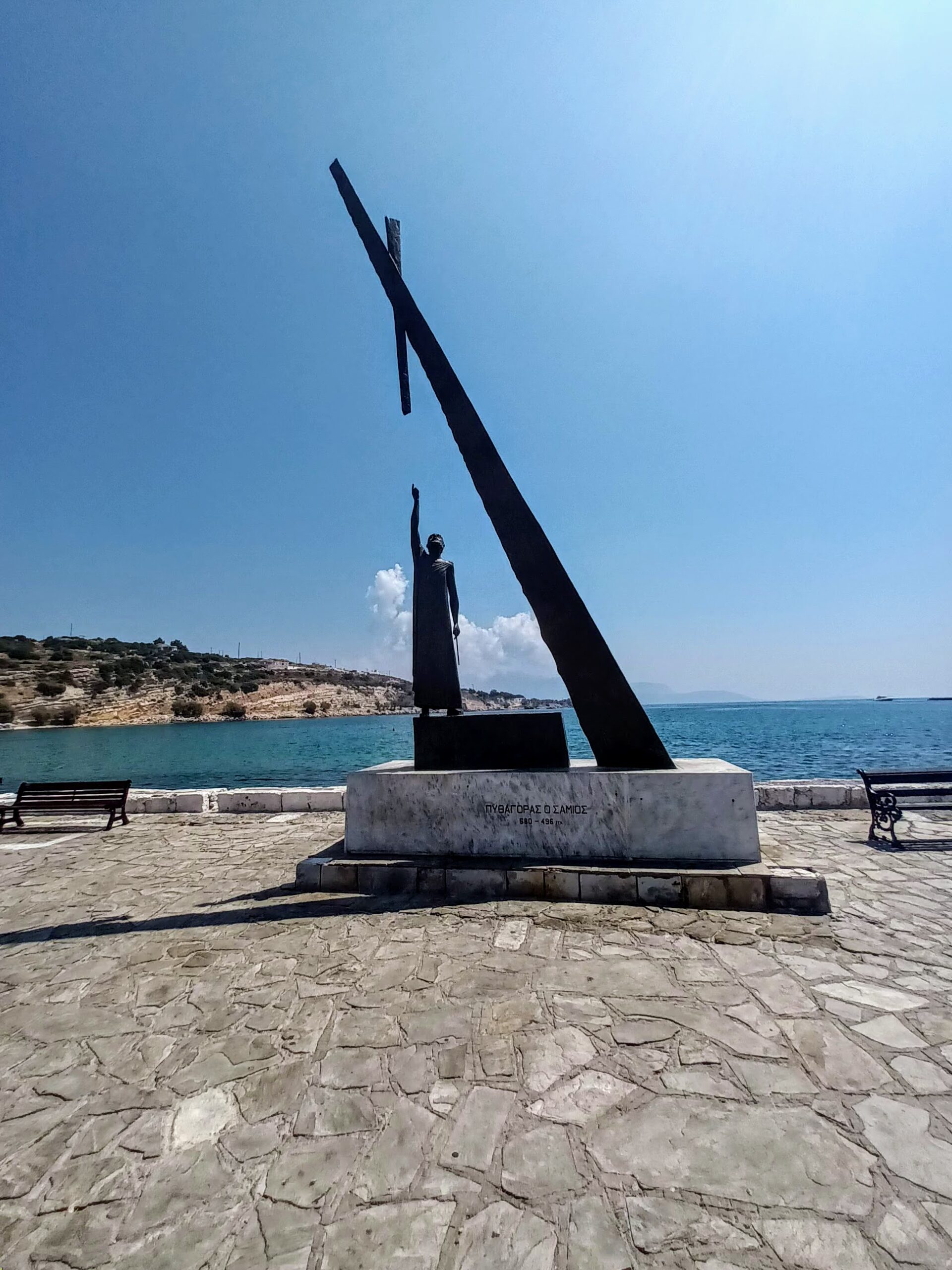 Εκτός από τον αστρονόμο Αρίσταρχο (310-230 πΧ), που πρώτος είχε μιλήσει για το ηλιοκεντρικό σύστημα στο οποίο ανήκει η γη, στο νησί γεννήθηκε και έζησε ο μεγάλος φιλόσοφος και μαθηματικός Πυθαγόρας (580-496 πΧ), γνωστός και για το ομώνυμο γεωμετρικό θεώρημα που διδάσκεται παγκοσμίως. Στο γραφικό λιμανάκι του Πυθαγόρειου, το πάλαι ποτέ μικρό ψαροχώρι που αποτελεί σήμερα τον πλέον δημοφιλή προορισμό στην Σάμο, δεσπόζει επιβλητικός ο αδριάντας του, να «αναλύει» στην αιωνιότητα το θεώρημά του.