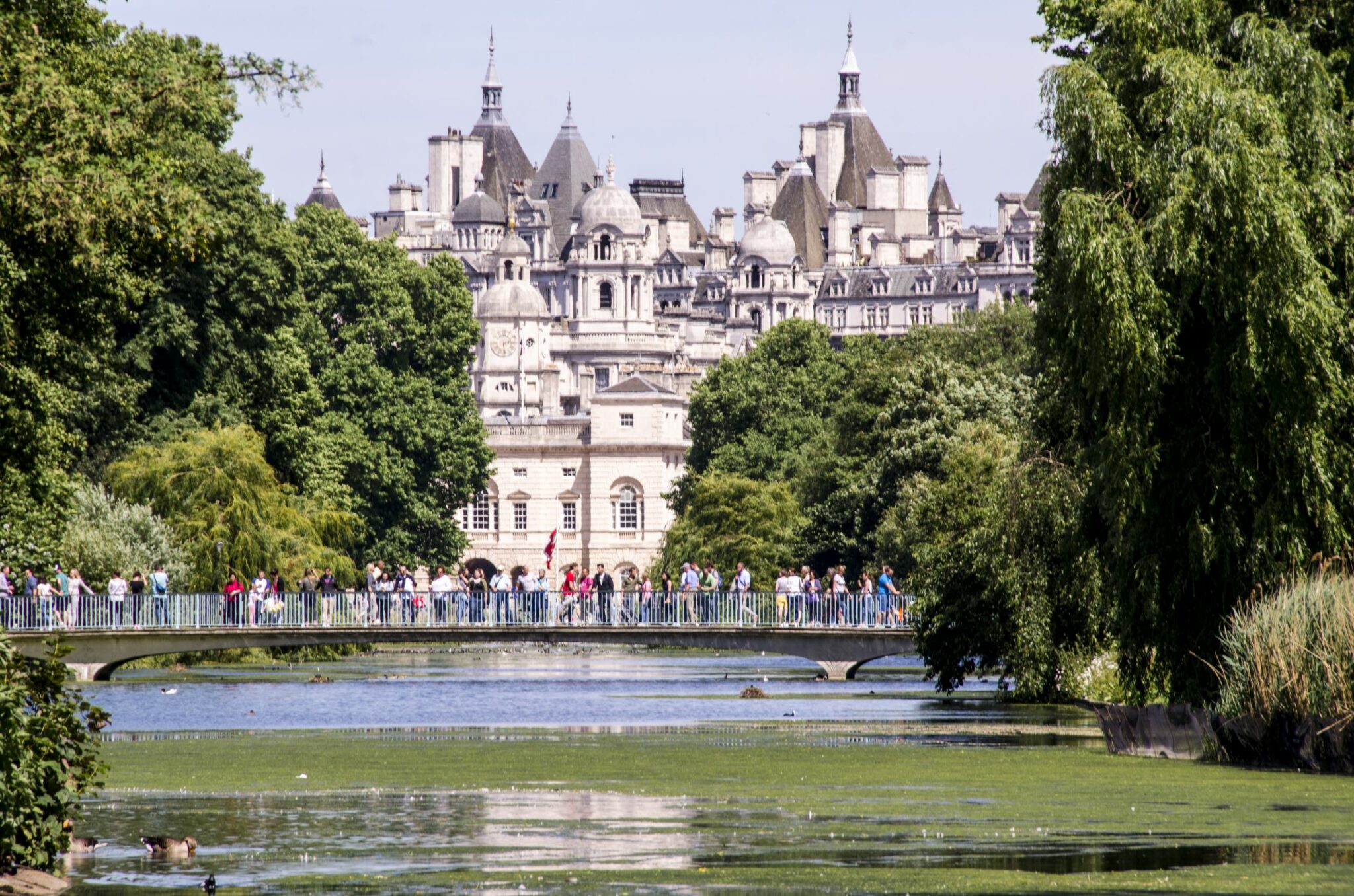 Προς τα δυτικά, πίσω από τη λίμνη διακρίνεται το μεγαλόπρεπο μνημείο της βασίλισσας Βικτώριας και το παλάτι του Buckingham, ενώ προς τα ανατολικά οι παραμυθένιοι πύργου του συγκροτήματος Foreign, Commonwealth and Development Office επισκιάζονται από τον γιγάντιο τροχό του London Eye. Είναι το πιο φωτογενές αλλά και πολυσύχναστο σημείο του πάρκου.