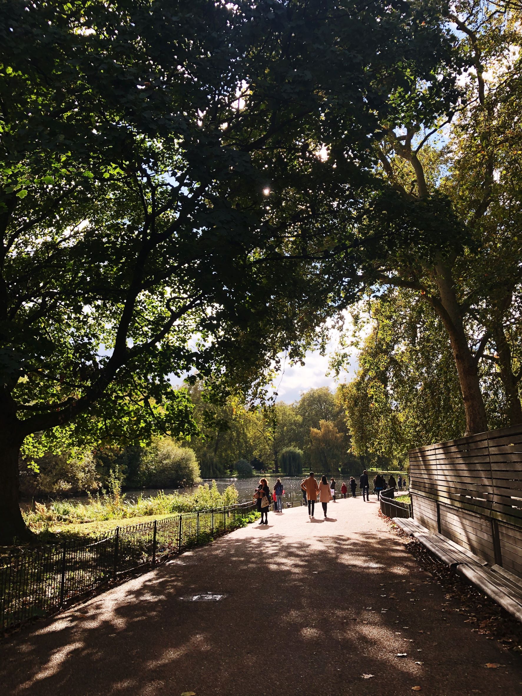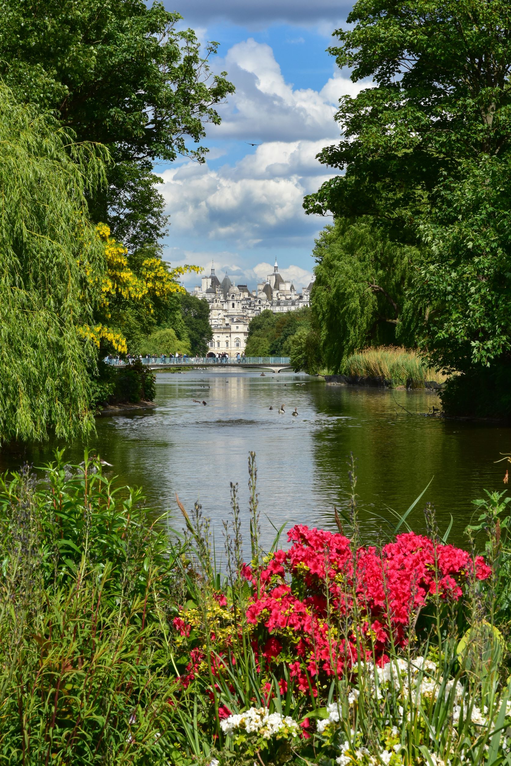 Προς τα δυτικά, πίσω από τη λίμνη διακρίνεται το μεγαλόπρεπο μνημείο της βασίλισσας Βικτώριας και το παλάτι του Buckingham, ενώ προς τα ανατολικά οι παραμυθένιοι πύργου του συγκροτήματος Foreign, Commonwealth and Development Office επισκιάζονται από τον γιγάντιο τροχό του London Eye. Είναι το πιο φωτογενές αλλά και πολυσύχναστο σημείο του πάρκου.