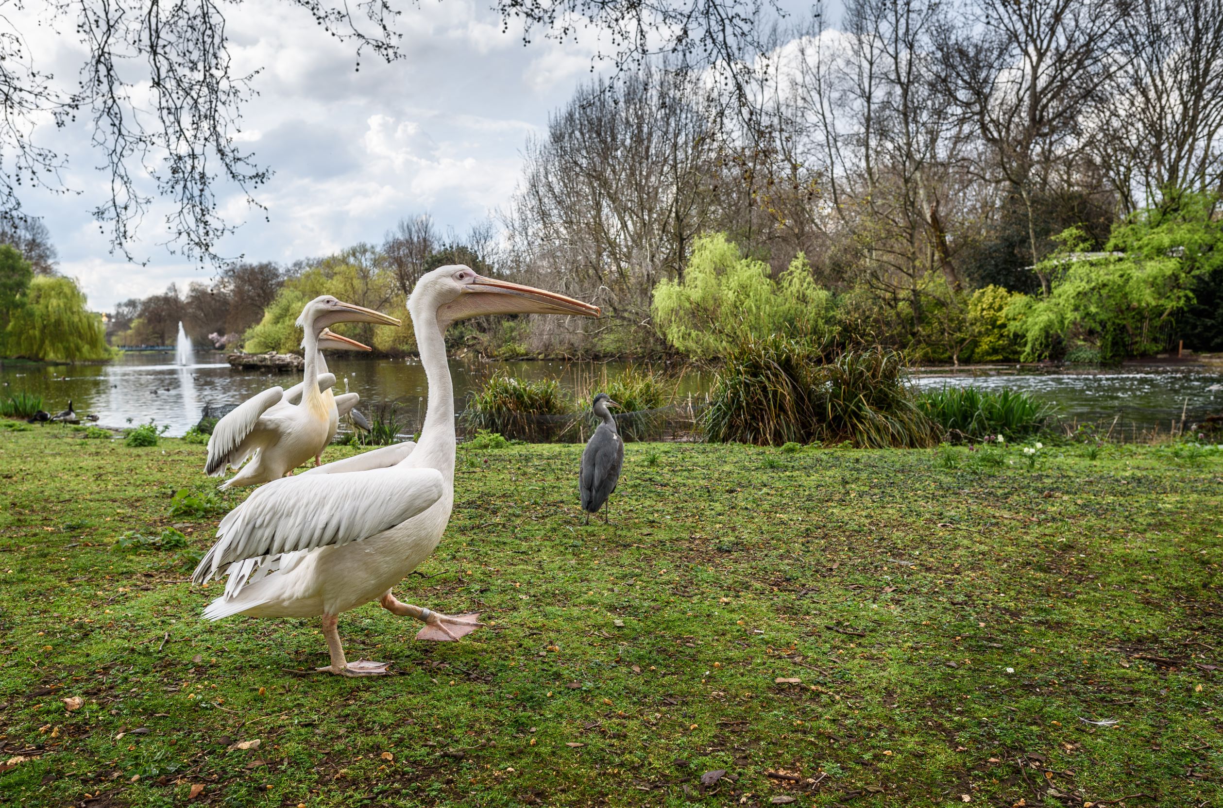 Σ΄αυτή την όμορφη λίμνη με το μακρόστενο σχήμα υπάρχει κι ένα μικρό νησάκι, το Duck Island. Όπως υπονοεί το όνομά του, καταλαμβάνεται από δεκάδες πάπιες που πρόθυμα το μοιράζονται με τις χήνες, που επίσης αφθονούν στο πάρκο. Οι πάπιες ζουν εδώ από το 1837, όταν η Ορνιθολογική Εταιρία του Λονδίνου δώρισε μερικά πτηνά στο πάρκο, χτίζοντας μάλιστα κι ένα εξοχικό σπιτάκι δίπλα στη λίμνη για τον φύλακα των πουλιών του πάρκου. Το πανέμορφο αυτό σπιτάκι, το Duck Island Cottage, παραμένει και συμπληρώνει το ειδυλλιακό σκηνικό, μαζί με το σιντριβάνι και τα νούφαρα στο νότιο άκρο της λίμνης. Οι πιο διάσημοι κάτοικοι του πάρκου ωστόσο, είναι σίγουρα οι πελεκάνοι, έξι συνολικά σήμερα, που αρμονικά συμβιώνουν με τα εκατομμύρια των ετήσιων επισκεπτών του πάρκου. Από το 1664, όταν τους παρουσίασε ως δώρο ο Ρώσσος πρέσβης, 40 πελεκάνοι έχουν ζήσει στο St James’s park. Μπορείτε να τους θαυμάσετε να περνούν την περισσότερη ώρα τους κοντά στη λίμνη, αλλά και την ώρα του ταΐσματος με φρέσκα ψάρια, καθημερινά μεταξύ 14:30 και 15:00, κοντά στο Duck Island Cottage όπου θα βρείτε και πληροφορίες σχετικά με τις συνήθειές τους και τις συνθήκες διαβίωσής τους στο πάρκο. Και μη σας κάνει εντύπωση αν ακούσετε τον φροντιστή τους να τους φωνάζει με κάποιο όνομα, φυσικά και έχει ο καθένας το όνομά του.