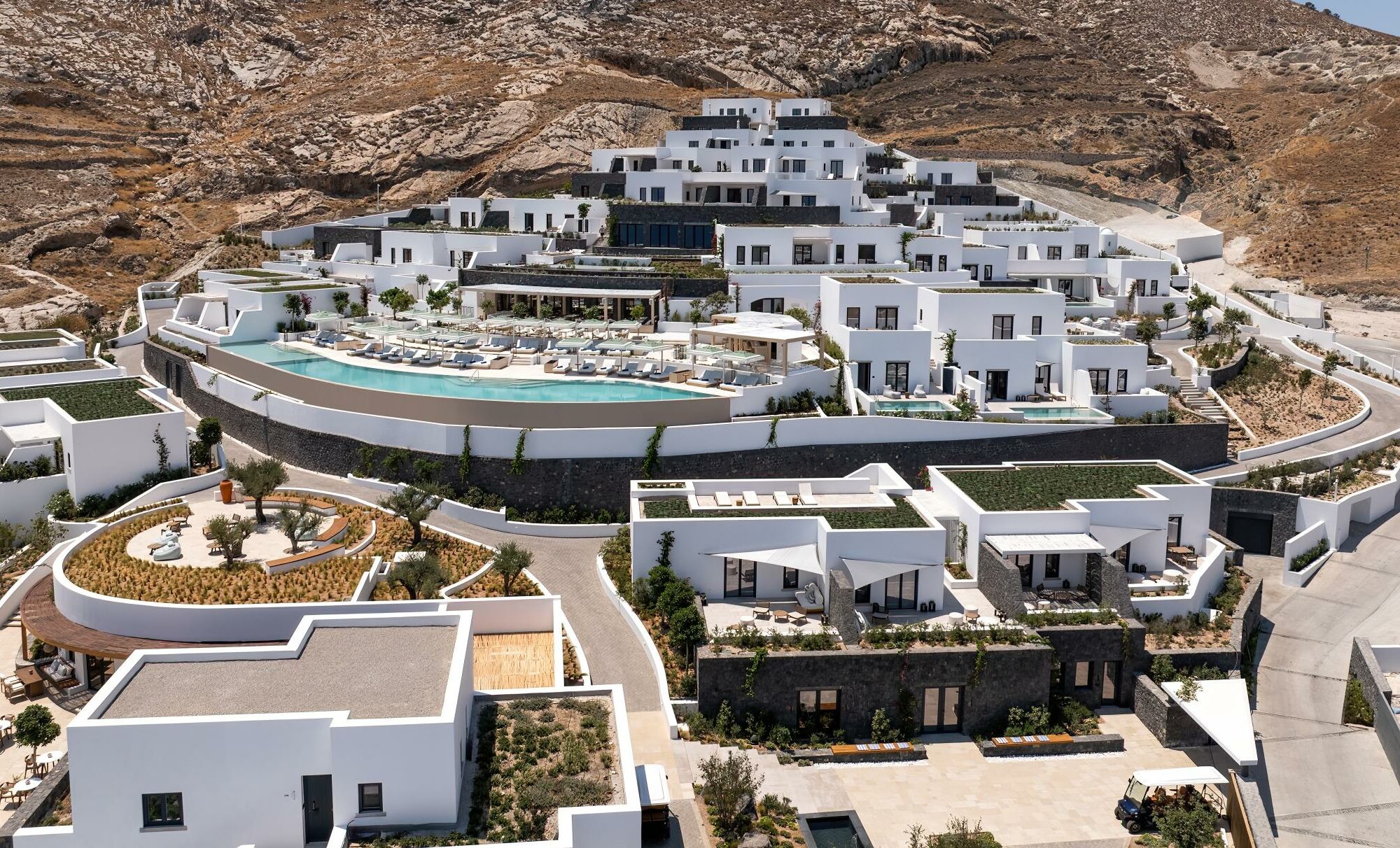 Σχεδιασμένο για να συνδέει αρμονικά τους εσωτερικούς και τους εξωτερικούς χώρους, κάθε δωμάτιο διαθέτει ιδιωτική βεράντα με θέα στην πισίνα ή στο Αιγαίο Πέλαγος, ενώ σχεδόν το ένα τρίτο των επιλογών διαμονής προσφέρει δική του ιδιωτική πισίνα. Για όσους αναζητούν στιγμές ιδιωτικότητας, οι τρεις κομψές βίλες προσφέρουν την ιδανική επιλογή φιλοξενίας. Ο ειδικά διαμορφωμένος χώρος στην παραλία, εξοπλισμένος με ξαπλώστρες και ομπρέλες, προσφέρει στους επισκέπτες μια αναβαθμισμένη εμπειρία δίπλα στη θάλασσα.