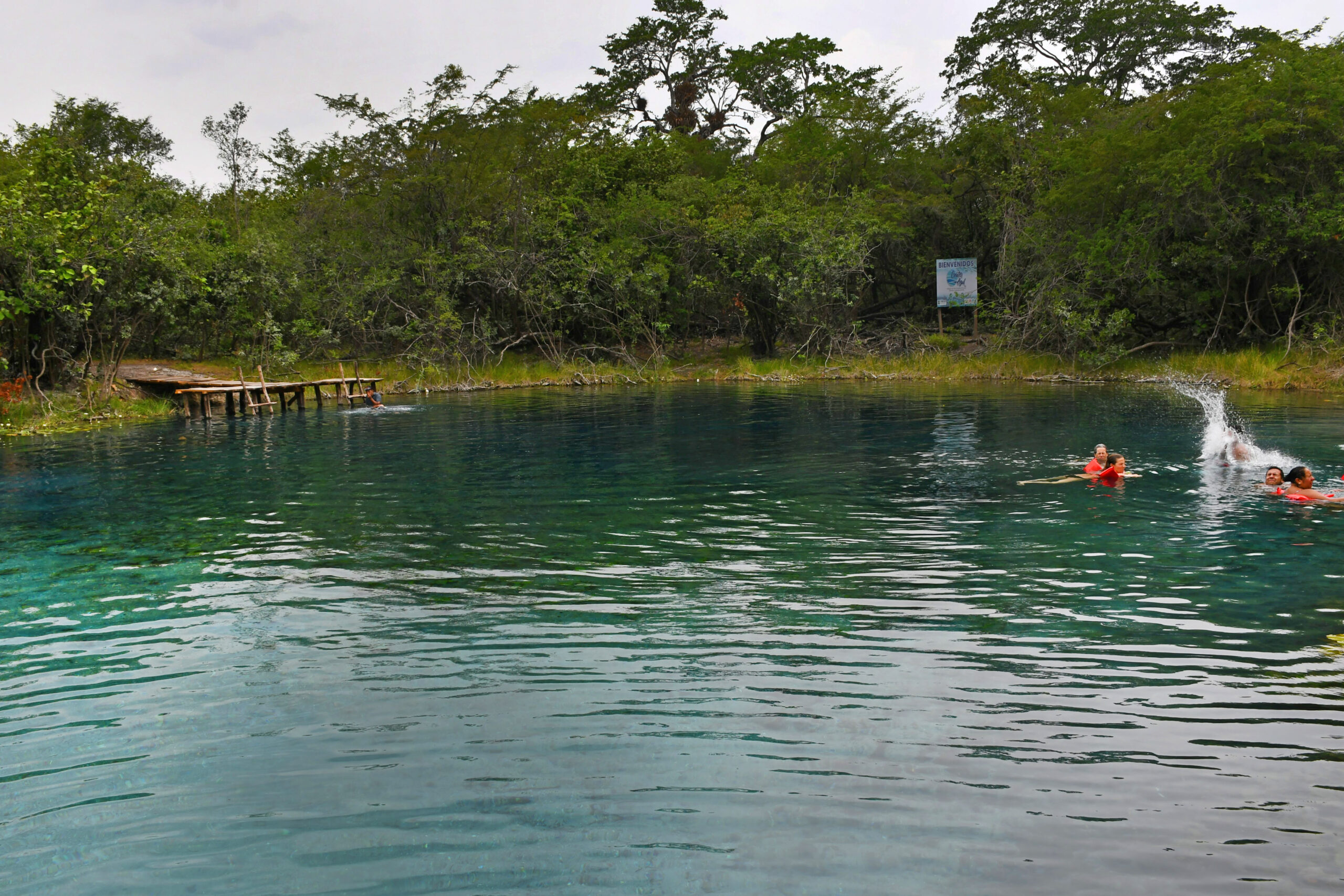 Από το Πετέν ο δρόμος προς την Γουατεμάλα Σίτι περνάει μέσα από τα υψίπεδα της Άλτα Βεραπάζ, μια περιοχή στα 1500 μέτρα υψόμετρο, με διάφορες καλλιέργειες, κωνοφόρα, φυτείες καφέ και κάρδαμου. Η περιοχή φημίζεται για τις σπάνιες ομορφιές που κρύβει το φυσικό τοπίο της. Εδώ, βλέπουμε έναν ποταμό να χάνεται κάτω από την γη και να παίρνουν τη θέση του μια σειρά από βαθμιδωτές σμαραγδένιες λίμνες. Κι έναν άλλο ποταμό κρυστάλλινο και γαλαζοπράσινο που ναι μεν δεν κρύβεται, αλλά κρύβει ο ίδιος έναν στρογγυλό μπλε κρατήρα στους κόλπους του. Θα τον προσεγγίσουμε κάνοντας μια μικρή παράκαμψη από τον κεντρικό αυτοκινητόδρομο. Ο Arroyo El Pacte είναι παραπόταμος του Rio La Pasión και πρωτίστως εντυπωσιάζει τους επισκέπτες με τους υδάτινους κήπους του με τα νούφαρα. Ο Crater Azul βρίσκεται σε μια διακλάδωση του ποταμού, όπου το βάθος του φθάνει τα 7-8 μέτρα. Στο σημείο αυτό τα ιζήματα παγιδεύονται στον πυθμένα του και τα νερά κρυστάλλινα και πεντακάθαρα σχηματίζουν μια κυκλική μπλε λιμνούλα. Ο ποταμός περιβάλλεται από οικοσύστημα με πλούσια χλωρίδα και πανίδα.