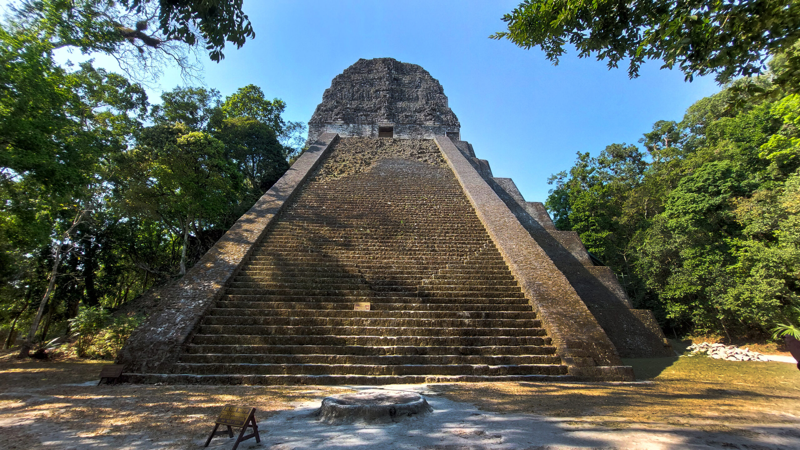 Με τις σκέψεις αυτές φθάνουμε στο ναό IV του Δικέφαλου Φιδιού, τον πιο απομακρυσμένο από τους ναούς που αποκάλυψαν οι αρχαιολόγοι στη ζούγκλα. Θα σκαρφαλώσουμε πάνω του και θα περιμένουμε την ανατολή να ξεπροβάλει μέσα από το τροπικό δάσος. Η ανάβαση στο σημείο θέασης γίνεται μέσω μιας απότομης ξύλινης σκάλας. Τα 200 σκαλοπάτια της δεν είναι περίπατος, όμως στο τέλος της απολαμβάνεις μια υπέροχη θέα. Όχι φυσικά μόνος σου, αλλά παρέα με άλλους επισκέπτες που κάθονται ήδη σιωπηλοί στην κερκίδα, στην τελευταία κλίμακα του ναού. Ο ναός IV χρονολογείται γύρω στο 471 μ.Χ. δεν φαίνεται καλά από το έδαφος λόγω της πυκνής βλάστησης και των δέντρων αν και είναι ο ψηλότερος ναός στο Τικάλ καθώς φθάνει σε ύψος τα 70 μέτρα.