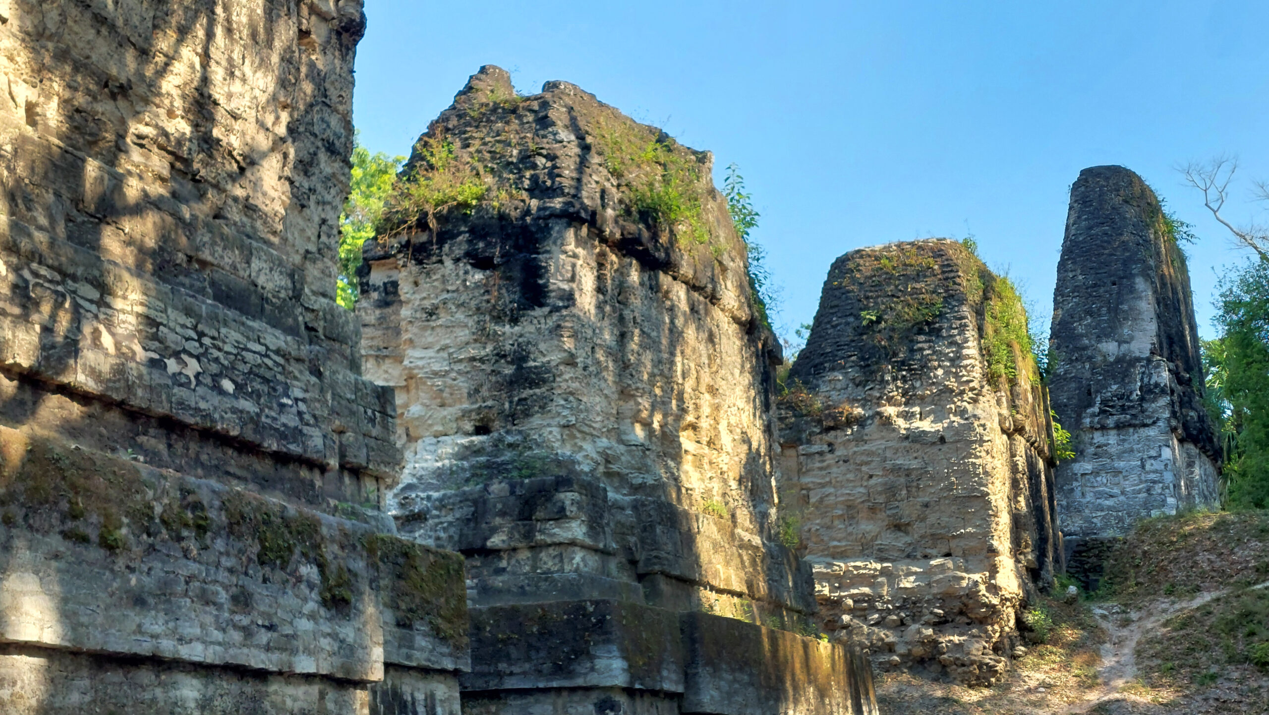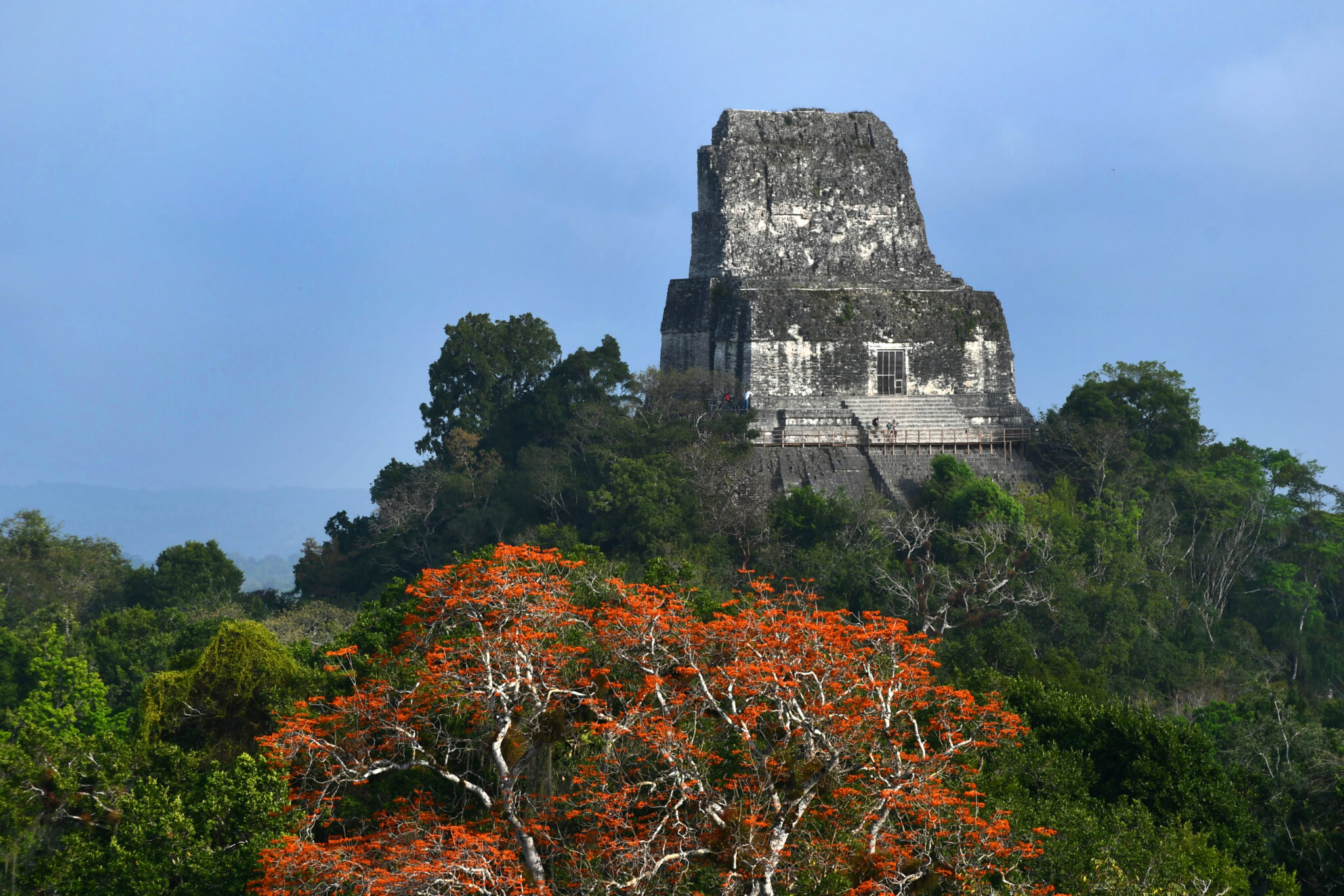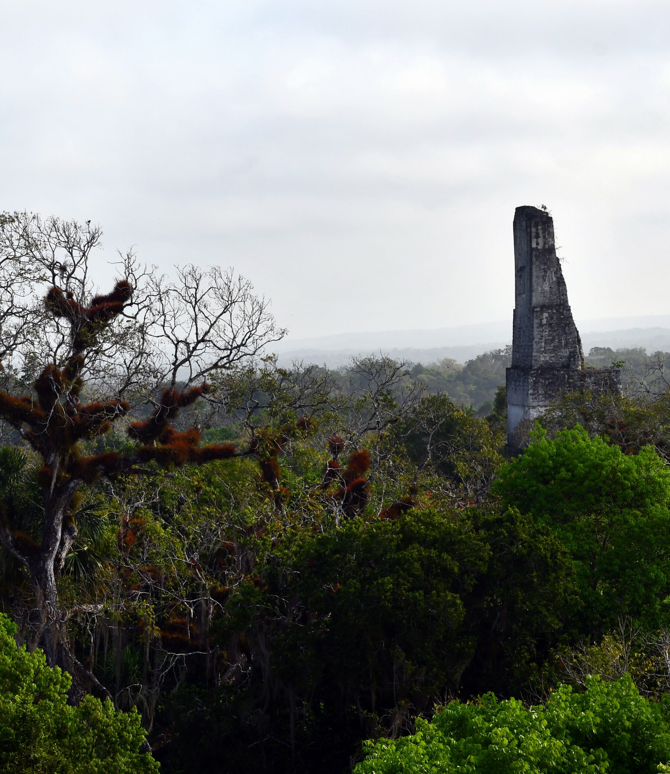 Σαν οπτασία ξετυλίγεται πάνω από το τροπικό δάσος ο γαλάζιος αρωματικός καπνός του λιβανιού. Άλλωστε το κοπάλ (αρωματική ρητίνη) βρίσκεται παντού μέσα στη ζούγκλα, όμως γύρω μου κανείς δεν χορεύει, όλοι σιωπούν, καθώς πέραν μιας φευγαλέας αναλαμπής ανατολή δεν πρόβαλε. Ας όψονται αυτά τα βαριά σύννεφα της οροσειράς του Κουτσουματάν (οροσειρά του Κάτω Κόσμου) που κάλυψαν τον ουρανό. Αφήνουμε πίσω μας το Ναό του Δικέφαλου Φιδιού και χανόμαστε μέσα στην πυκνή βλάστηση. Περπατάμε με οδηγό τον Δαβίδ κάτω από τον θόλο που δημιουργεί το αρχέγονο δάσος. Πριν φθάσουμε στην κεντρική μεγάλη πλατεία, θα γνωριστούμε και θα συνομιλήσουμε και με άλλα άγνωστα σε εμάς τροπικά δέντρα, θα σκαρφαλώσουμε και σε άλλους ναούς, όπως στην Πυραμίδα του «Χαμένου Κόσμου» με τo σημείο θέασης στην κορυφή. Θα δούμε την πλατεία των «Επτά Ναών», τα γήπεδα με τις μπάλες των Μάγια, καθώς και το Παλάτι των «Κάθετων Στηλών», γνωστό για τις κάθετες αυλακώσεις του. Ο «Χαμένος Κόσμος» (Mundo Perdido) είναι το αρχαιότερο μέρος του Τικάλ, η Πυραμίδα με την πλατφόρμα θέασης στην κορυφή, γνωστή ως Μεγάλη Πυραμίδα, χτίστηκε περίπου το 300 π.Χ. κι έχει ύψος 32 μέτρα.