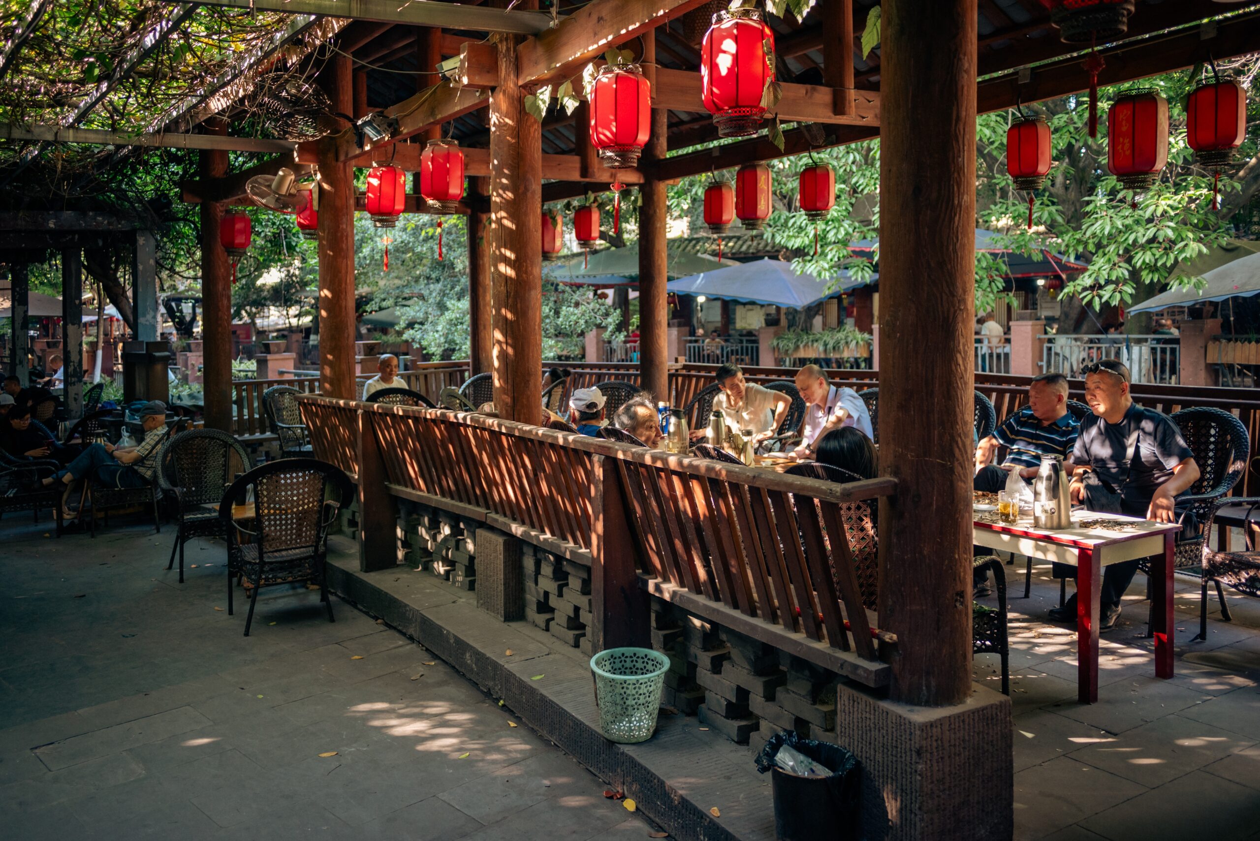 Πίσω στην πόλη, το People’s Park, το πρώτο δημόσιο πάρκο του Chengdu, είναι το ιδανικό μέρος για να παρατηρήσει κανείς την καθημερινότητα των ντόπιων και να γίνει, έστω για λίγο, κομμάτι της. Εδώ, οικογένειες απολαμβάνουν περιπάτους ανάμεσα σε λίμνες και ανθισμένους κήπους με μανόλιες, άλλοι παίζουν σκάκι ή εξασκούν καλλιγραφία με νερό στο έδαφος, ενώ κάποιοι απολαμβάνουν ένα αυθεντικό τελετουργικό τσαγιού. Το πάρκο μοιάζει με ζωντανό μουσείο της κοινωνικής ταυτότητας και της κουλτούρας των κατοίκων του Chengdu.