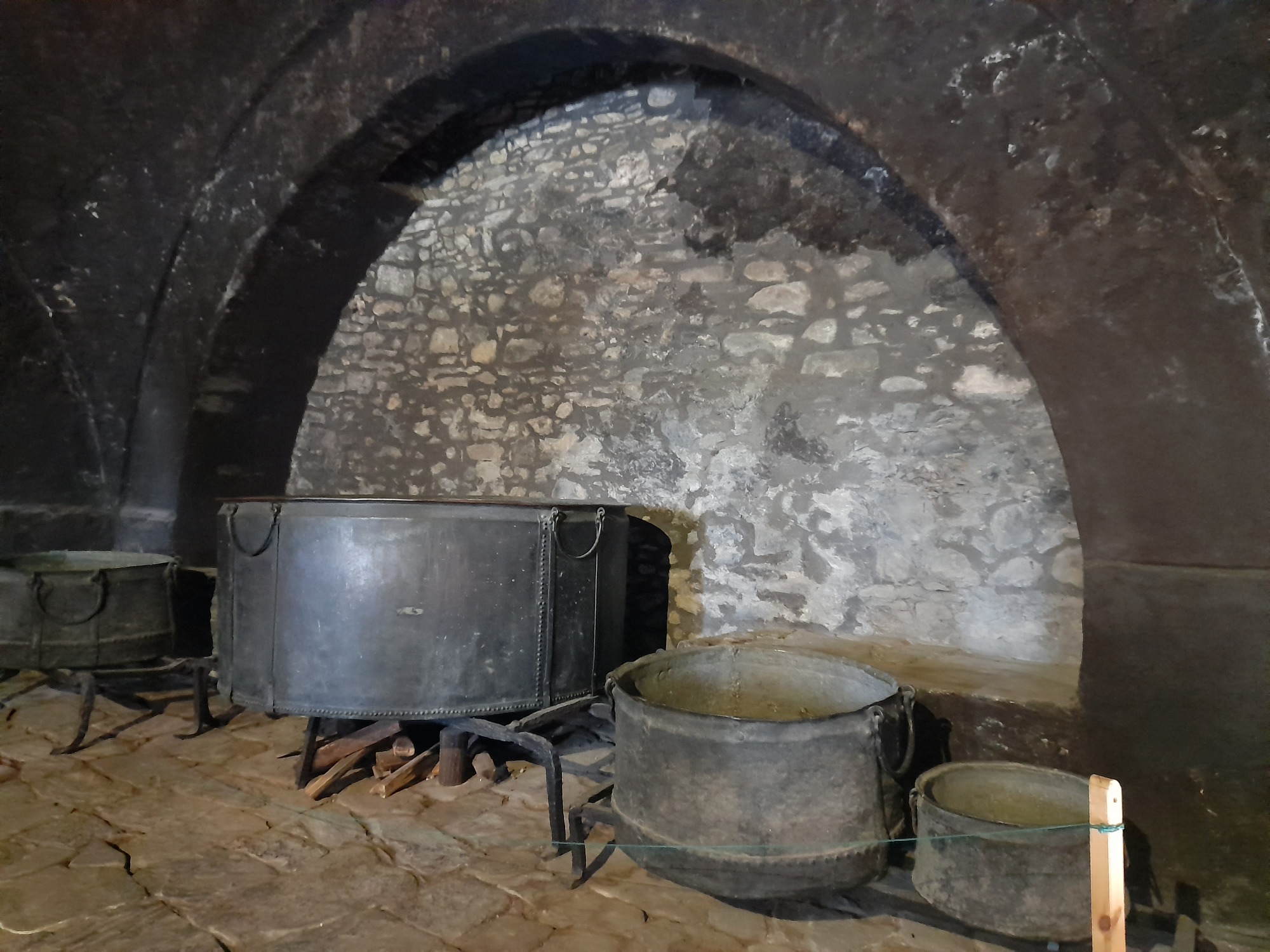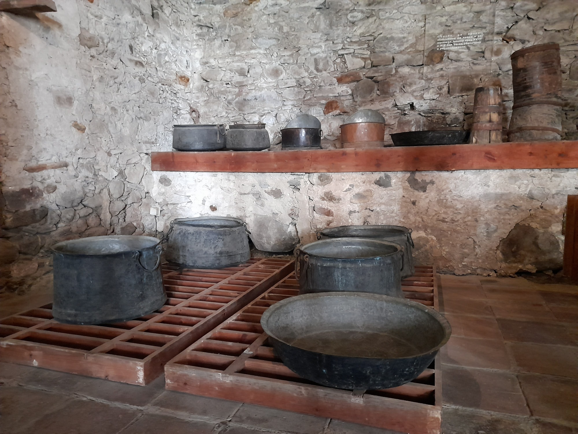 Εύκολα κανείς ταξιδεύει στο χρόνο και φαντάζεται την κουζίνα γεμάτη ατμούς, με τους μοναχούς να δουλεύουν πυρετωδώς, να ζυμώνουν καρβέλια, να καθαρίζουν ψάρια από το διπλανό ποτάμι και να ανακατεύουν τα καζάνια με το πλιγούρι τους.