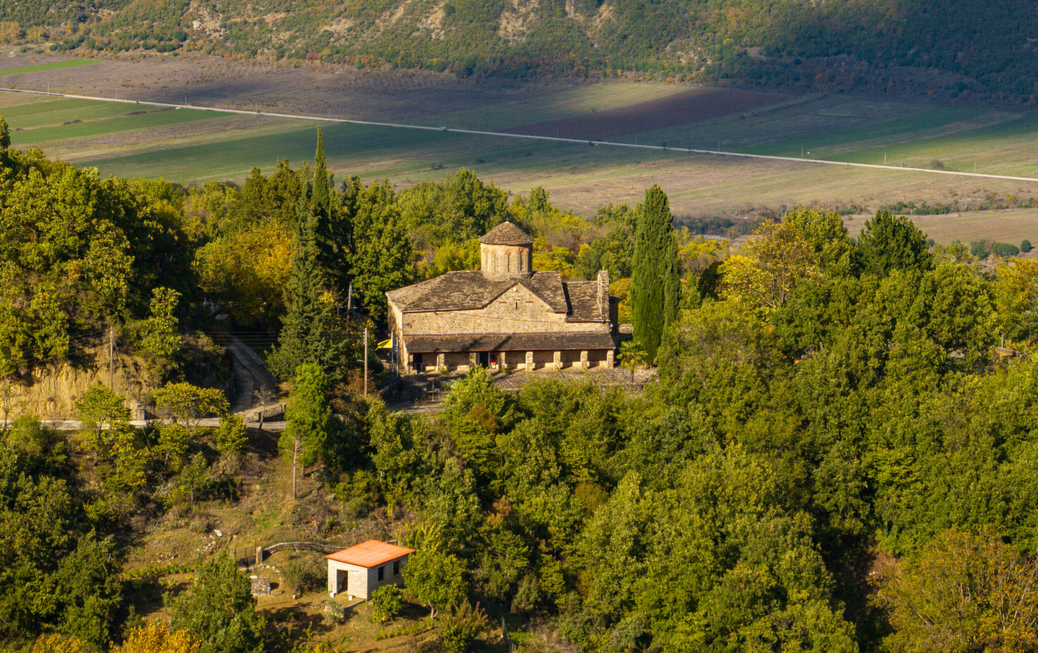 Από τη λίμνη Ζαραβίνα που μοιάζει με υδάτινο καθρέφτη, μέχρι τη Μονή Μολυβδοσκέπαστης, το ταξίδι καταλήγει εκεί όπου τελειώνει ο χάρτης. Το μοναστήρι, λίγα μέτρα από τα σύνορα, στέκει σαν «φρούριο» και αφηγείται την ιστορία του τόπου.